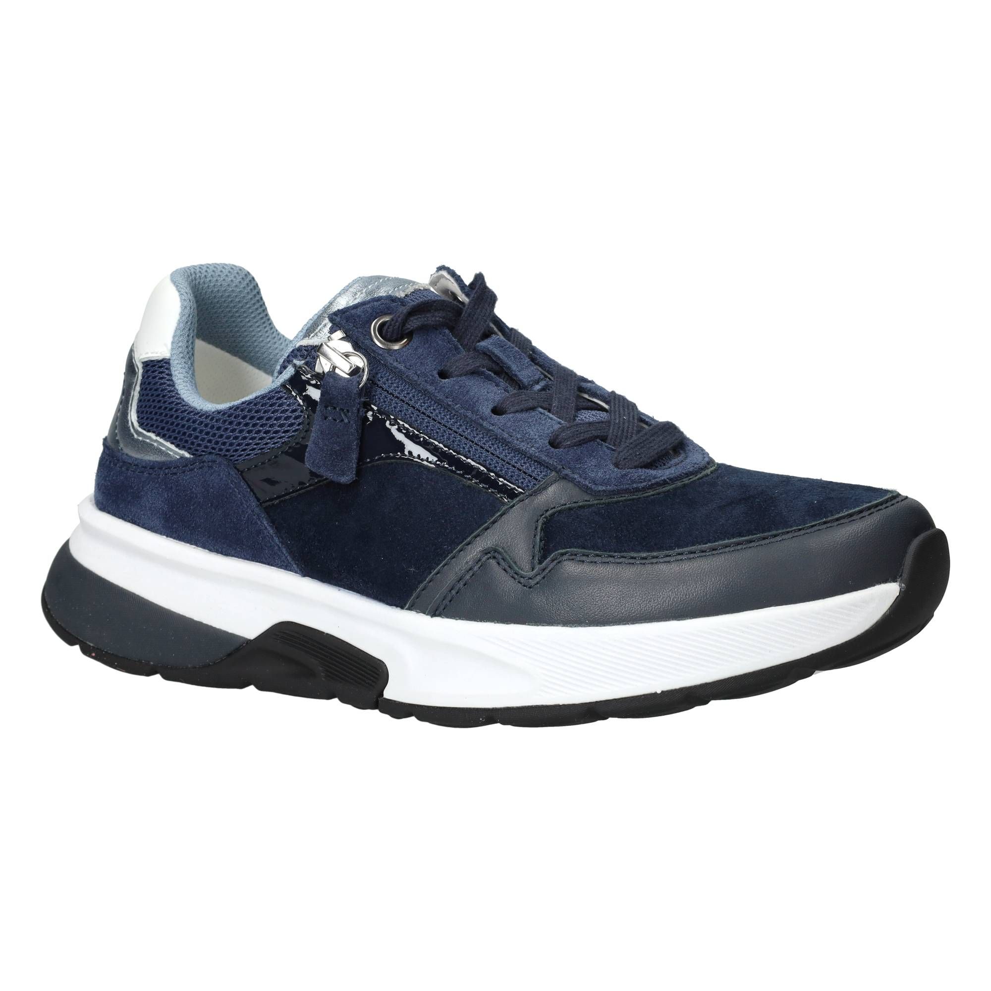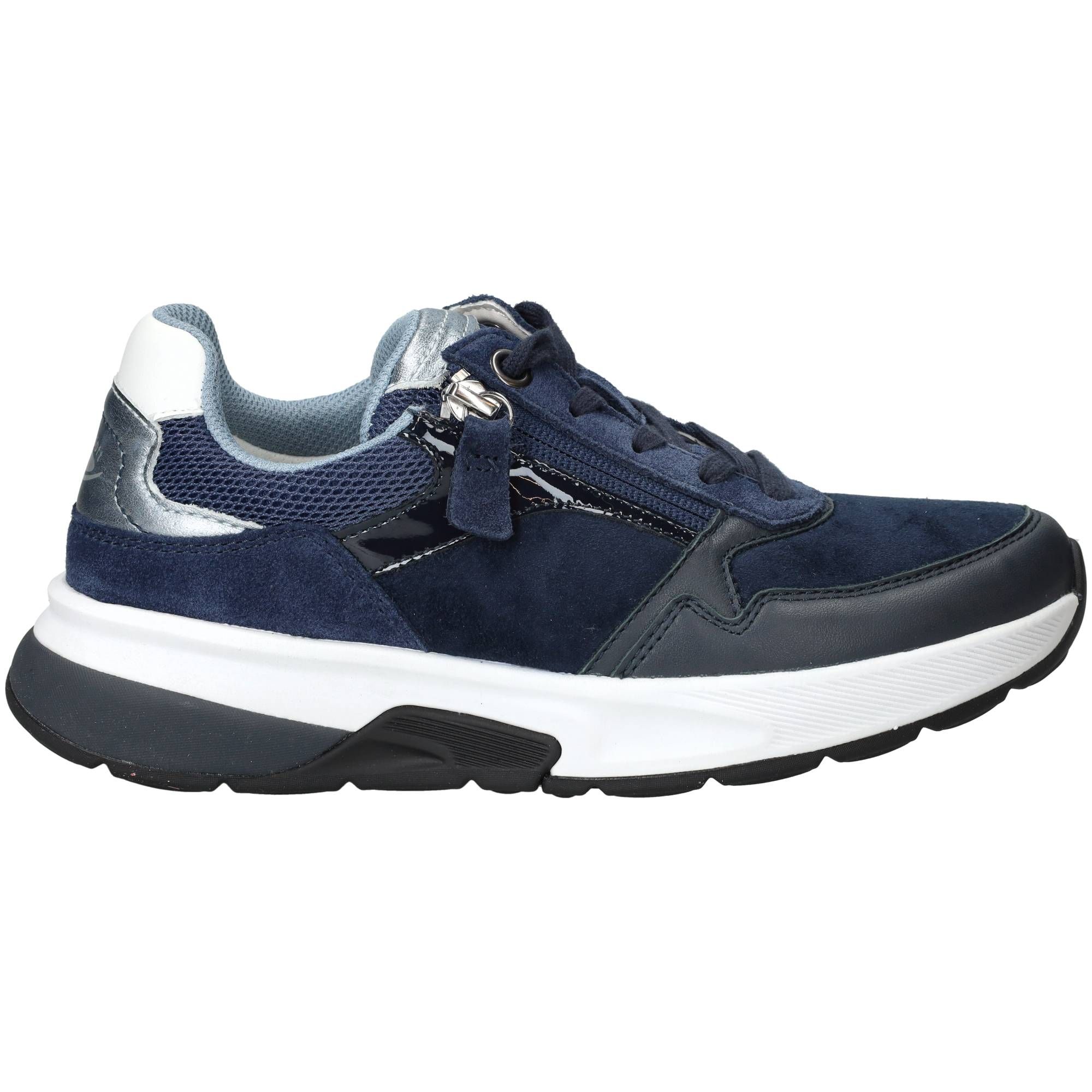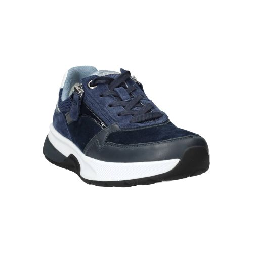 De blauwe dames sneakers van Gabor Rollingsoft zijn een fijne keuze voor dagelijks comfort. Deze sportieve schoen, uitgevoerd in een rustige blauwtint, combineert een moderne uitstraling met een heerlijk draagcomfort. De sneakers voelen licht aan de voet en hebben een prettige afwikkeling, wat zorgt voor een natuurlijke loopbeweging. De zorgvuldig ontworpen zool biedt een subtiele demping, waardoor elke stap zacht aanvoelt en de druk goed wordt verdeeld over de voetzool. Dit maakt ze ideaal voor langere dagen, of je nu veel staat of wandelt. De verschillende texturen en materialen geven de schoen een speelse, maar toch elegante look die bij veel outfits past.- De combinatie van veters en een rits zorgt voor een makkelijke instap en een optimale pasvorm die je eenvoudig aanpast aan de voet.