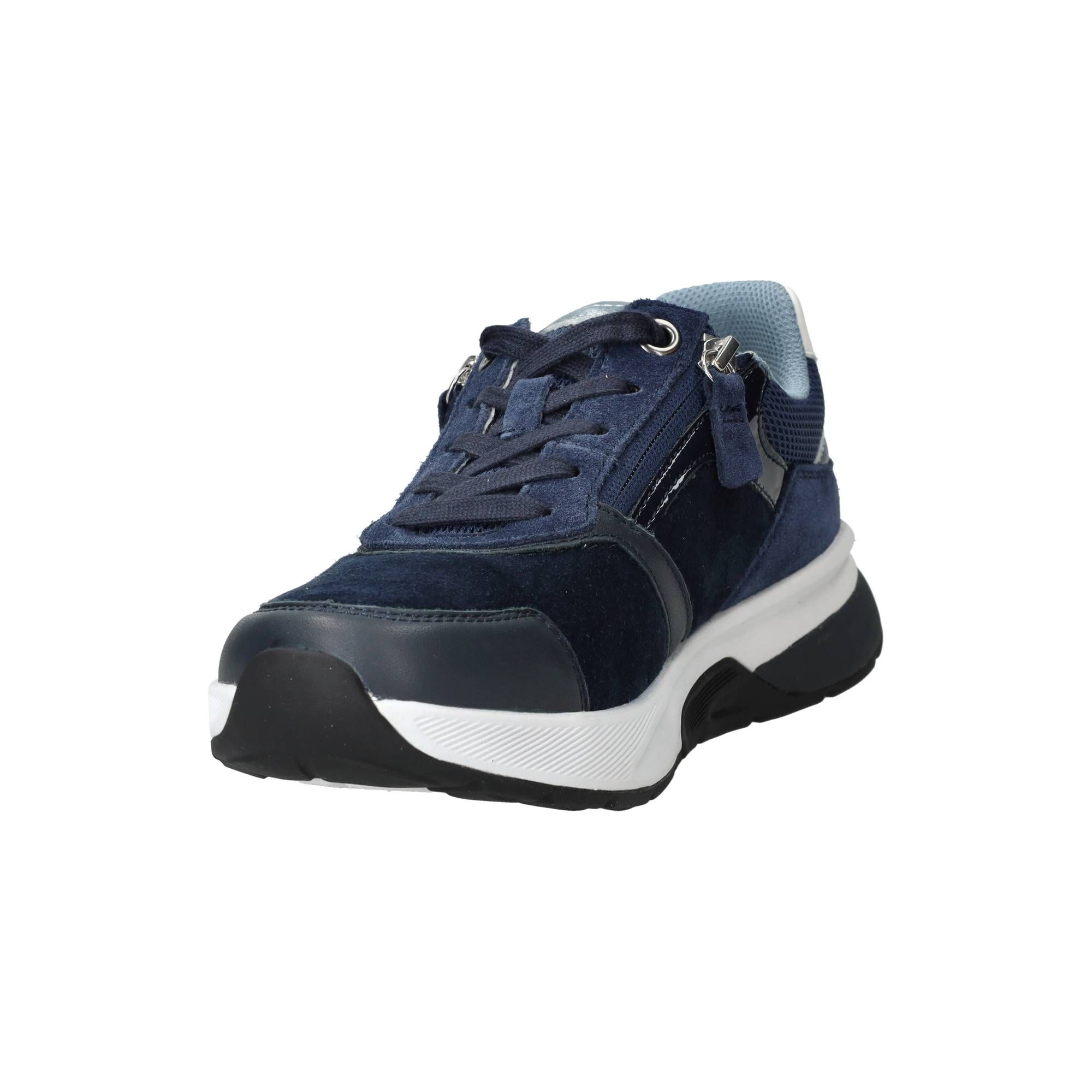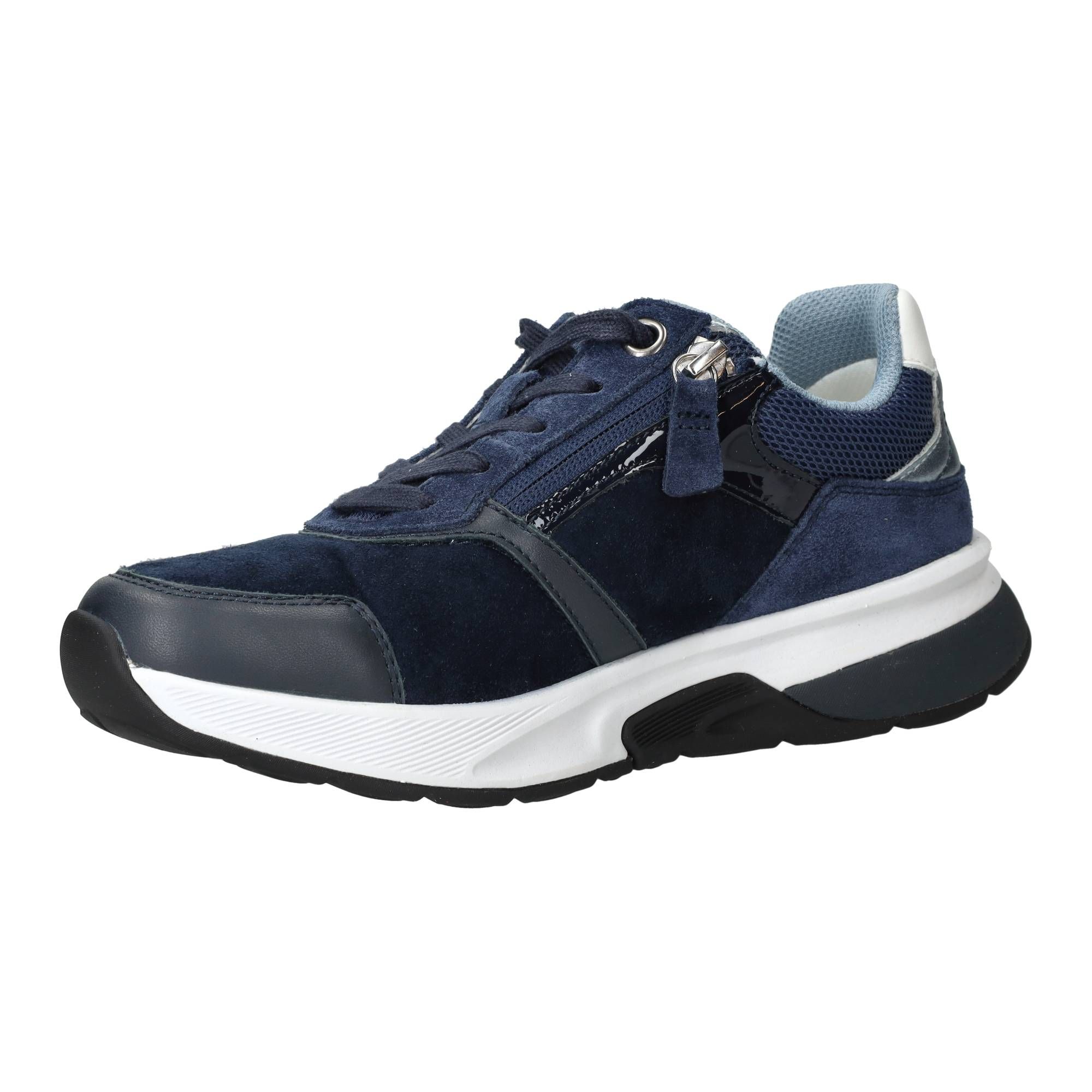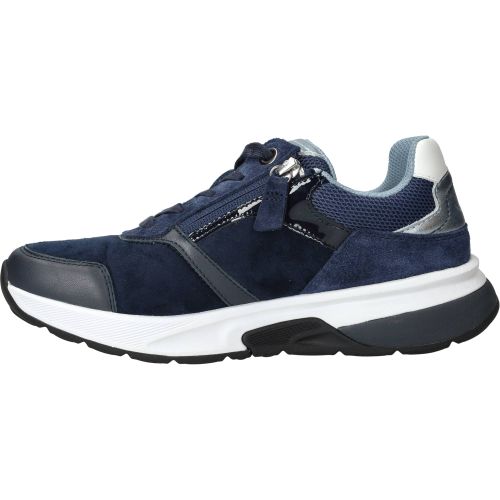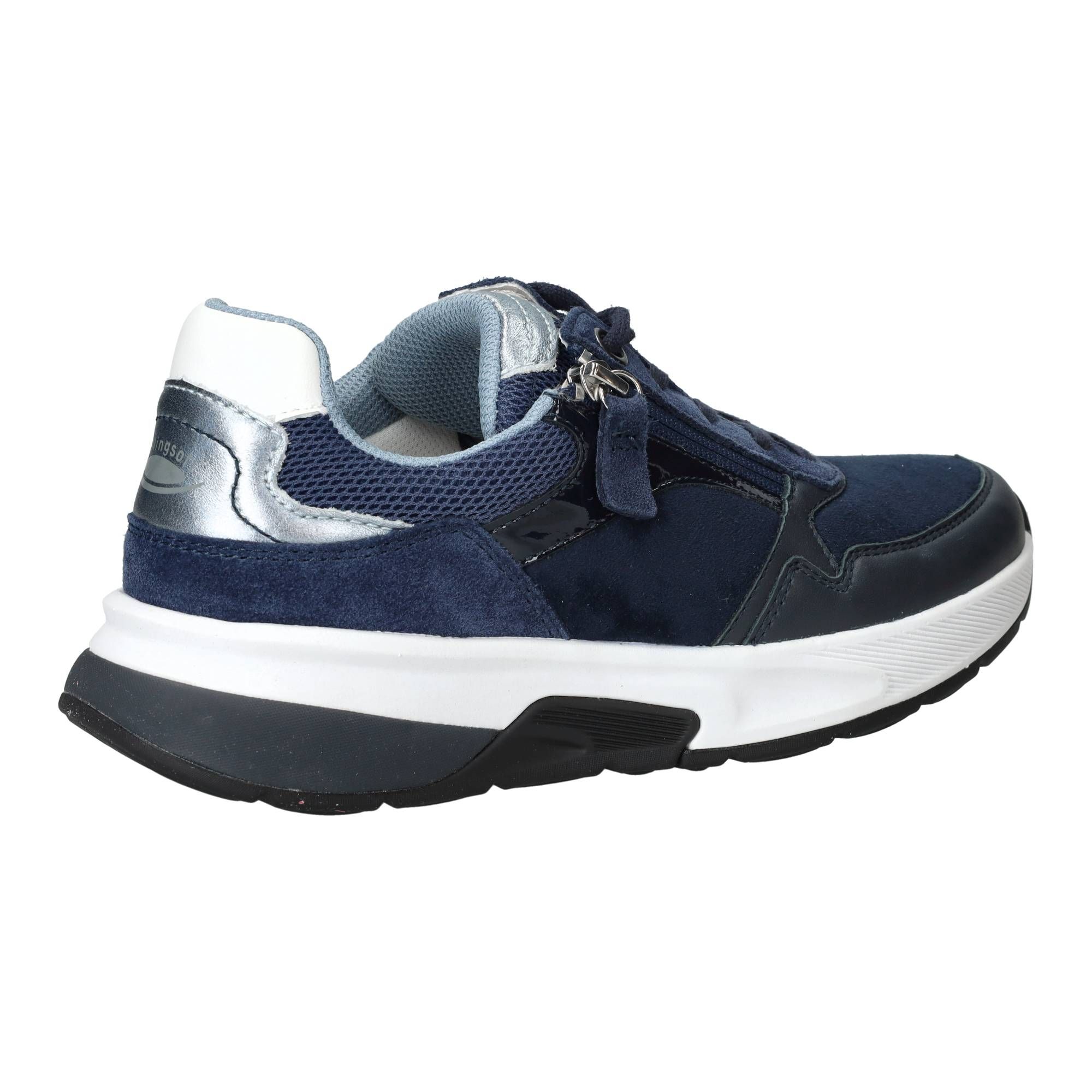 De blauwe dames sneakers van Gabor Rollingsoft zijn een fijne keuze voor dagelijks comfort. Deze sportieve schoen, uitgevoerd in een rustige blauwtint, combineert een moderne uitstraling met een heerlijk draagcomfort. De sneakers voelen licht aan de voet en hebben een prettige afwikkeling, wat zorgt voor een natuurlijke loopbeweging. De zorgvuldig ontworpen zool biedt een subtiele demping, waardoor elke stap zacht aanvoelt en de druk goed wordt verdeeld over de voetzool. Dit maakt ze ideaal voor langere dagen, of je nu veel staat of wandelt. De verschillende texturen en materialen geven de schoen een speelse, maar toch elegante look die bij veel outfits past.- De combinatie van veters en een rits zorgt voor een makkelijke instap en een optimale pasvorm die je eenvoudig aanpast aan de voet.