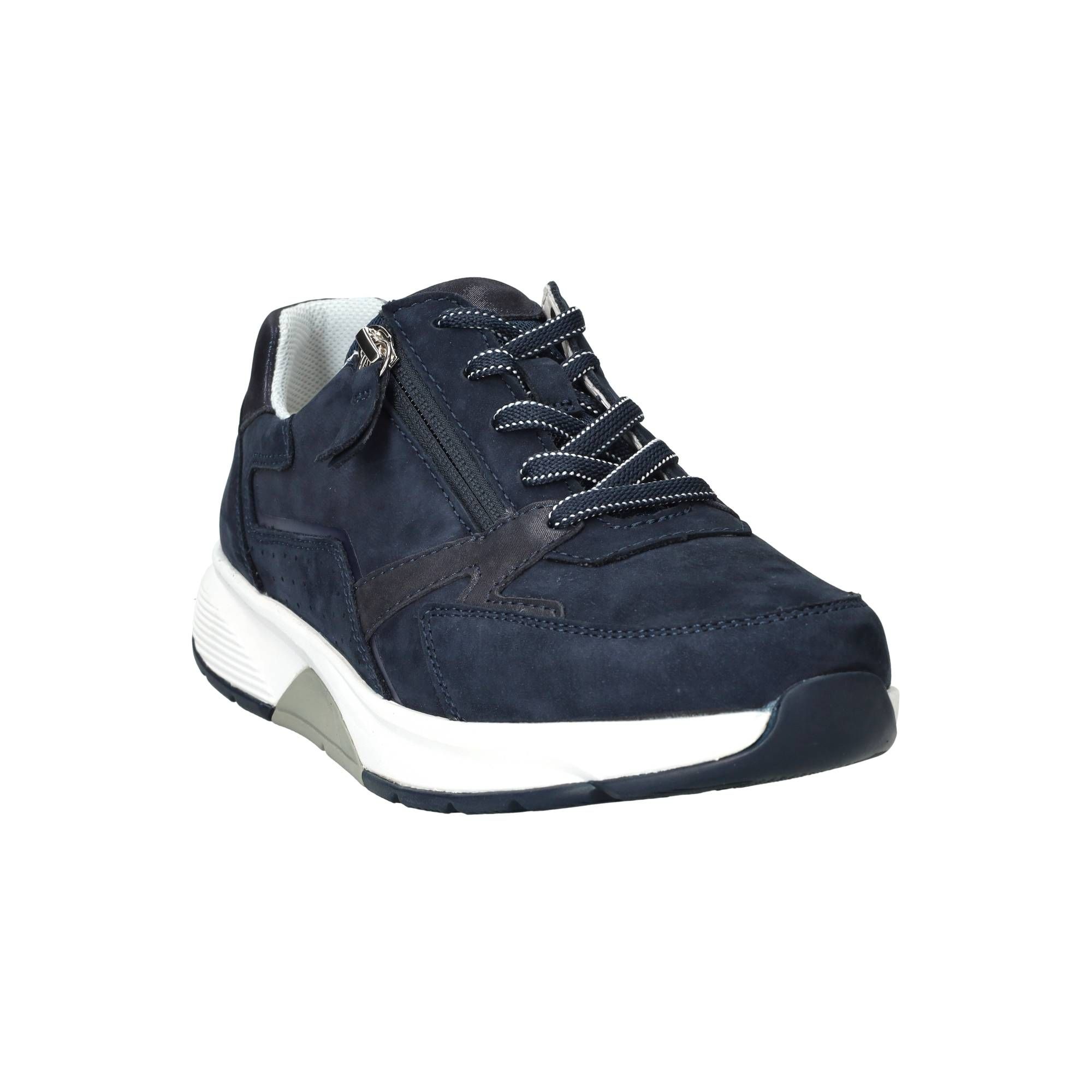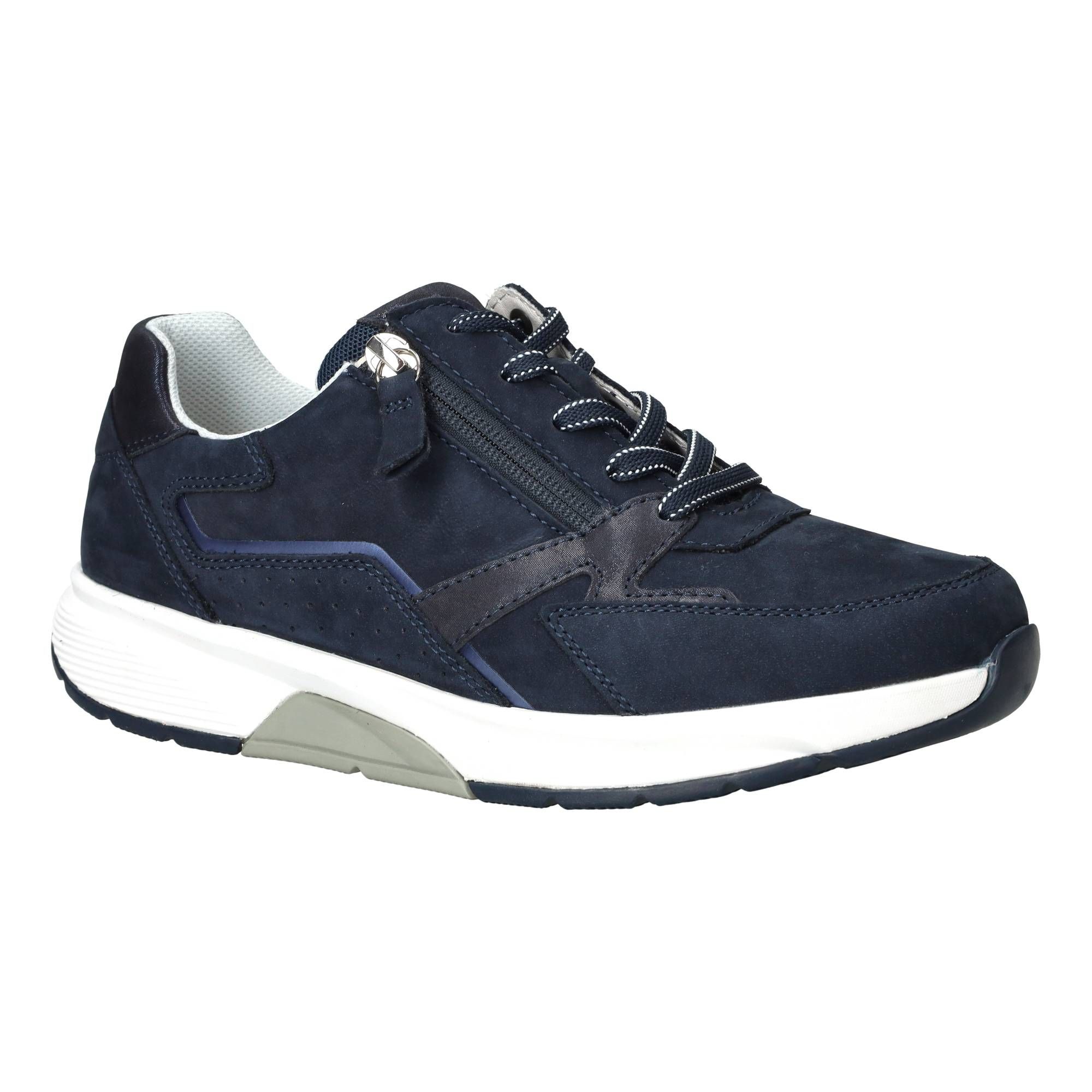 De Gabor Rollingsoft, een prachtige dames sneakers , is een comfortabele en stijlvolle keuze voor elke dag. Deze schoen in een mooie blauwe kleur combineert functionaliteit met een eigentijdse look. Het is een schoen die je voeten omarmt en ondersteunt, waardoor elke stap prettig aanvoelt. De zorgvuldig ontworpen zool zorgt voor een rustige afwikkeling, wat bijdraagt aan een comfortabel loopgevoel gedurende de dag. De verschillende blauwtinten en de afwerking van nubuck geven de Gabor sneaker een verfijnde uitstraling die gemakkelijk te combineren is met diverse outfits.- Deze schoen heeft een handige combinatie van veters en een rits, waardoor je hem snel aan- en uittrekt en de pasvorm makkelijk aanpast voor optimale steun.