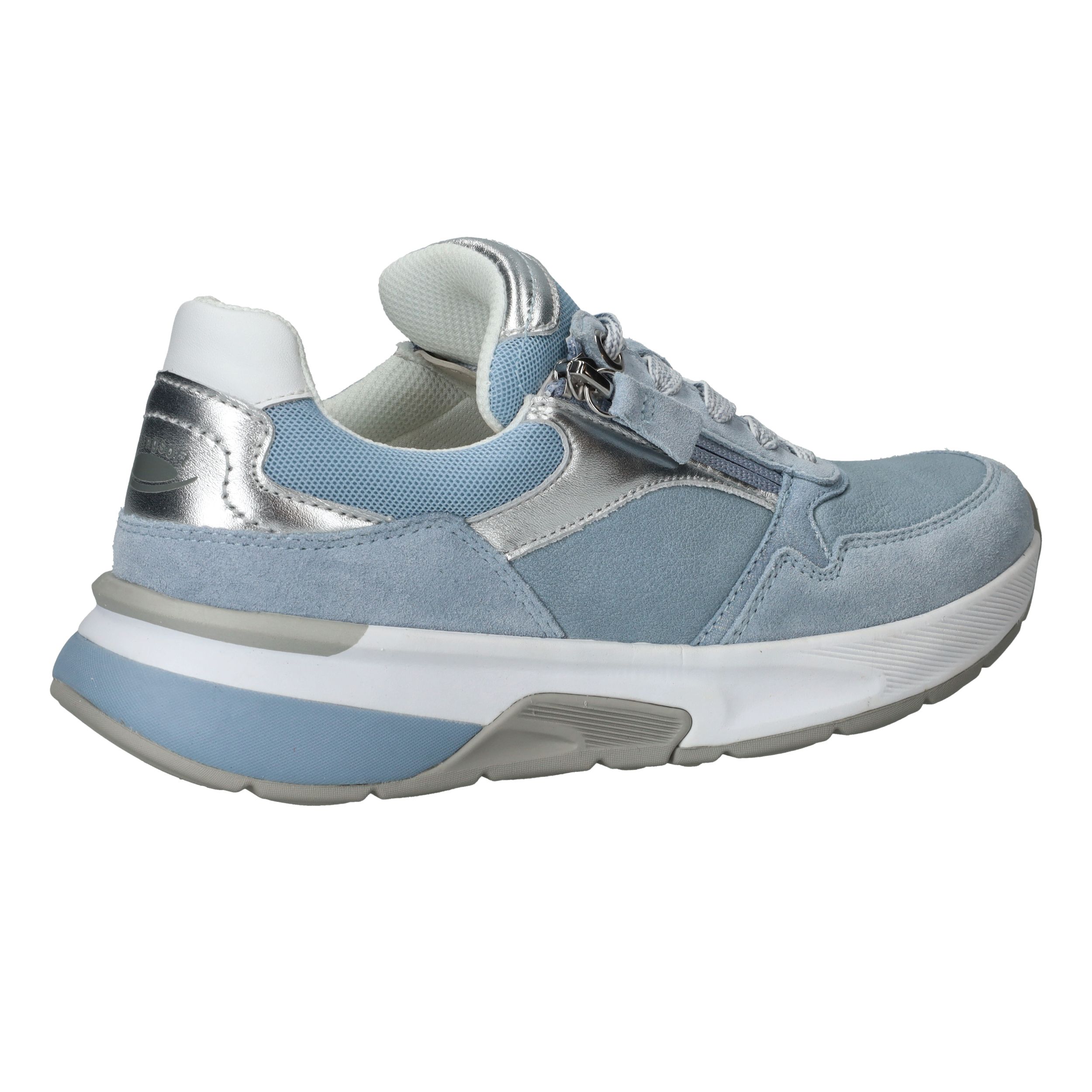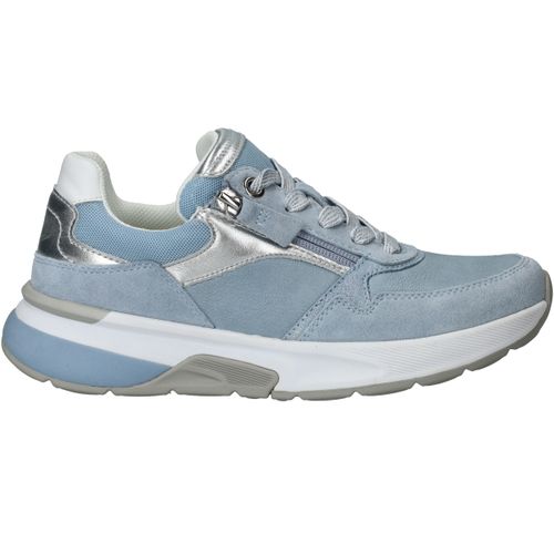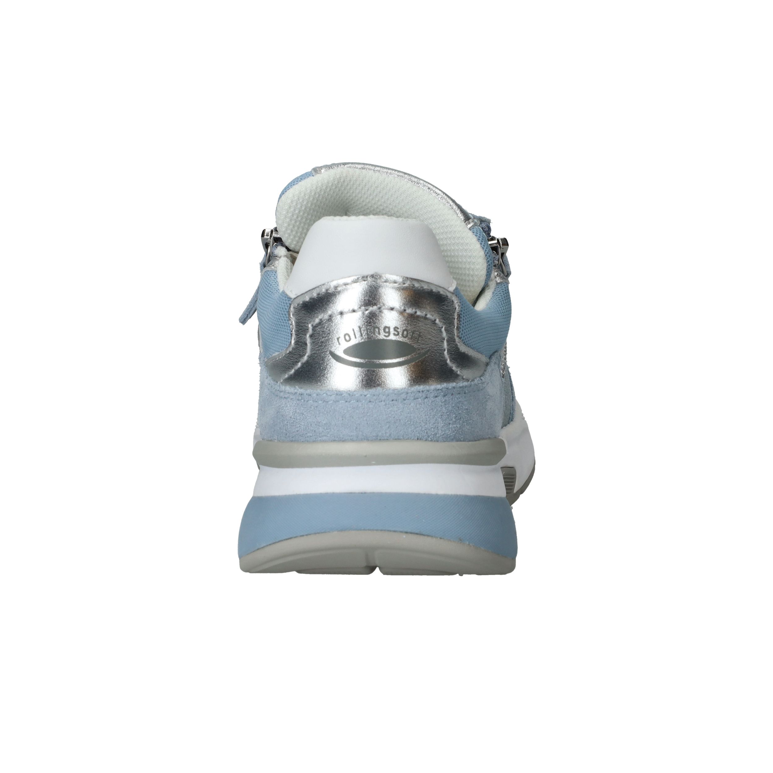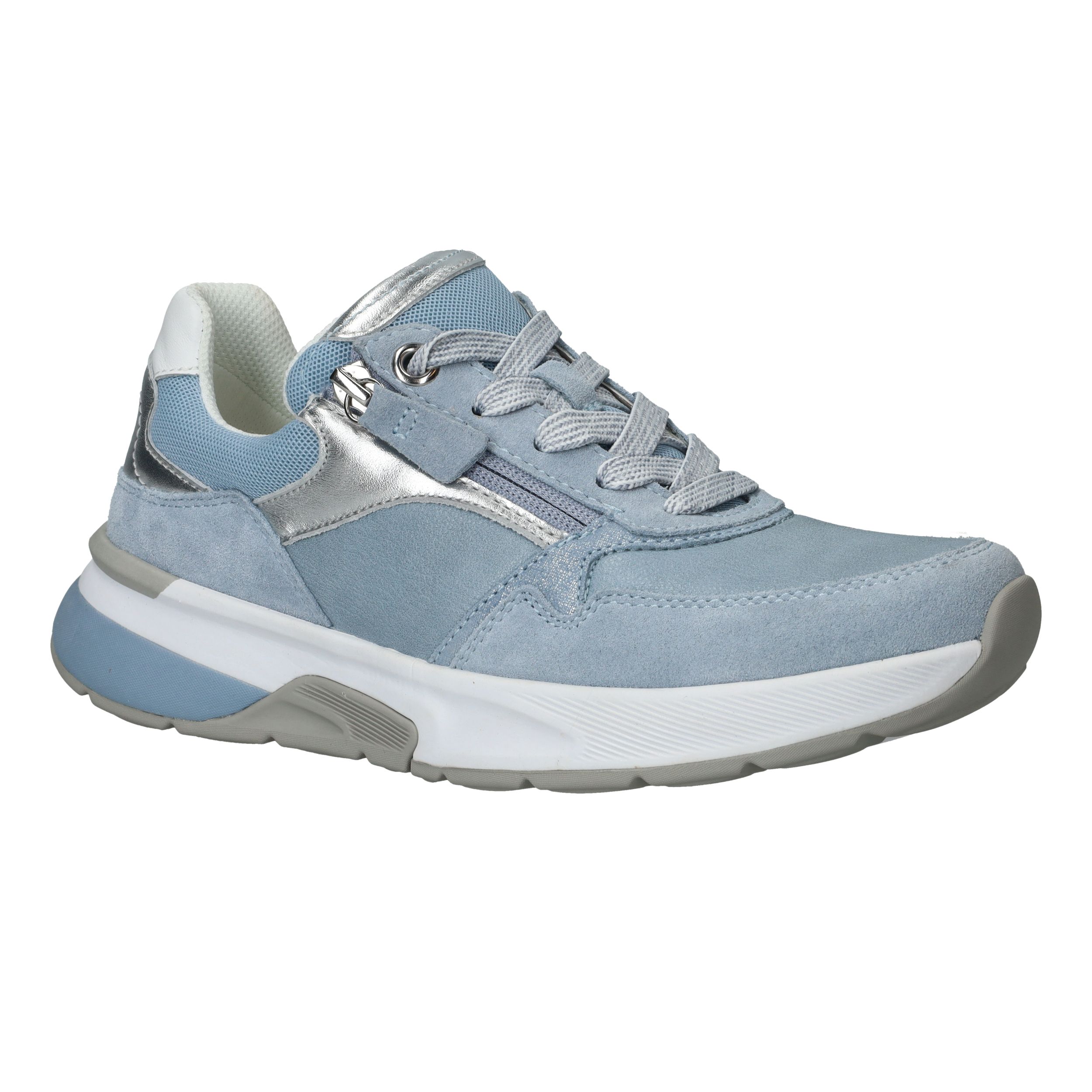 Ontdek de perfecte combinatie van stijl en comfort met de Gabor Rollingsoft sneakers, model Florenz. Deze damesschoenen in een subtiele licht blauwgrijze tint met zilveren accenten zijn vervaardigd uit hoogwaardig suède leer, wat zorgt voor een luxe uitstraling en een comfortabele pasvorm. De innovatieve Rollingsoft zooltechnologie stimuleert de natuurlijke afwikkeling van de voet en biedt optimale demping, waardoor je de hele dag comfortabel loopt. Deze sneakers zijn de ideale keuze voor vrouwen die waarde hechten aan zowel stijl als functionaliteit.