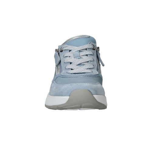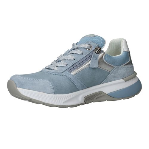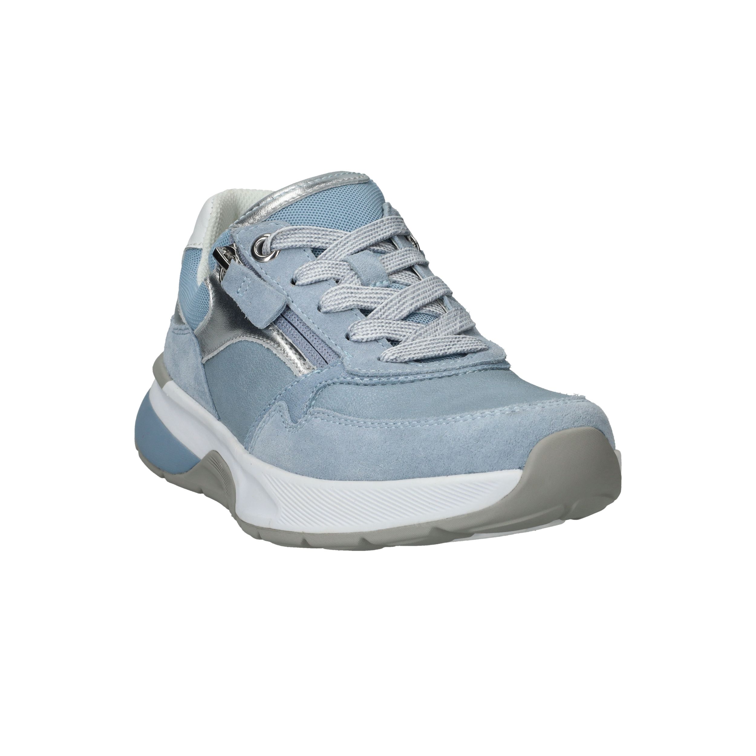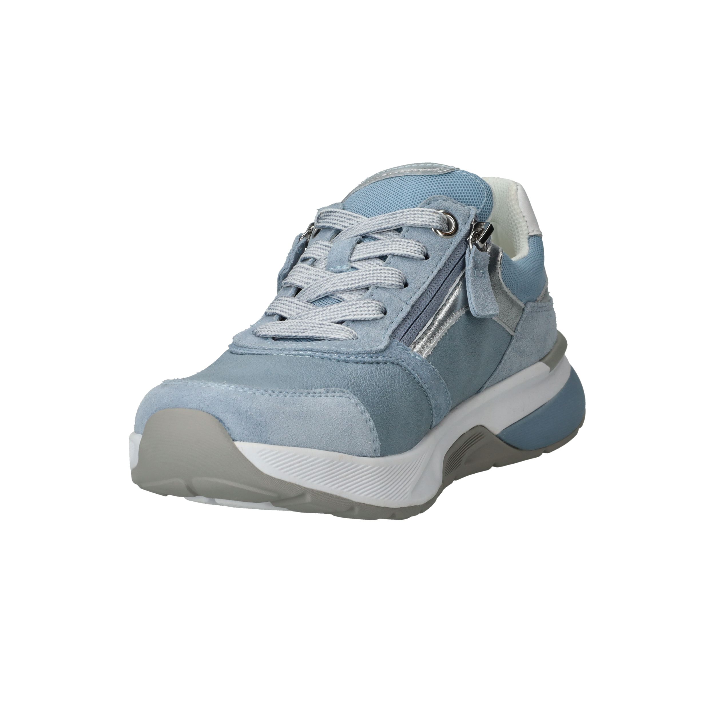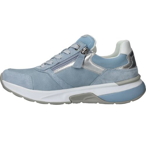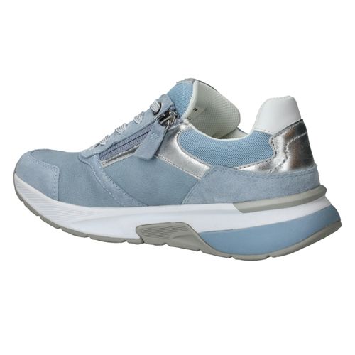 Ontdek de perfecte combinatie van stijl en comfort met de Gabor Rollingsoft sneakers, model Florenz. Deze damesschoenen in een subtiele licht blauwgrijze tint met zilveren accenten zijn vervaardigd uit hoogwaardig suède leer, wat zorgt voor een luxe uitstraling en een comfortabele pasvorm. De innovatieve Rollingsoft zooltechnologie stimuleert de natuurlijke afwikkeling van de voet en biedt optimale demping, waardoor je de hele dag comfortabel loopt. Deze sneakers zijn de ideale keuze voor vrouwen die waarde hechten aan zowel stijl als functionaliteit.