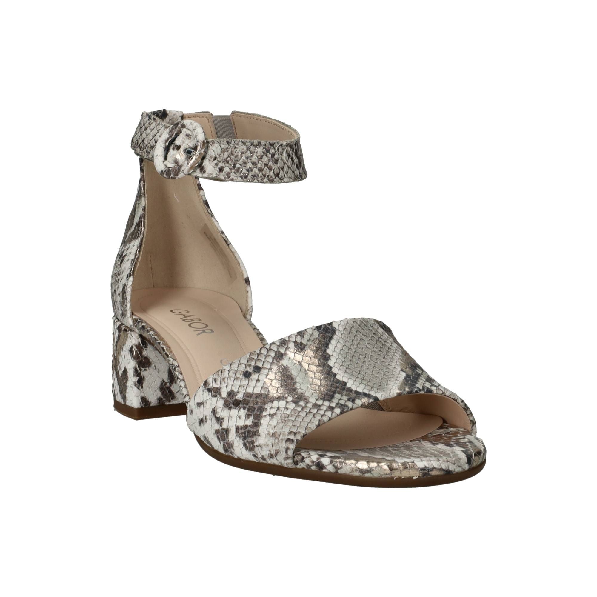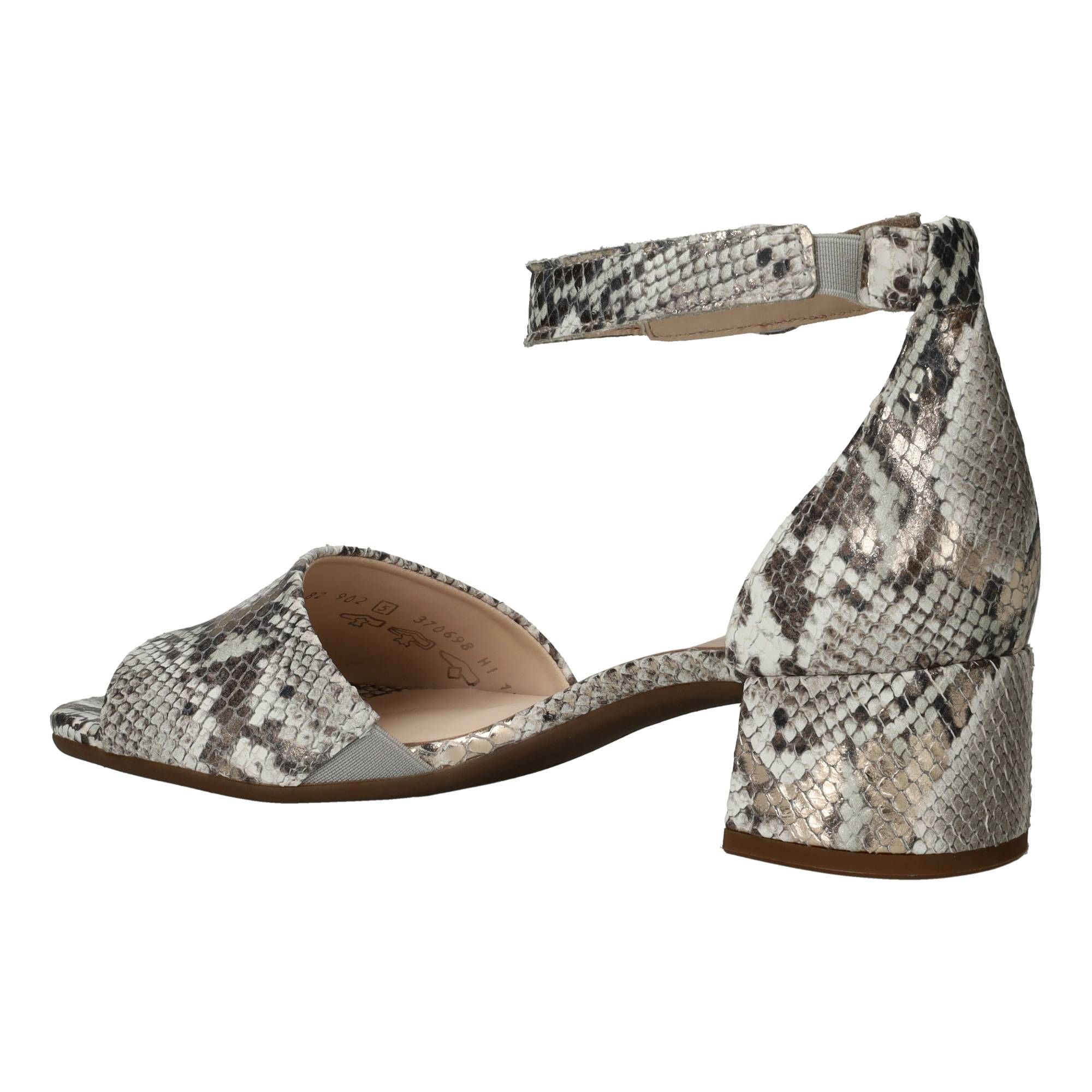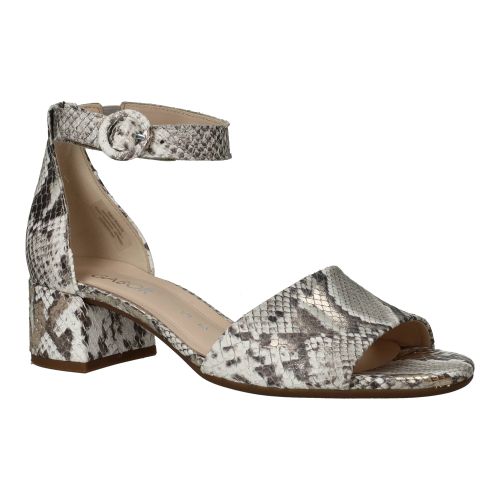 Deze Gabor sandalen in grijs combineren elegantie met een opvallende twist. De subtiele slangenprint geeft de sandaal een luxe en modieuze uitstraling, terwijl het verfijnde design zorgt voor een vrouwelijke look die overal bij past.