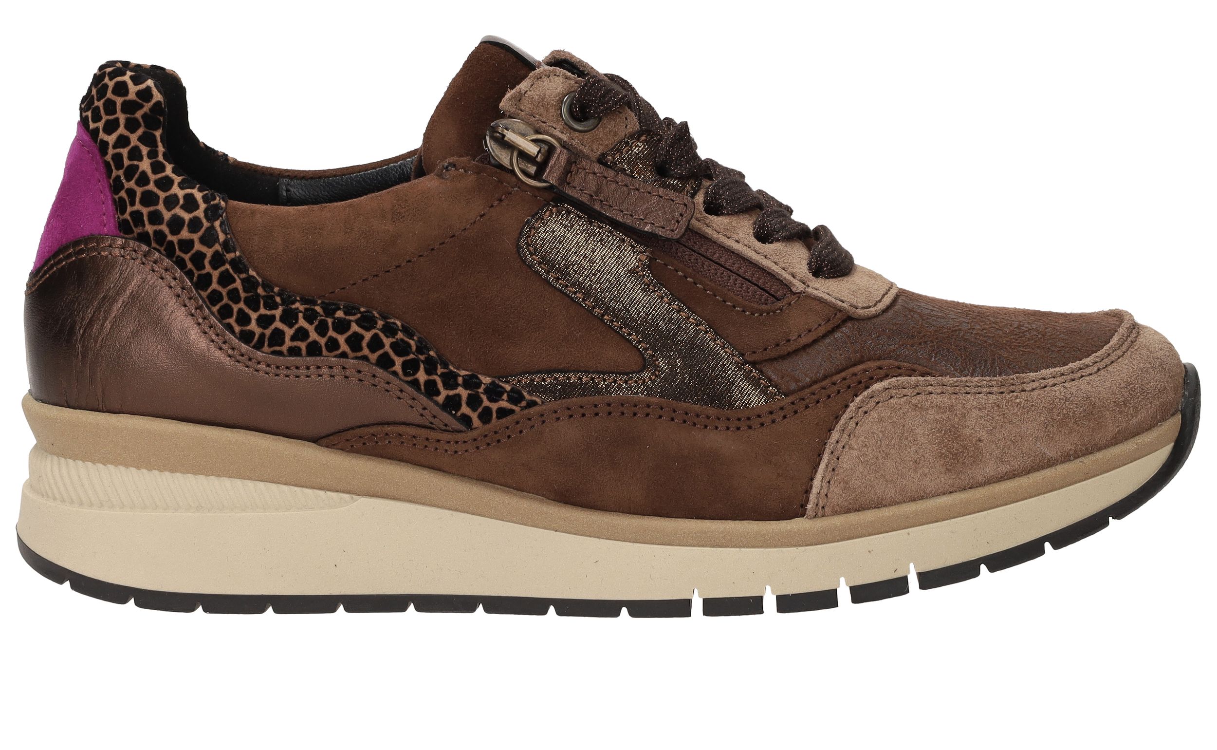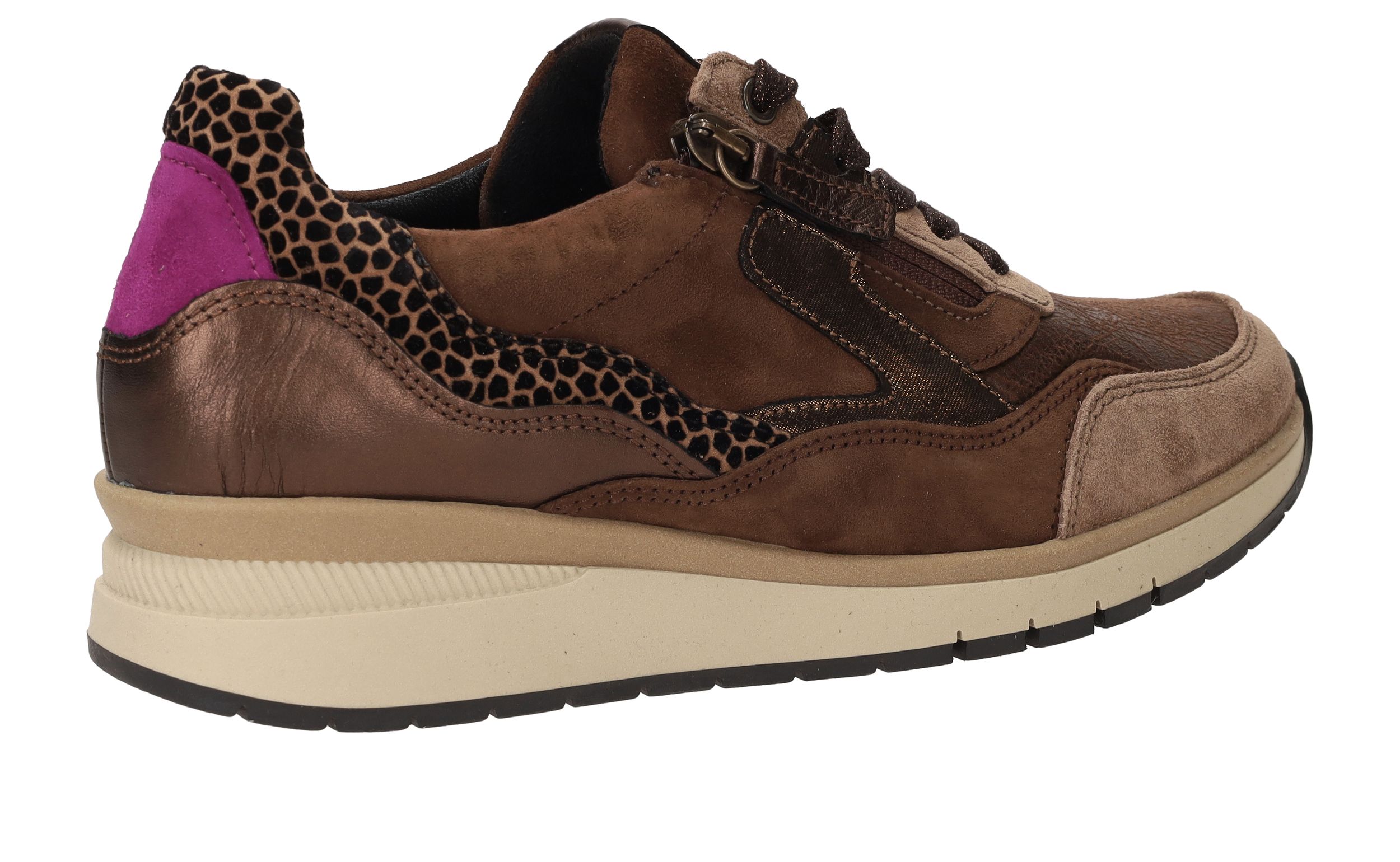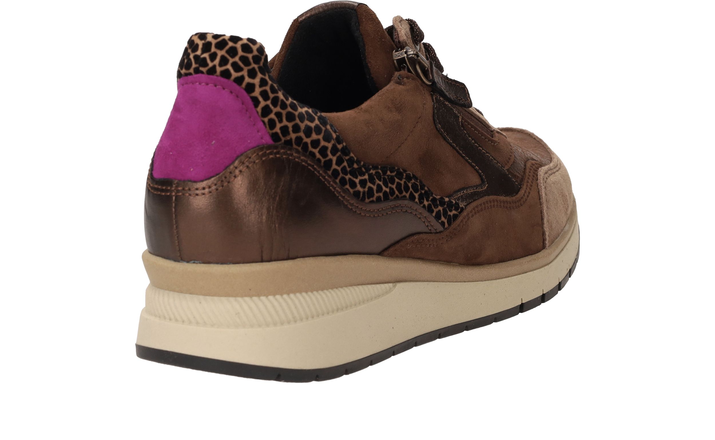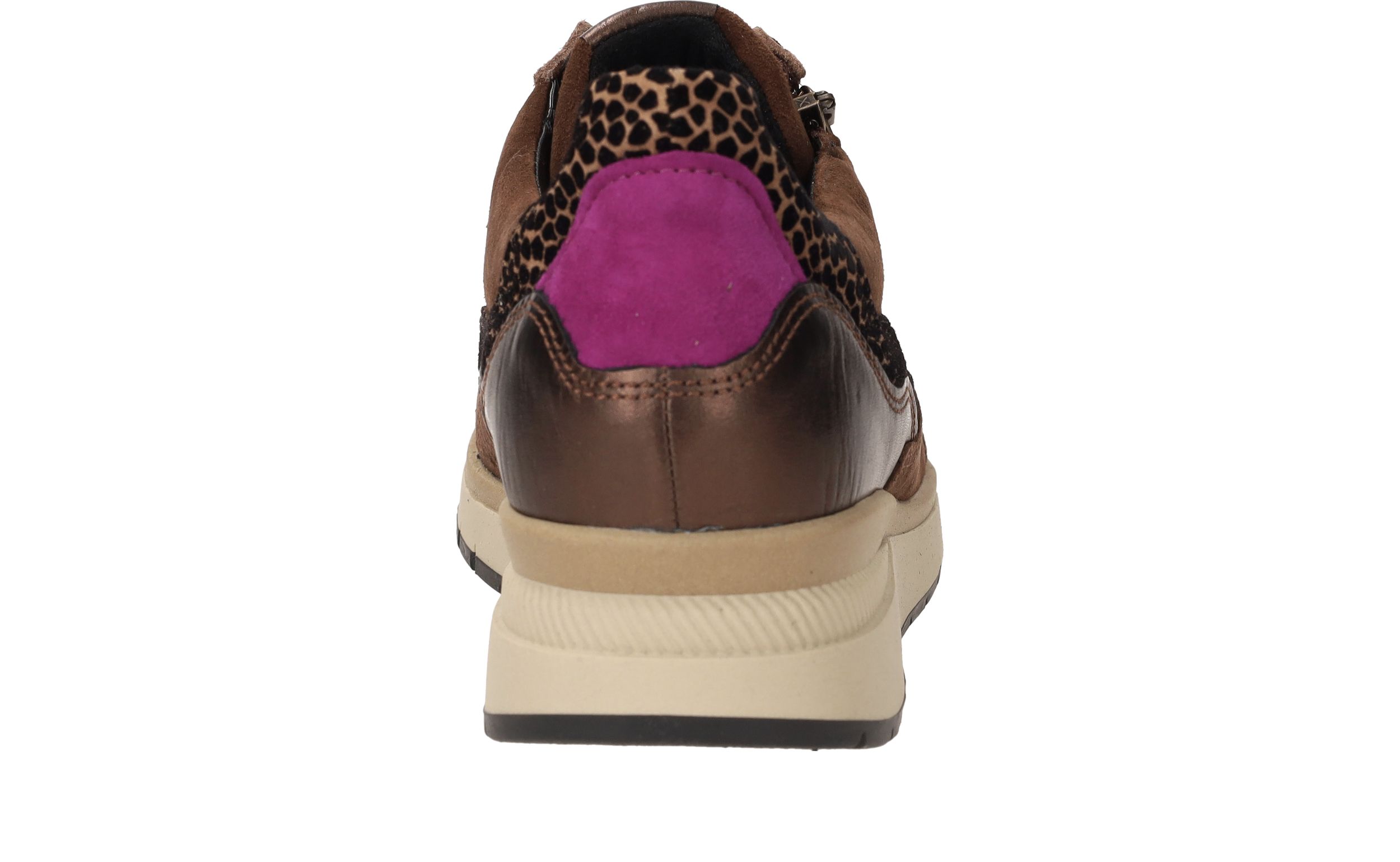 Prachtige bruine Gabor sneaker met mooie metallic accenten en fuchsia detail. Door het Optifit voetbed loopt deze sneaker super comfortabel.