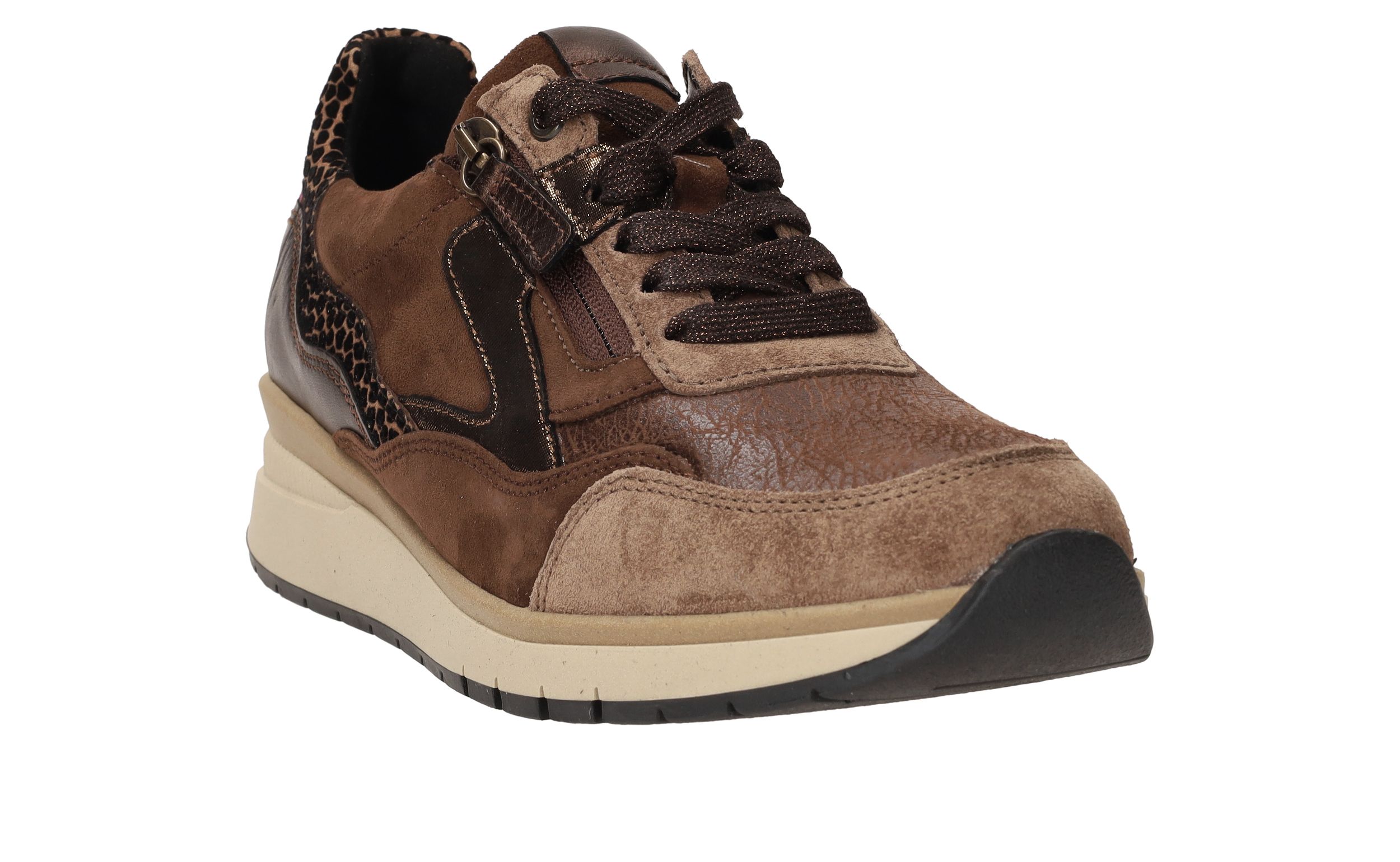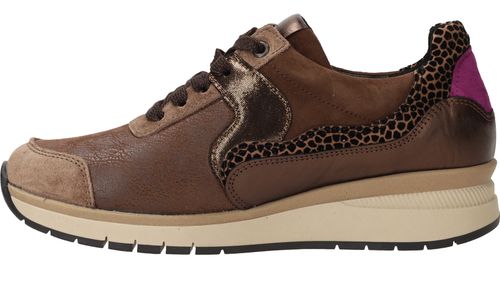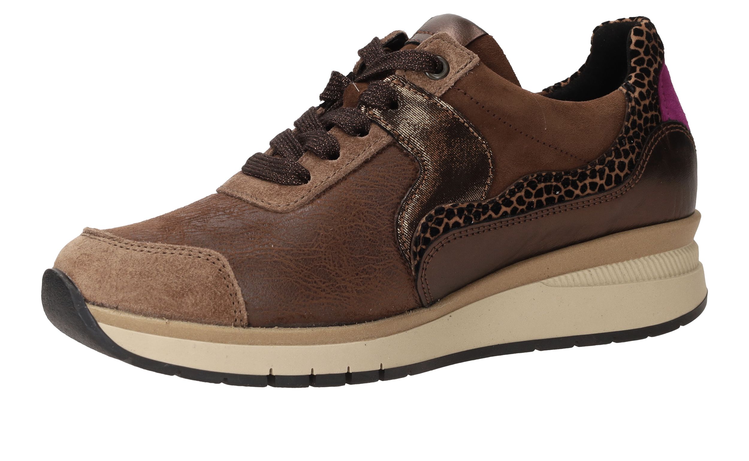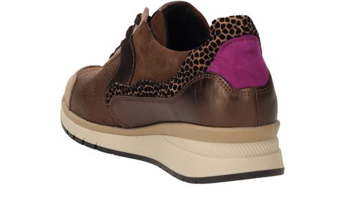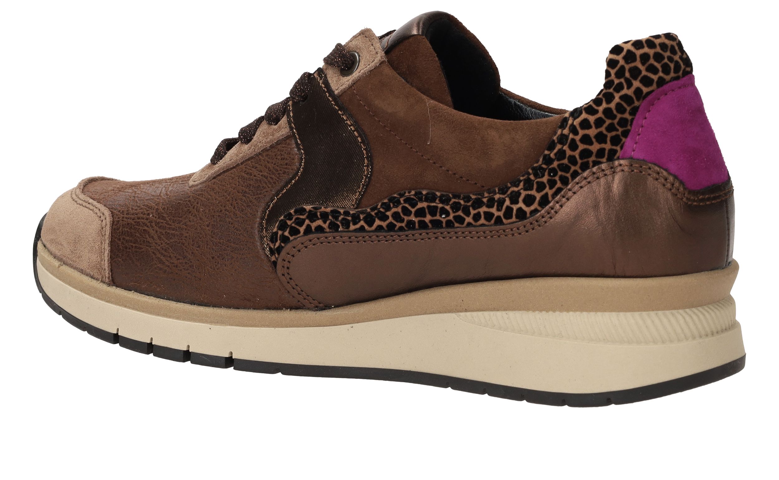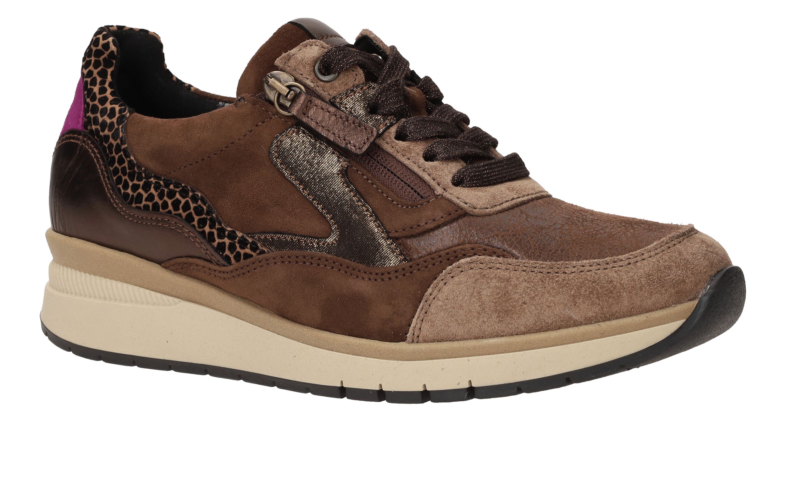 Prachtige bruine Gabor sneaker met mooie metallic accenten en fuchsia detail. Door het Optifit voetbed loopt deze sneaker super comfortabel.