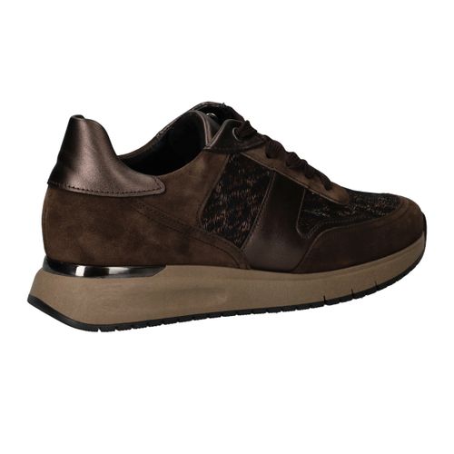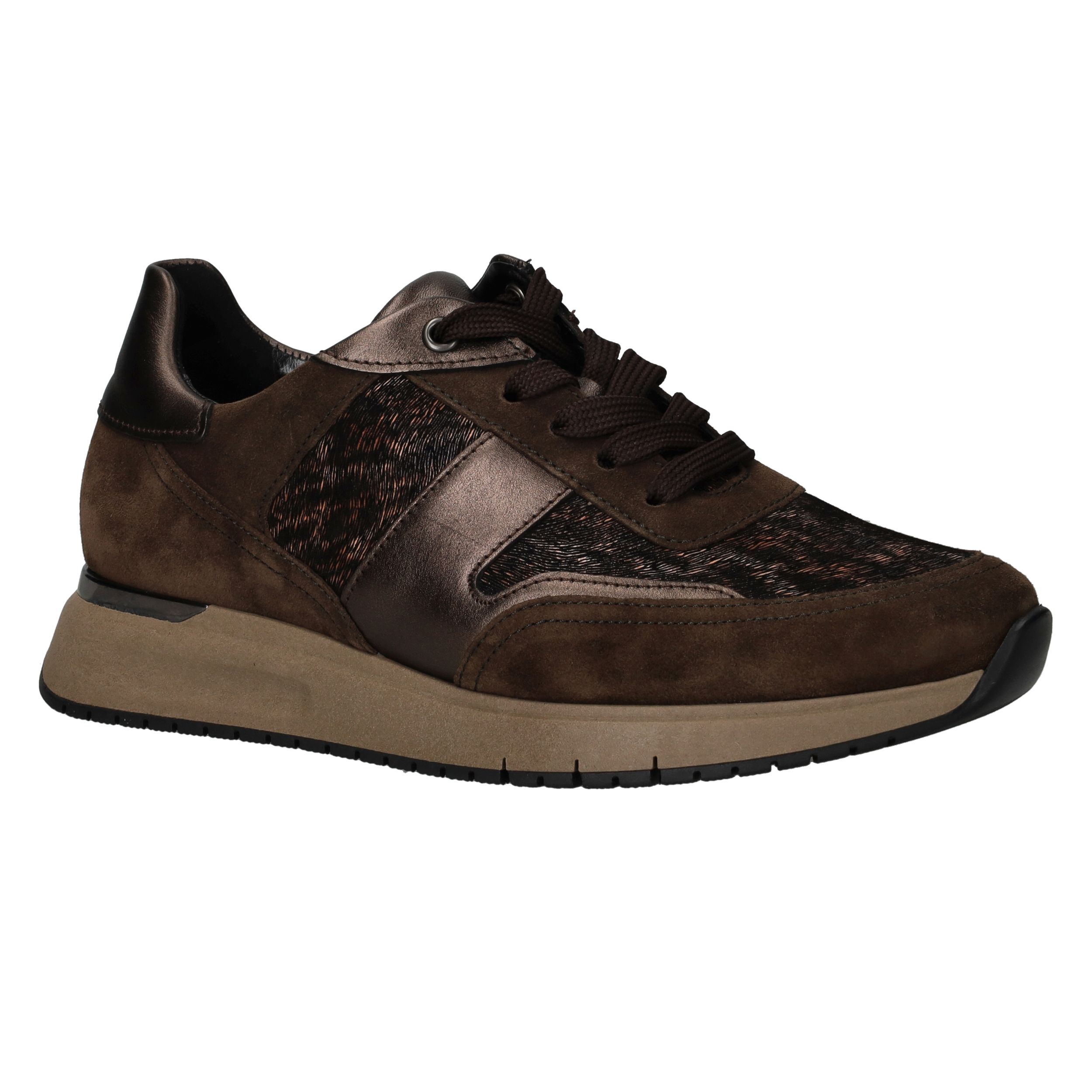 Deze elegante sneaker voor dames van Gabor combineert comfort met een verfijnde uitstraling. De buitenkant van suède en metallic leergeeft een chique touch aan elke outfit. Dankzij de voering van leer en textiel voelt de sneaker heerlijk zacht en ademend aan, perfect voor dagelijks gebruik.