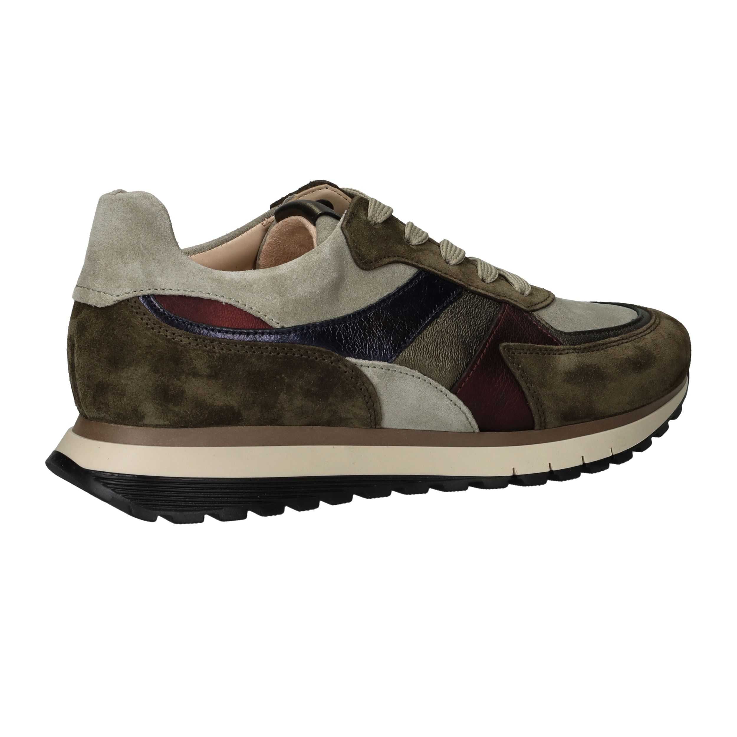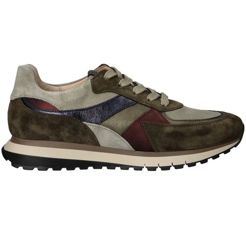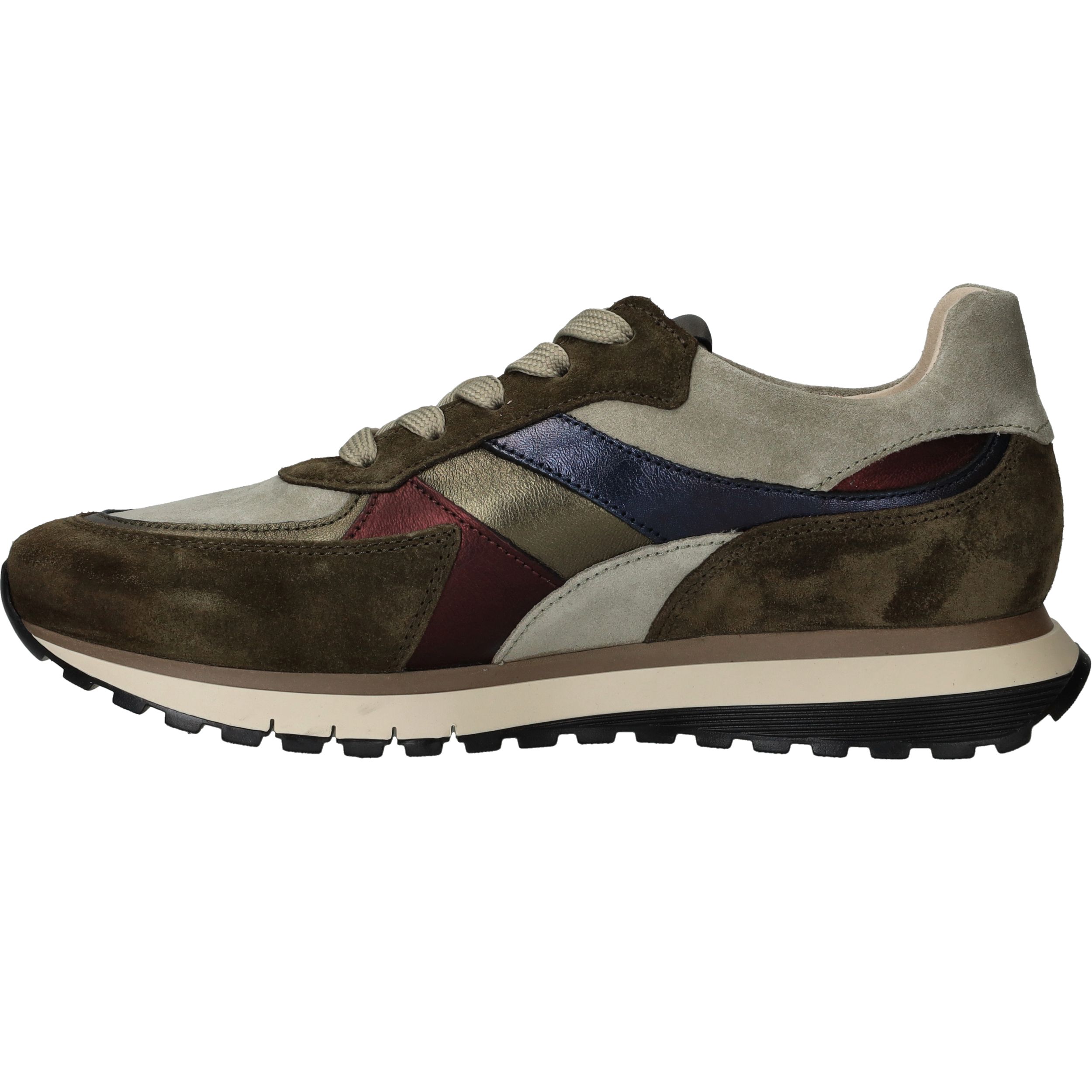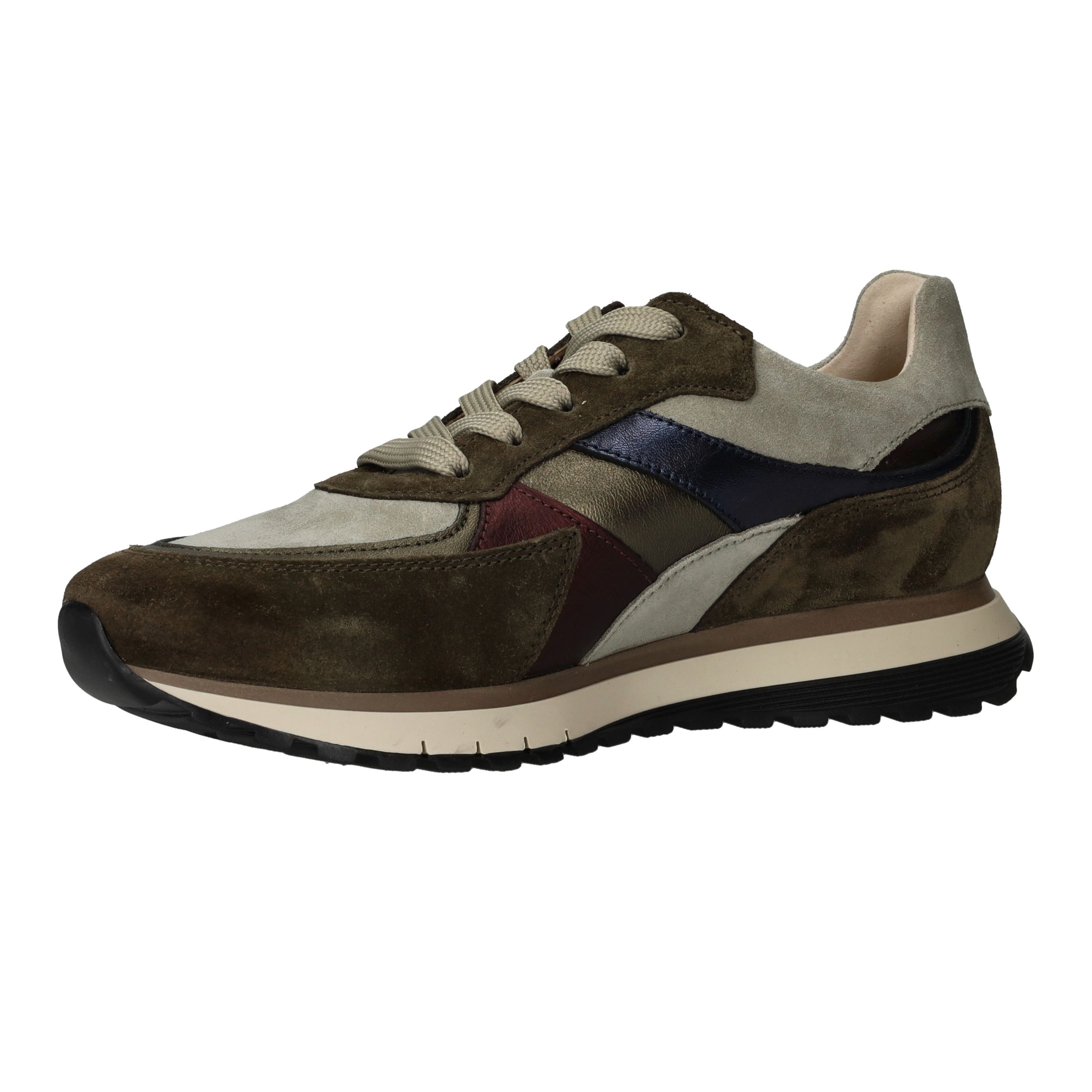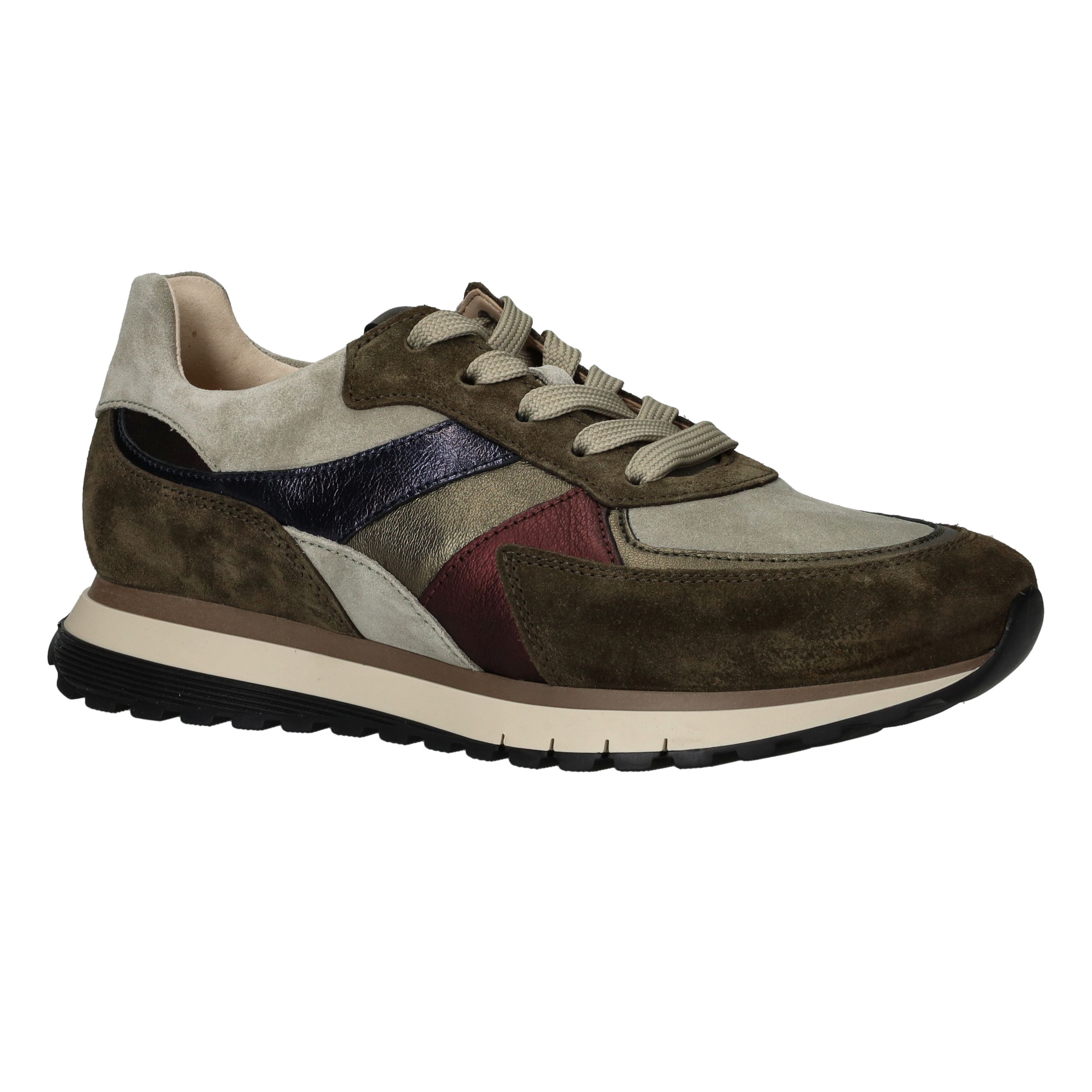 Deze Gabor sneaker voor dames is uitgevoerd in groen suède met metallic details. Dankzij de sportieve uitstraling en de comfortabele pasvorm is dit model ideaal voor dagelijks gebruik. De sneaker heeft een comfortabele H-wijdte en een uitneembaar voetbed, waardoor deze ook geschikt is voor eigen inlegzolen.