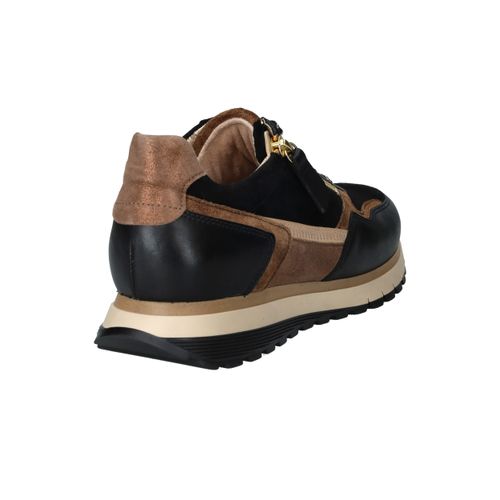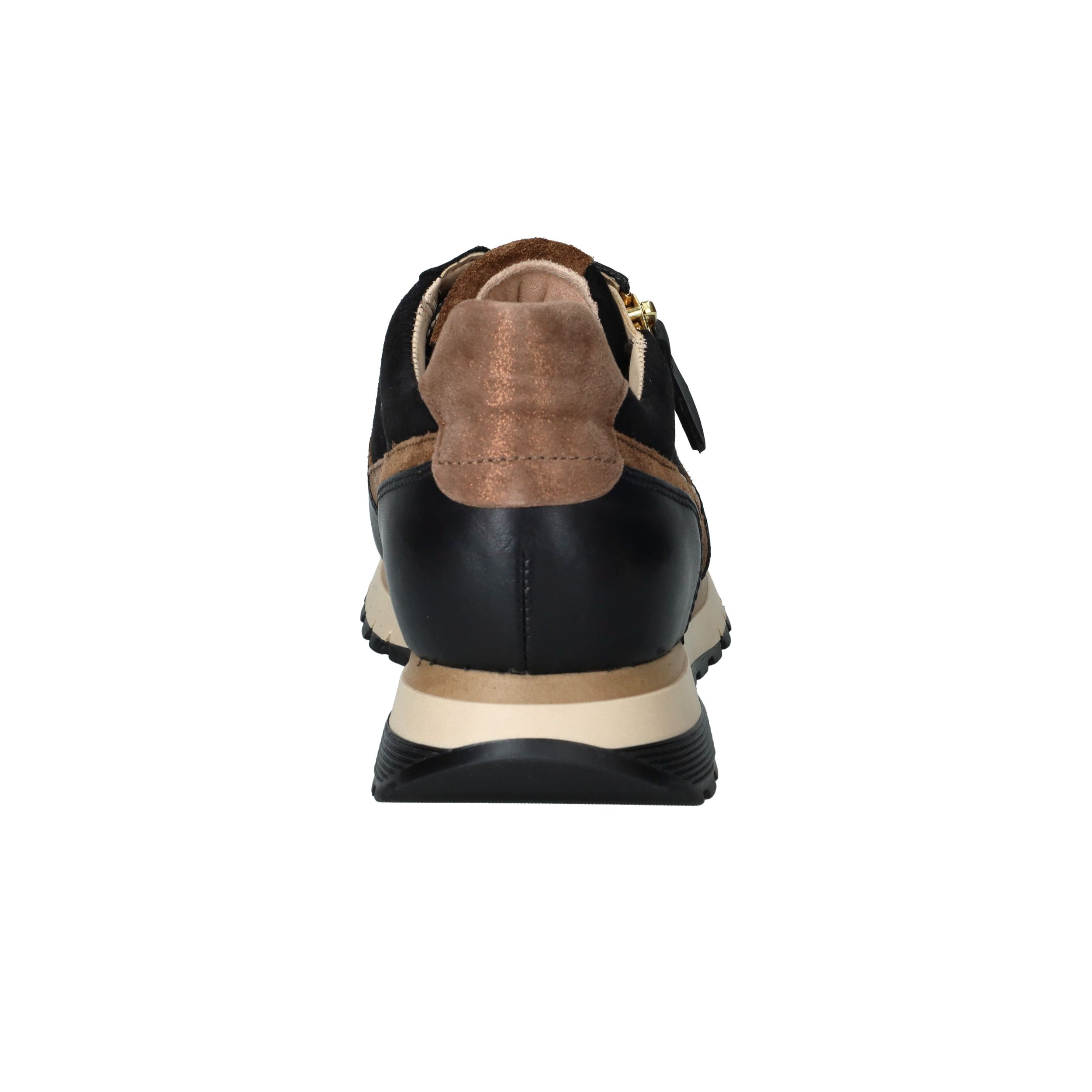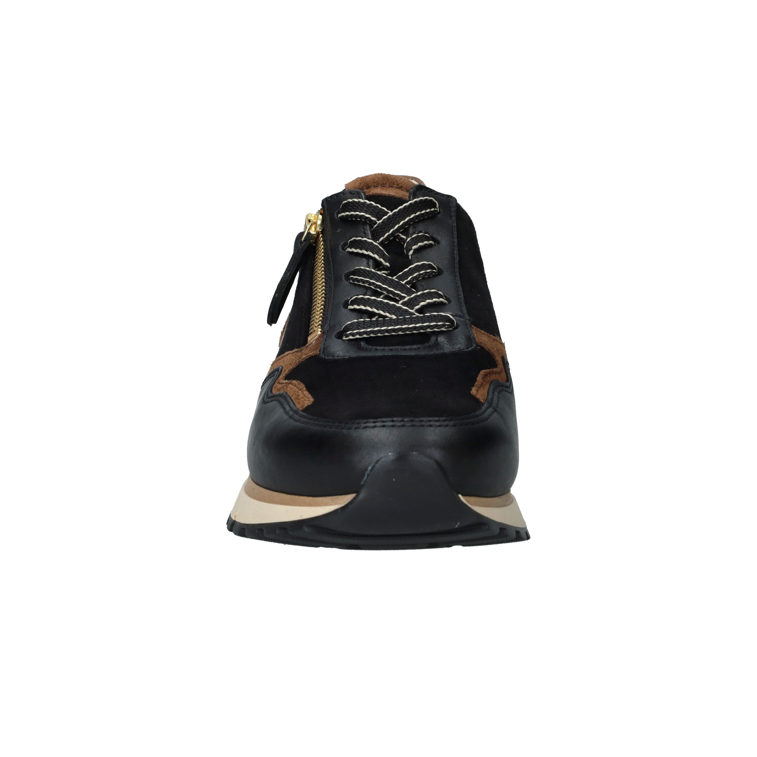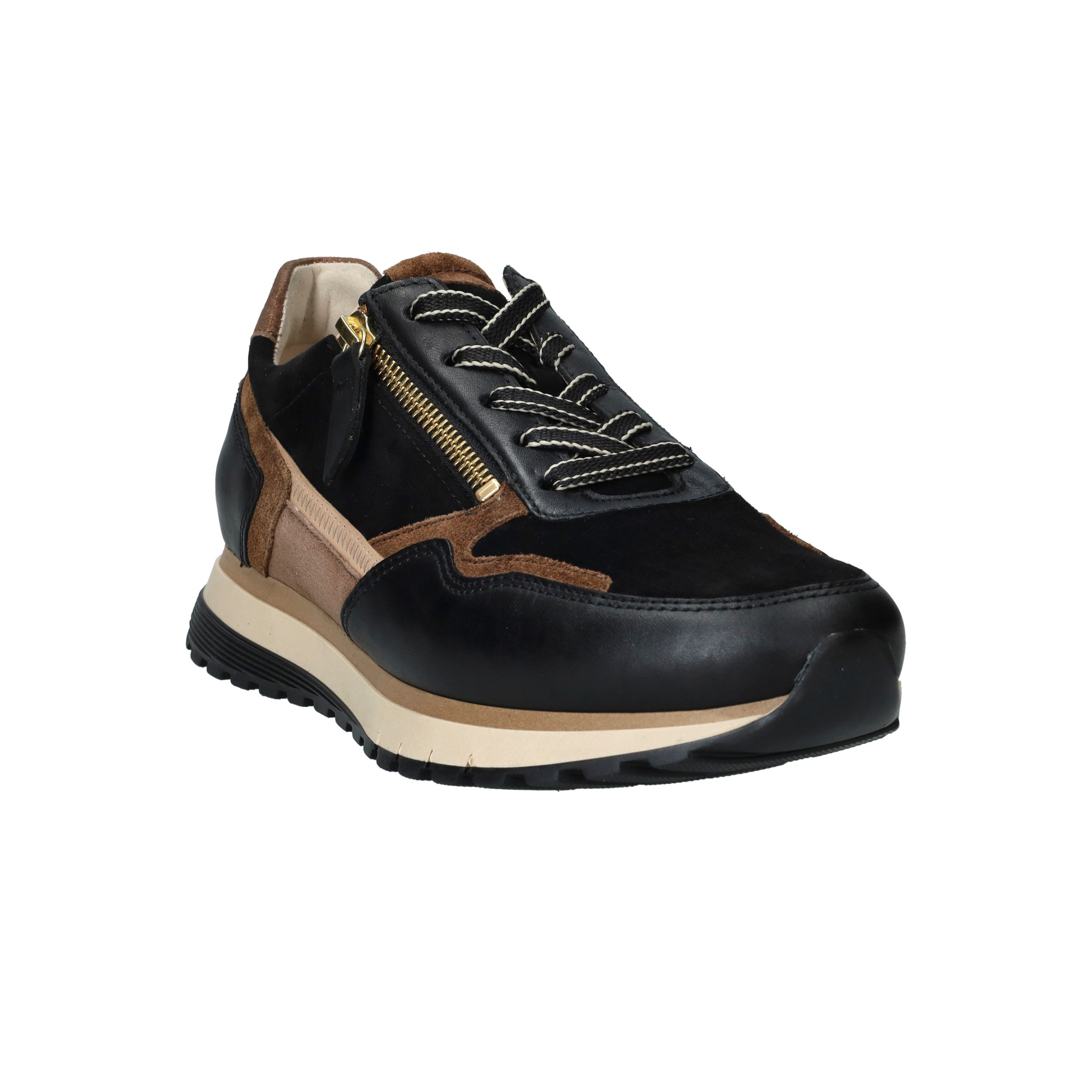 Deze elegante dames sneakers van Gabor combineren comfort met klasse. De mix van zwart leer, suède en beige accenten geeft deze sneaker een rijke, luxe uitstraling. Dankzij de ritssluiting naast de veters trek je ze gemakkelijk aan. De normale voetbreedte G en zachte voering zorgen voor een uitstekende pasvorm.