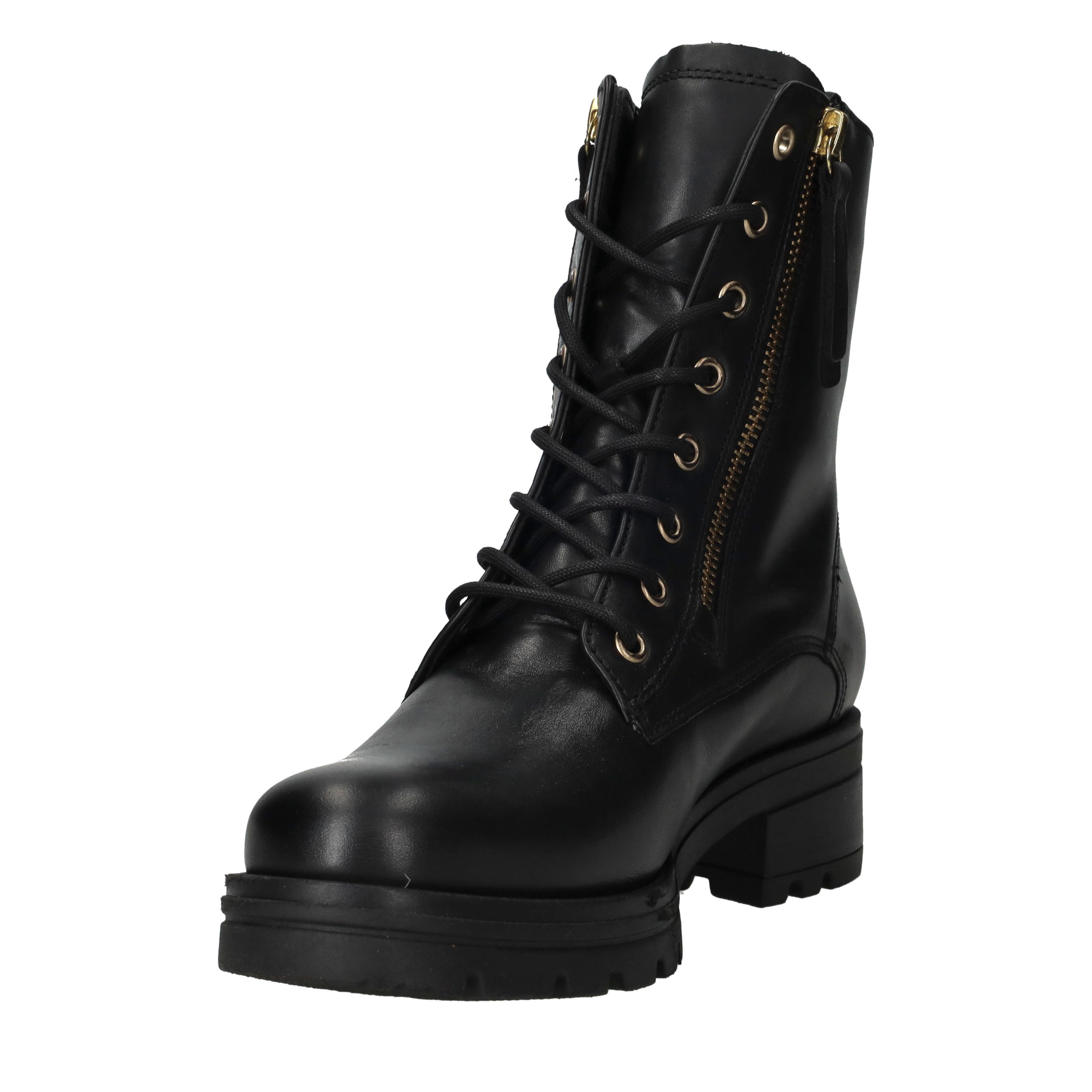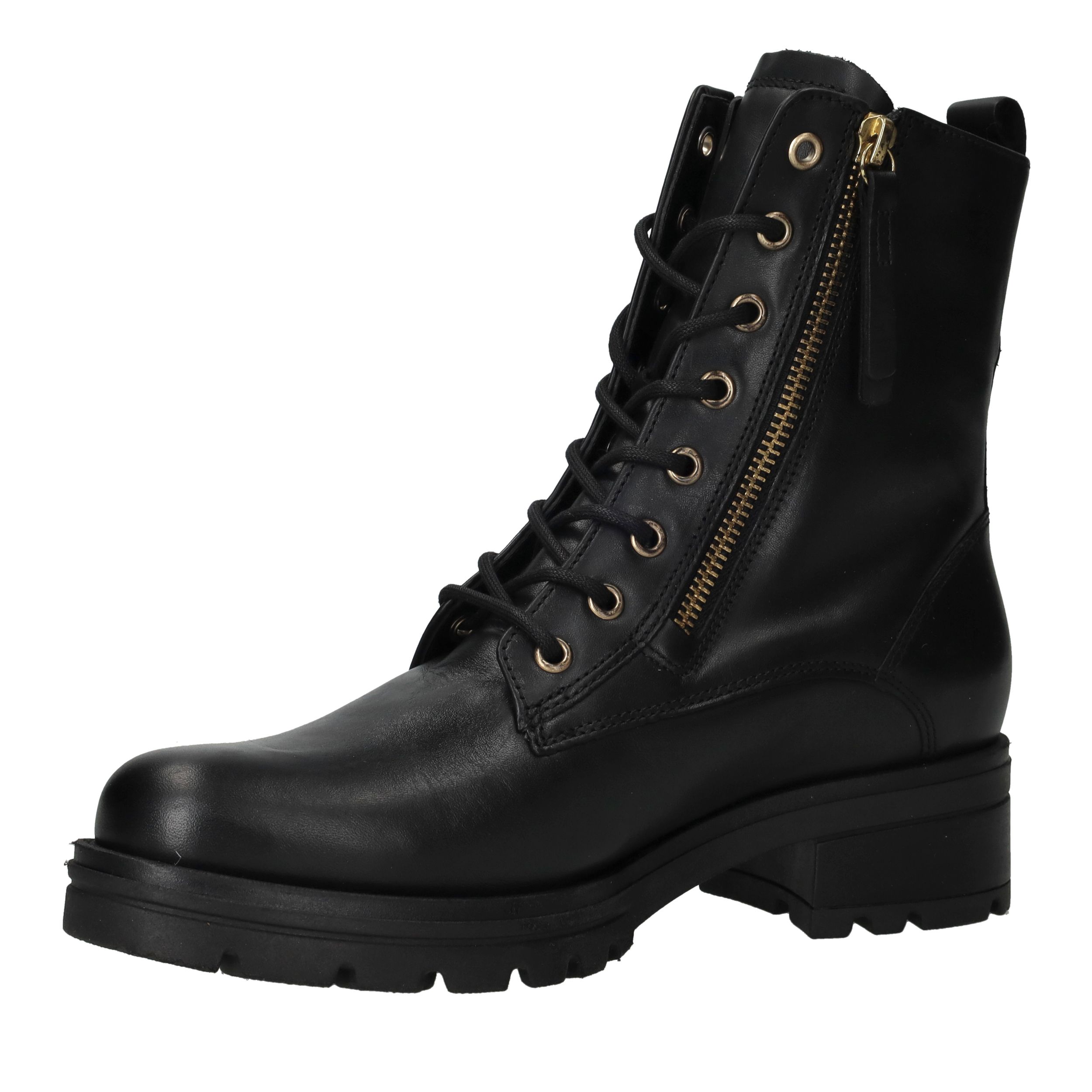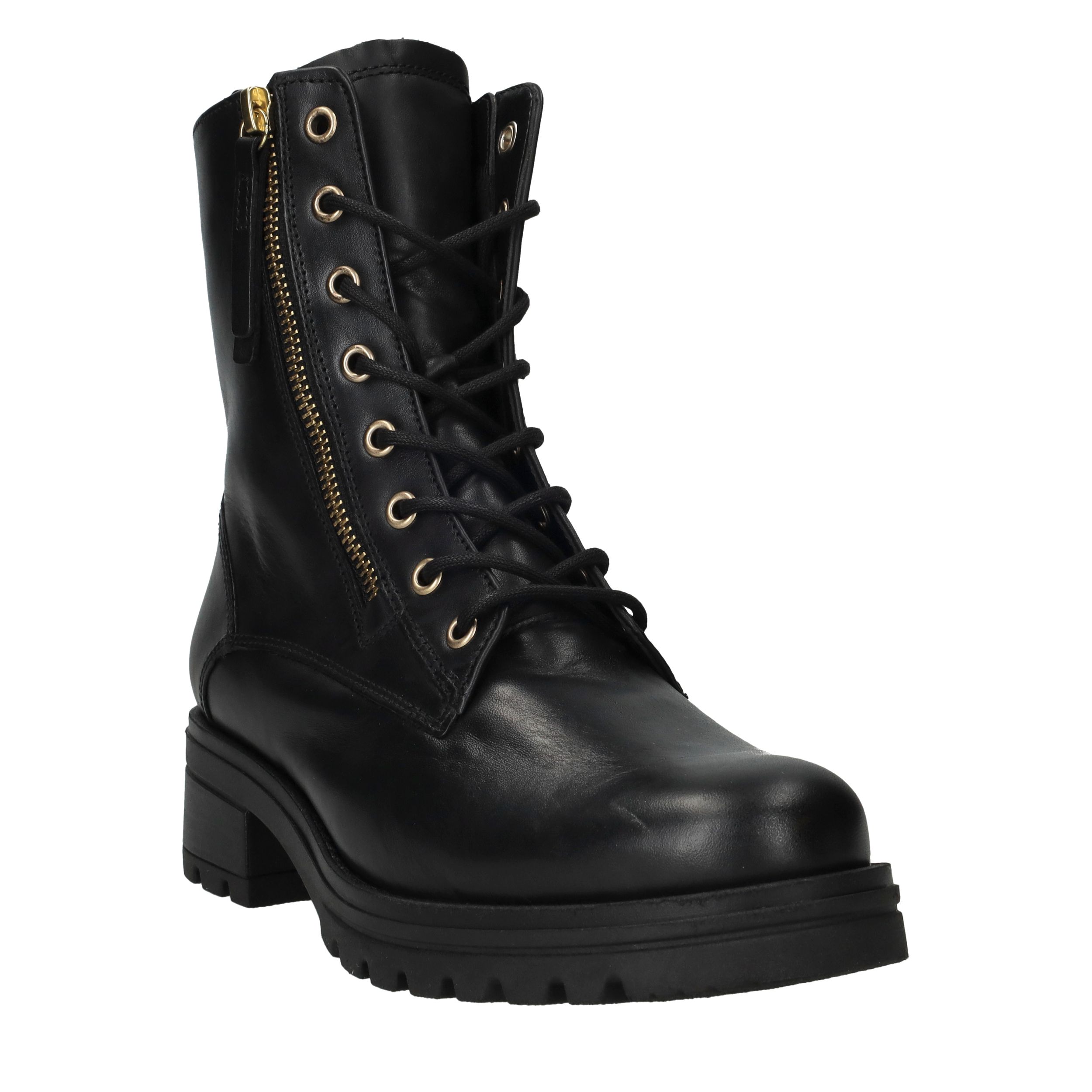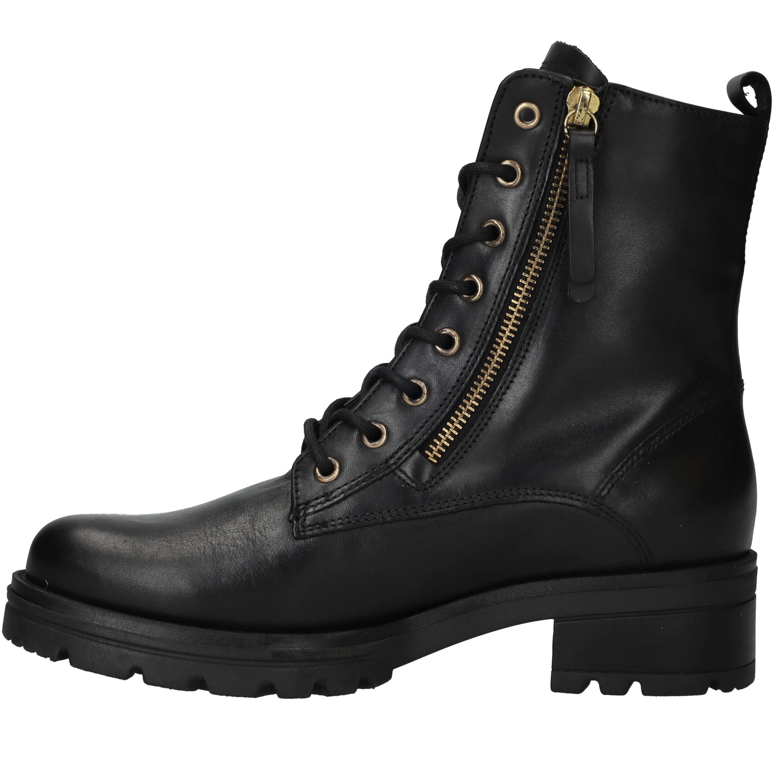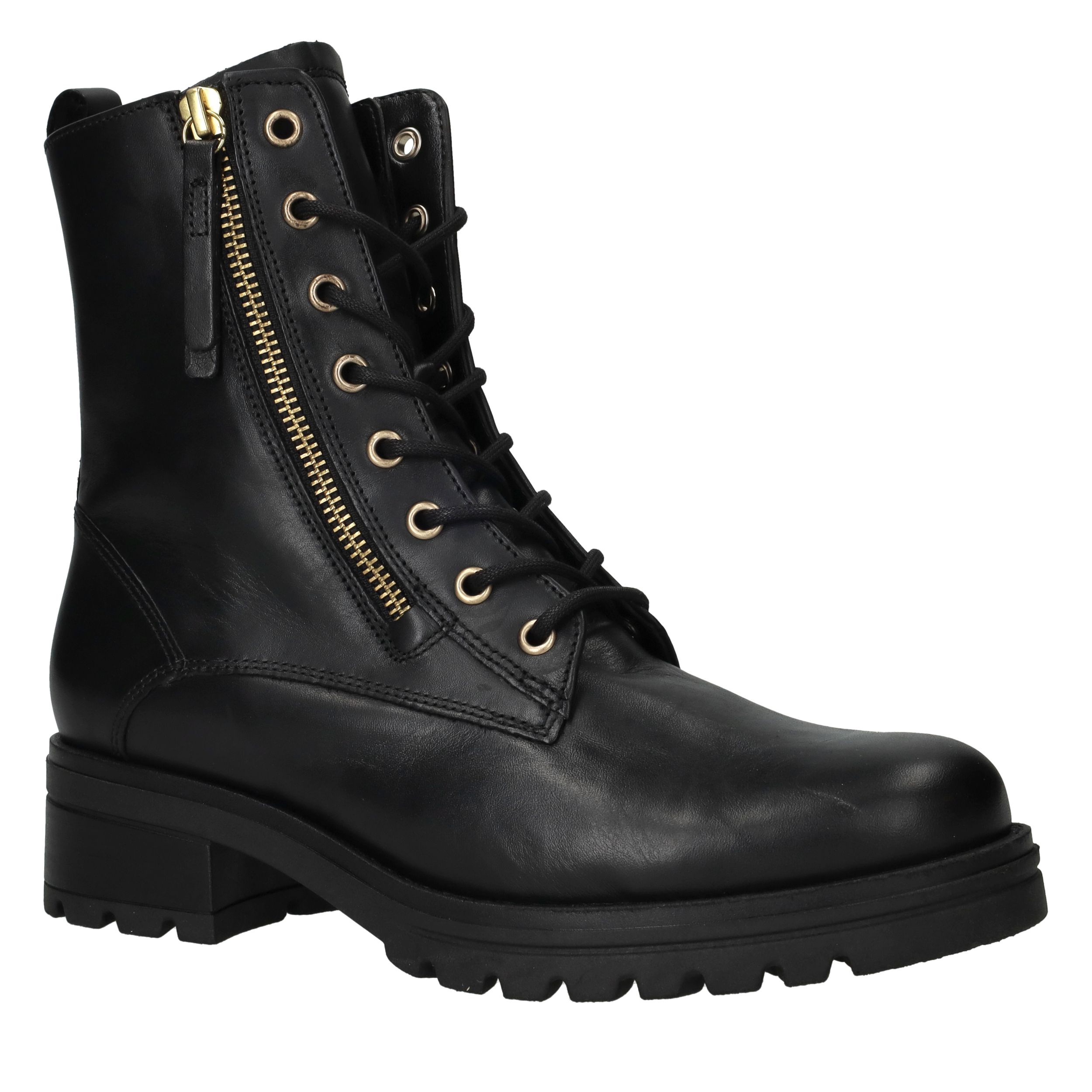 - Belangrijke kenmerken zijn de robuuste profielzool, de goudkleurige rits en het tijdloze design.