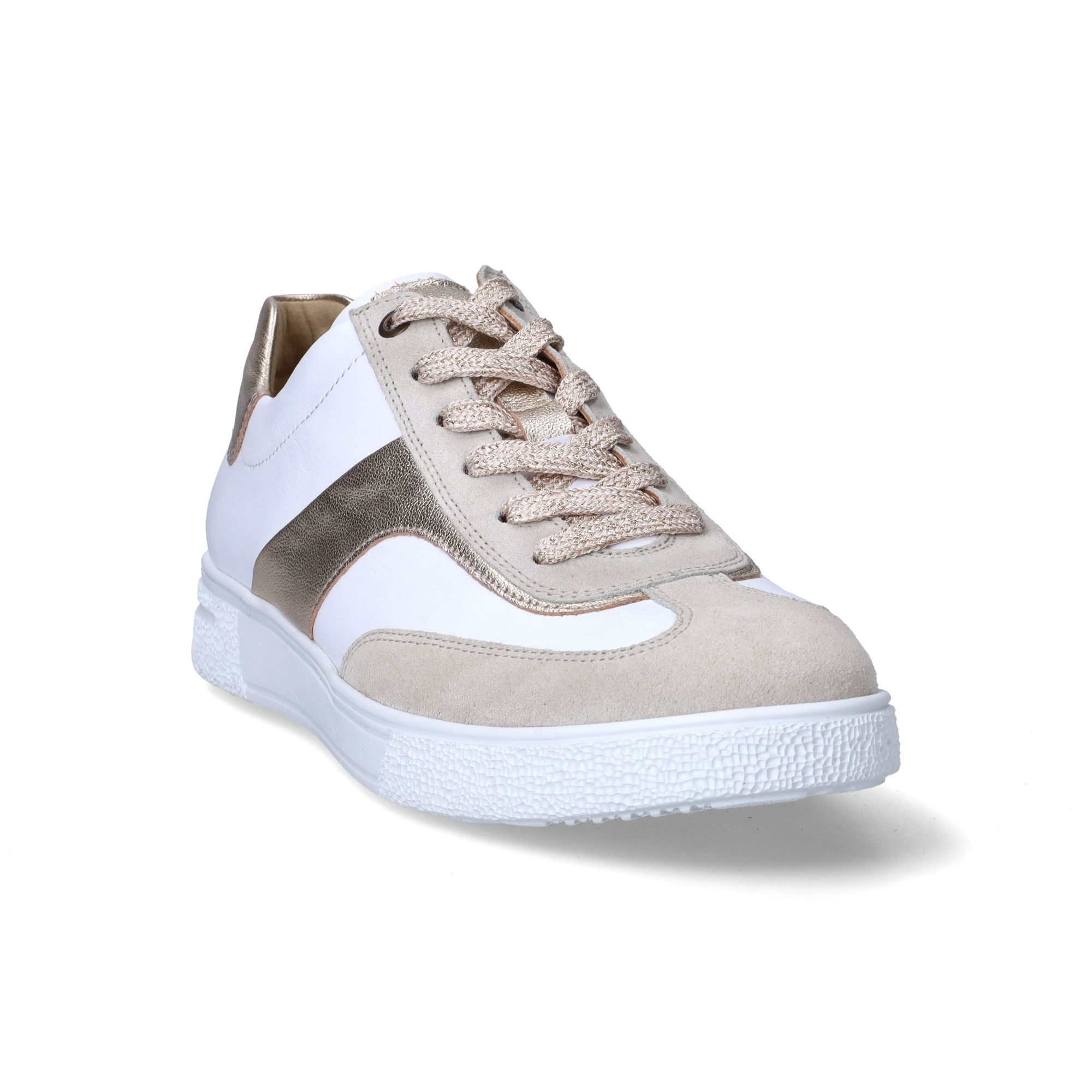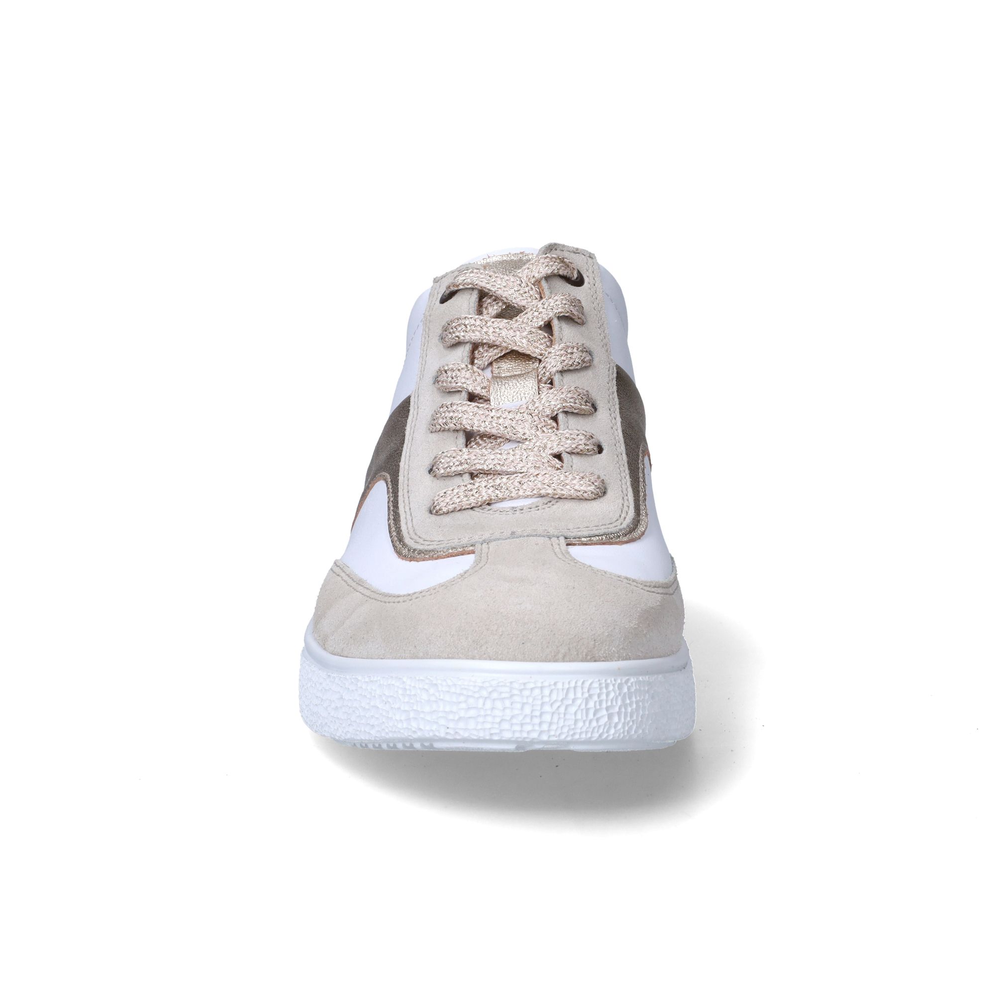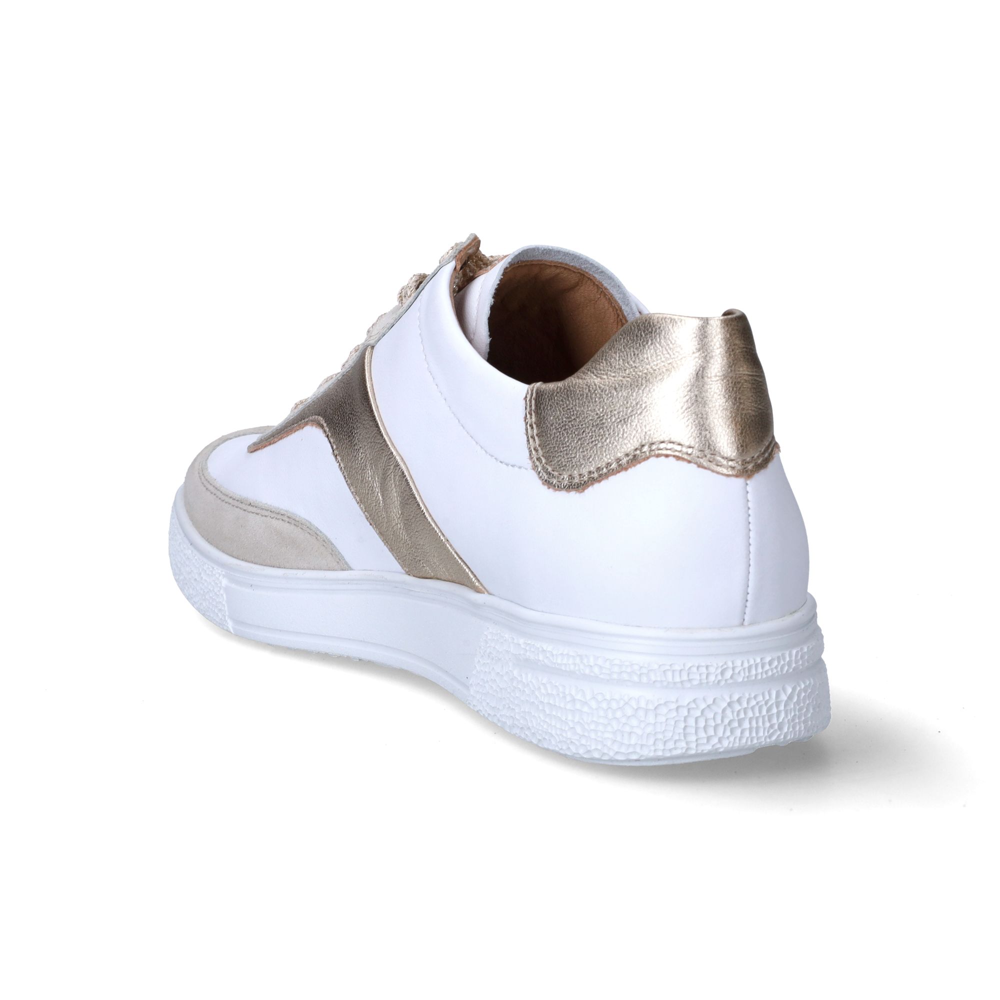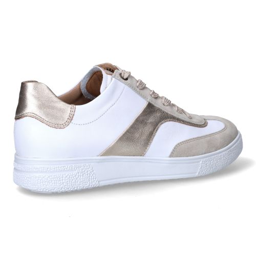 De dames sneakers van Hartjes, in een prachtige combinatie van beige met metallic en subtiel wit, zijn een genot voor je voeten. Deze schoenen, uitgevoerd in leer en suède, voegen een vleugje elegantie toe aan je dagelijkse look, terwijl ze tegelijkertijd een uitzonderlijk draagcomfort bieden. Het ontwerp is zorgvuldig gekozen om de vorm van je voet te volgen, wat zorgt voor een natuurlijke pasvorm. Je merkt direct de fijne drukverdeling onder je voeten, wat bijdraagt aan een ontspannen loopervaring, zelfs na lange dagen. Het gevoel van de sneakers aan je voeten is licht en soepel, alsof ze met je meebewegen bij elke stap. Ze zijn niet alleen mooi om te zien, maar vooral ook prettig om te dragen.- Deze sneakers sluiten met veters, zodat je de pasvorm perfect kunt aanpassen voor een stevige en comfortabele omsluiting van je voet.
