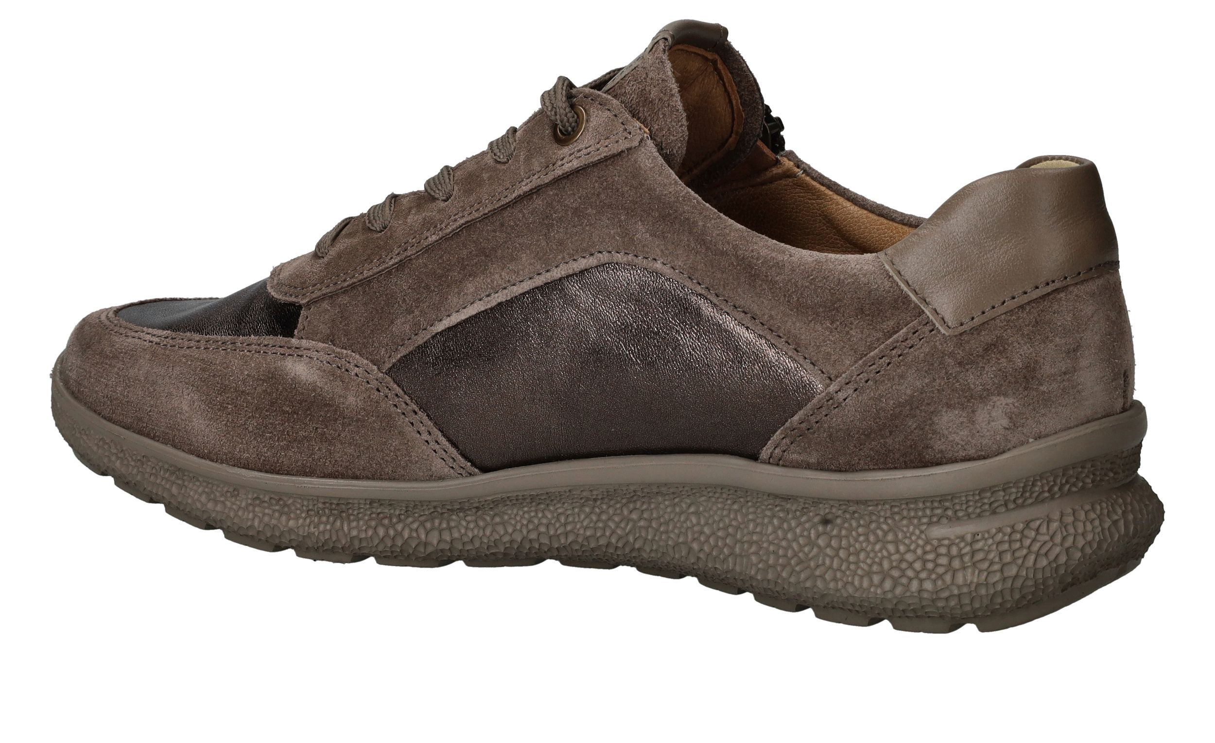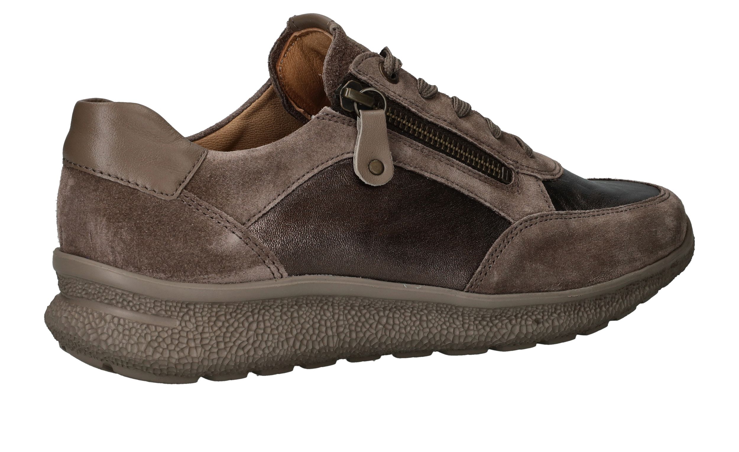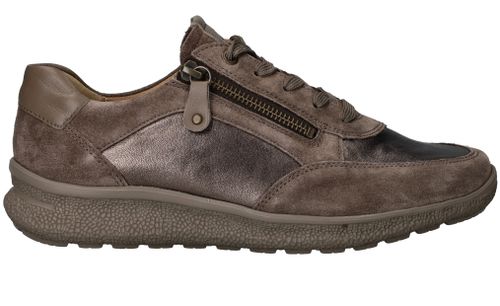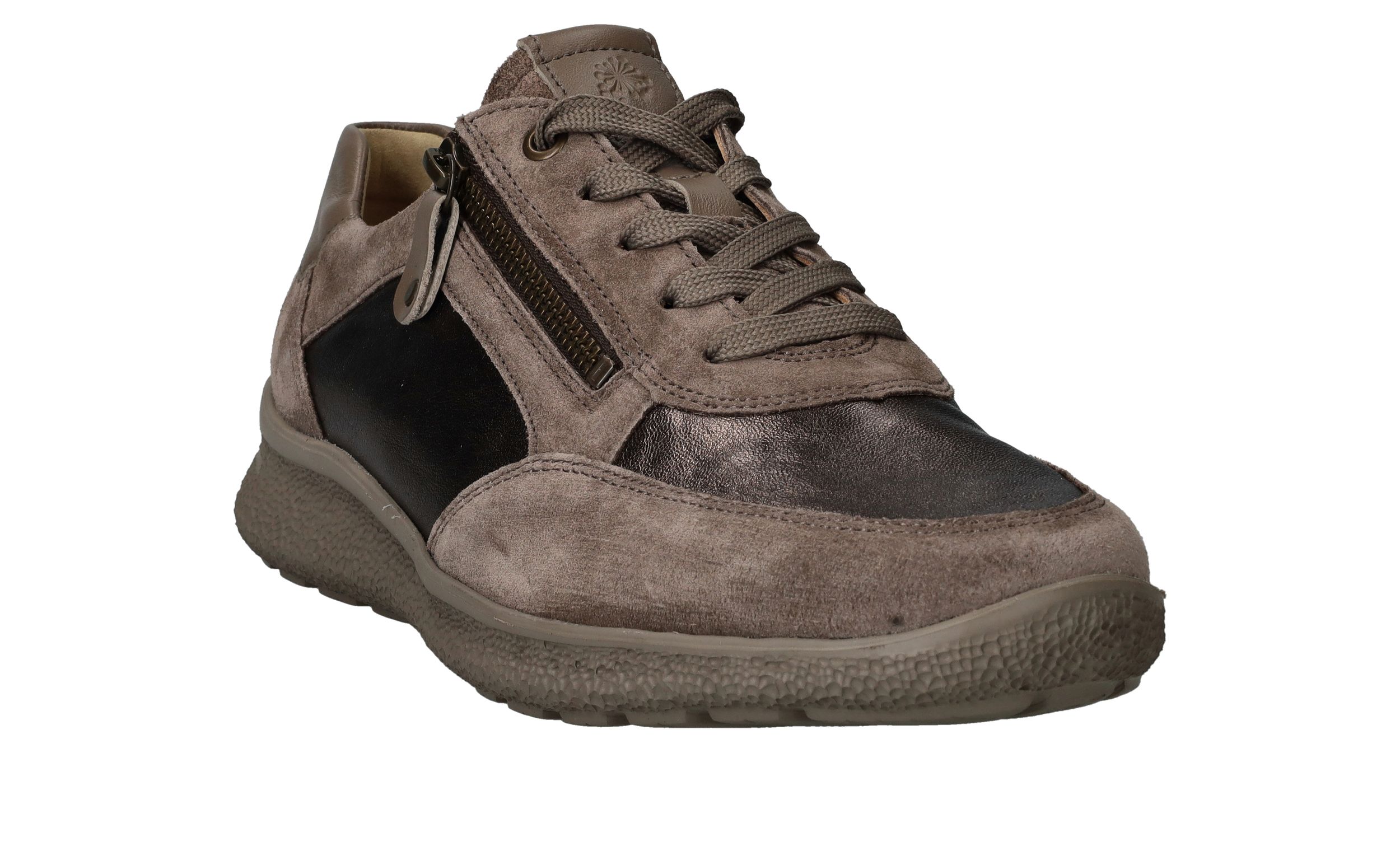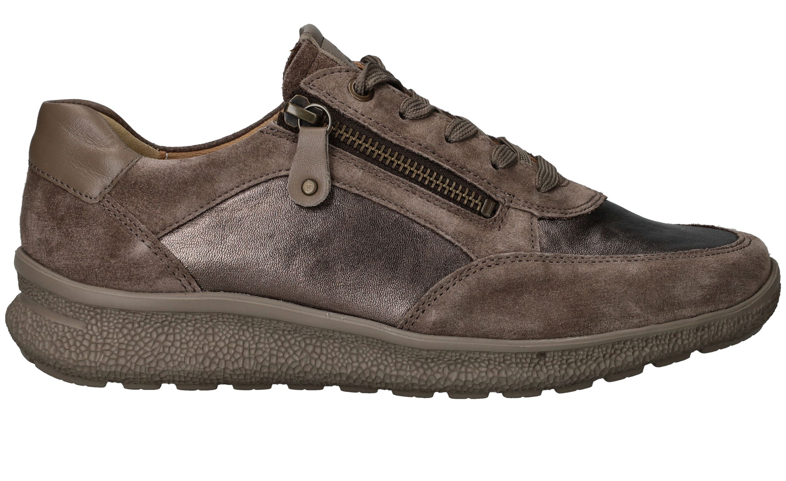 Zoek je een comfortabele en sportieve damesschoen? Ga daan voor deze donker beige Hartjes sneaker met platformzool! De sneaker is helemaal gemaakt van leer en loopt heel comfortabel door het voorgevormde voetbed.