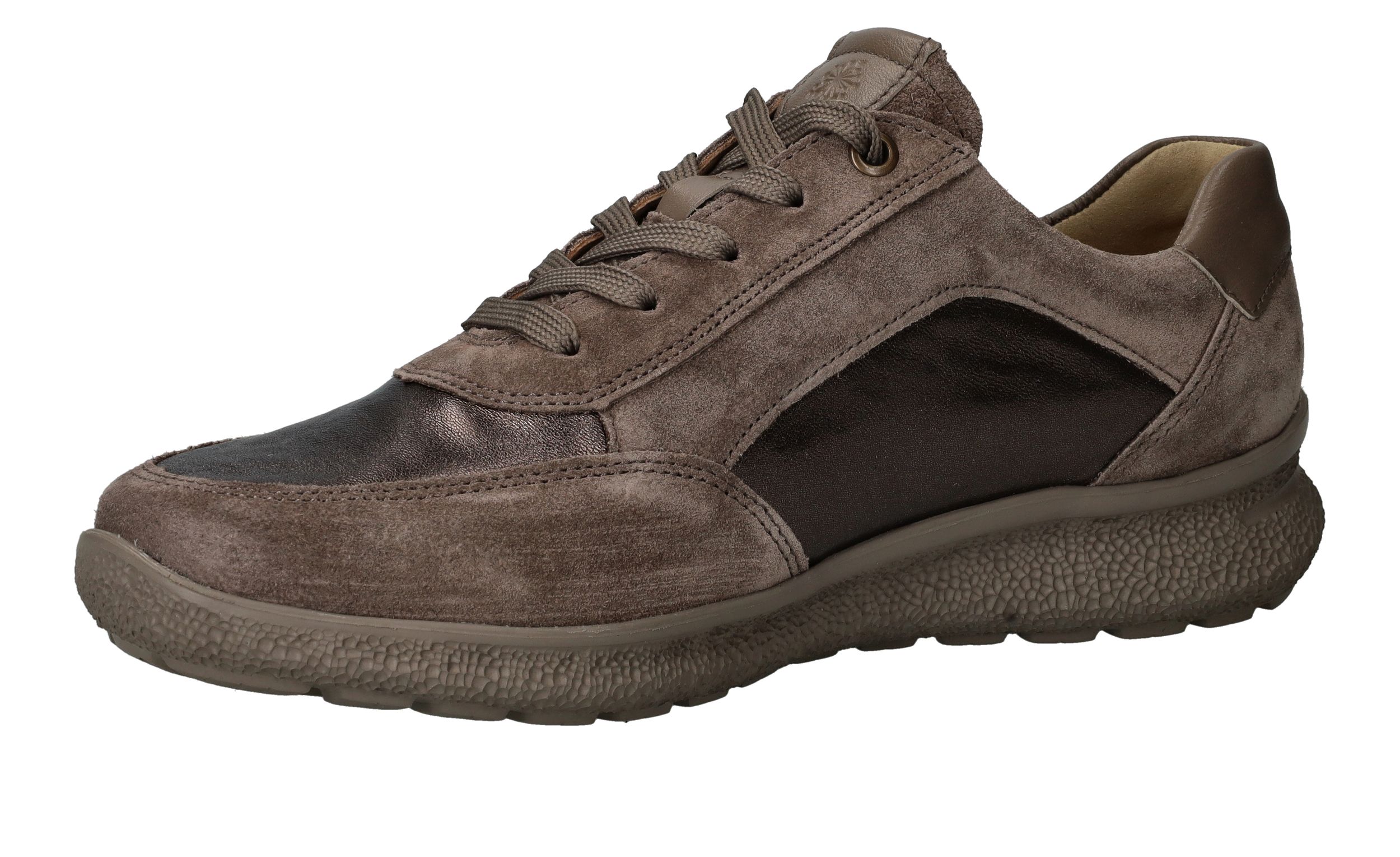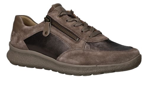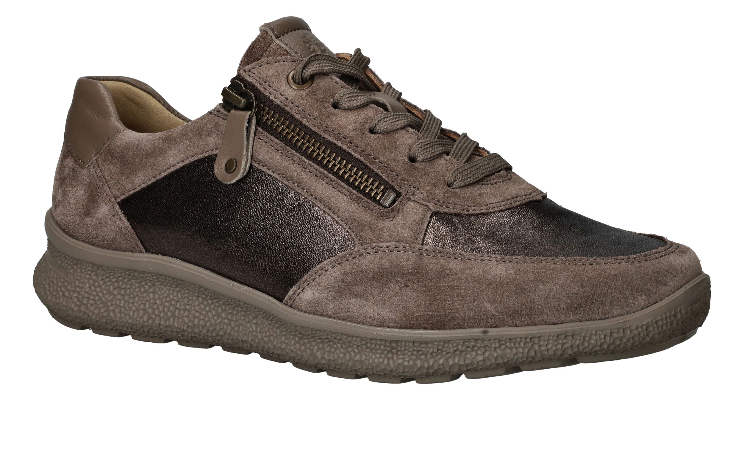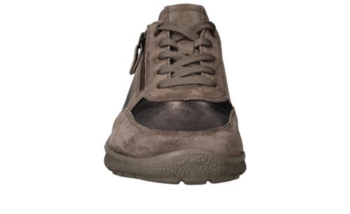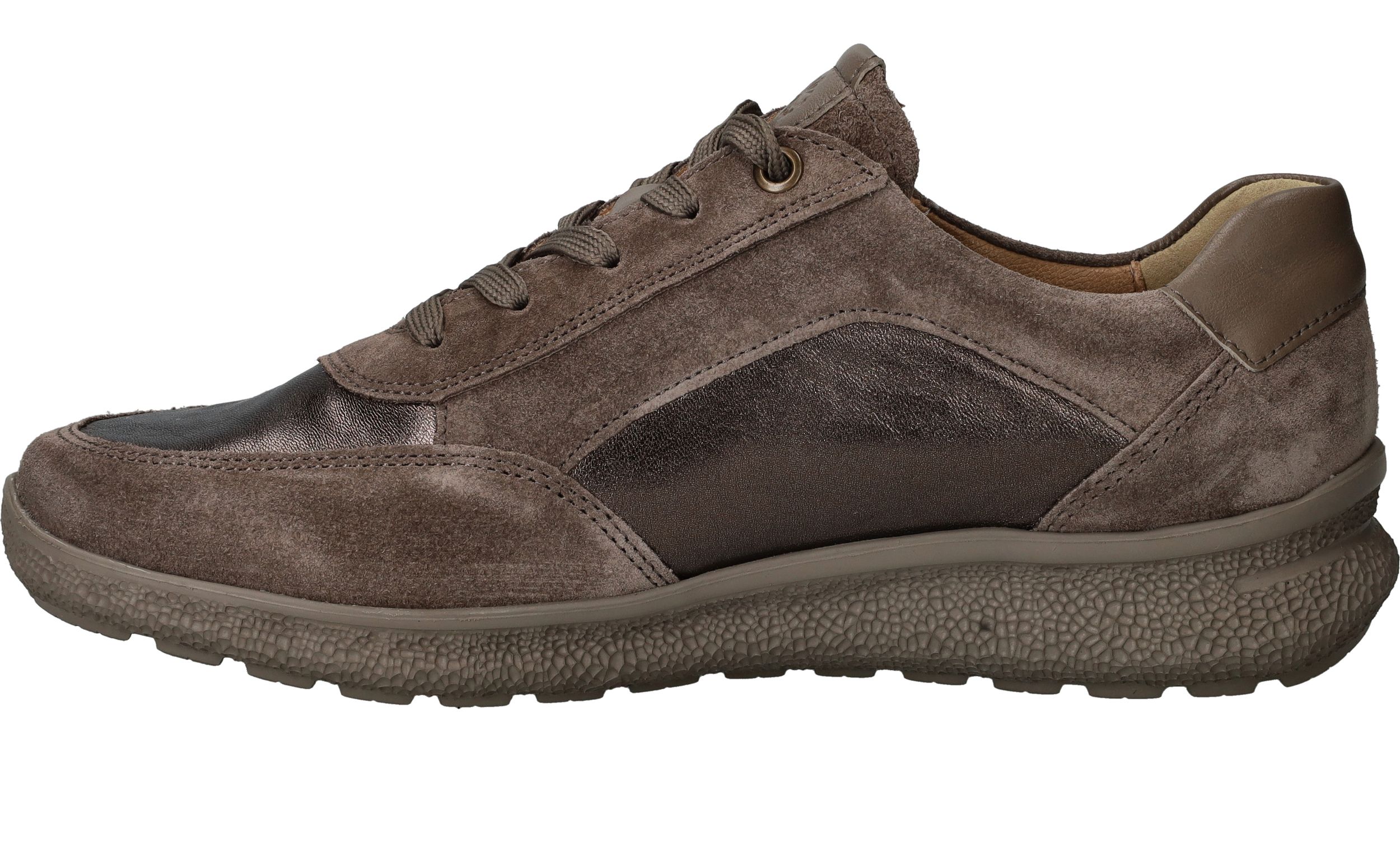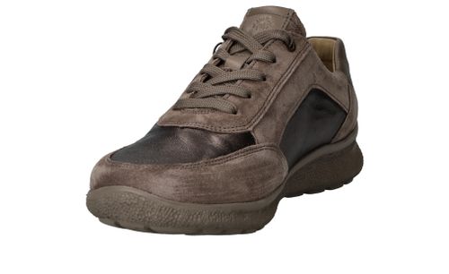 Zoek je een comfortabele en sportieve damesschoen? Ga daan voor deze donker beige Hartjes sneaker met platformzool! De sneaker is helemaal gemaakt van leer en loopt heel comfortabel door het voorgevormde voetbed.