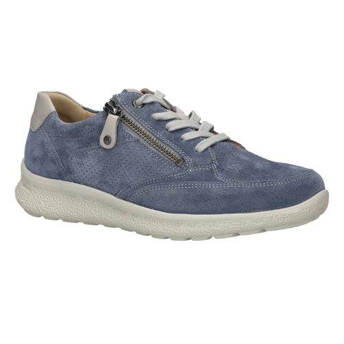 Combineer stijl en comfort met deze Hartjes sneaker! De damessneaker heeft een mooie jeansblauwe kleur en is heel licht van gewicht.