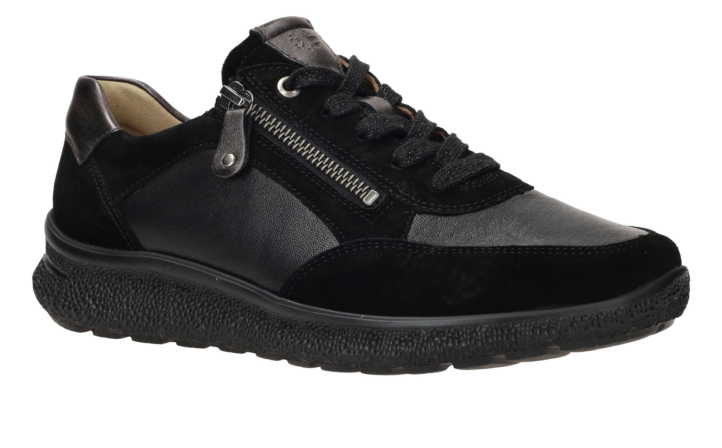 Zoek je een comfortabele leren sneaker die er ook heel leuk uitziet? Ga dan voor deze zwarte Hartjes sneaker voor dames. De sneaker heeft voetwijdte K en is daardoor geschikt voor een bredere voet.