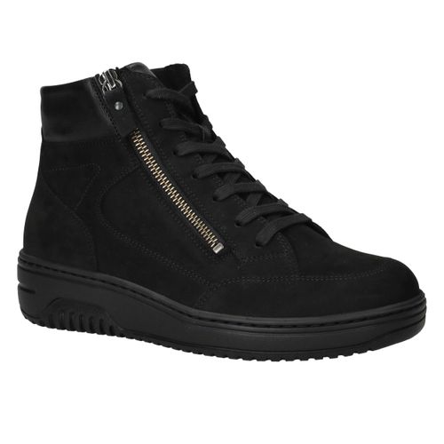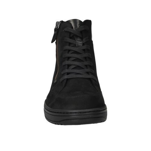 Deze stijlvolle Hartjes veterboot voor dames in het zwart is een perfecte combinatie van comfort en een moderne uitstraling. Het bovenwerk is gemaakt van hoogwaardig nubuck met een klein stukje leer, wat zorgt voor een luxe en toch robuuste look. De zachte textielen voering maakt de schoen heerlijk comfortabel, ideaal voor dagelijks gebruik.