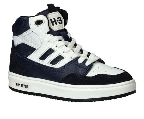 Stoere en stevige HIP Style sneaker voor jongens. De sneaker is helemaal gemaakt van leer en de kleurcombinatie van blauw en wit zorgt ervoor dat hij makkelijk door te dragen is in alle seizoenen!