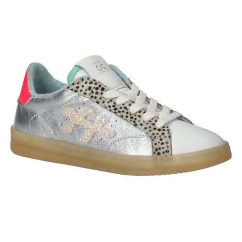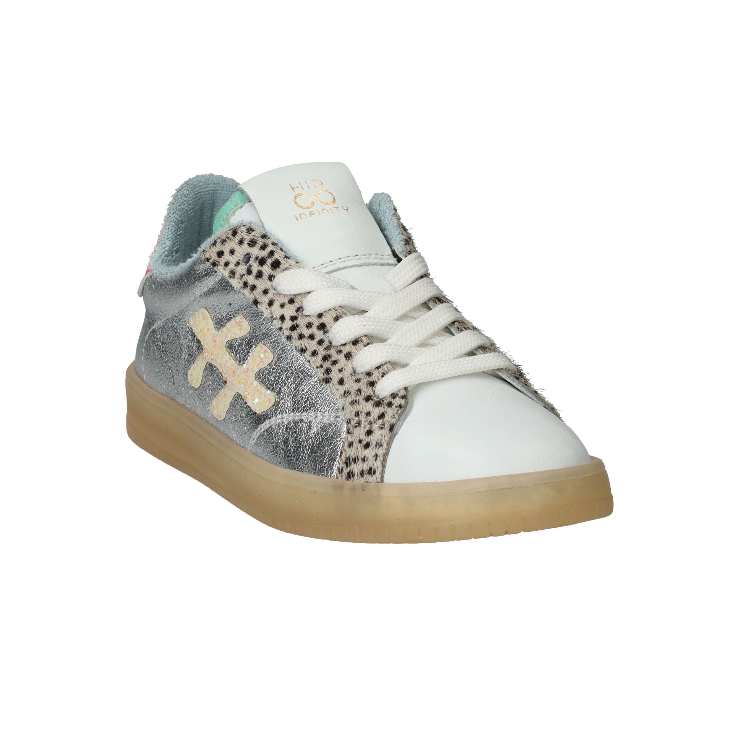 Ga voor deze vrolijke HIP Style sneaker met gave details zoals metallic zilver, neon accenten en een dierenprintje!