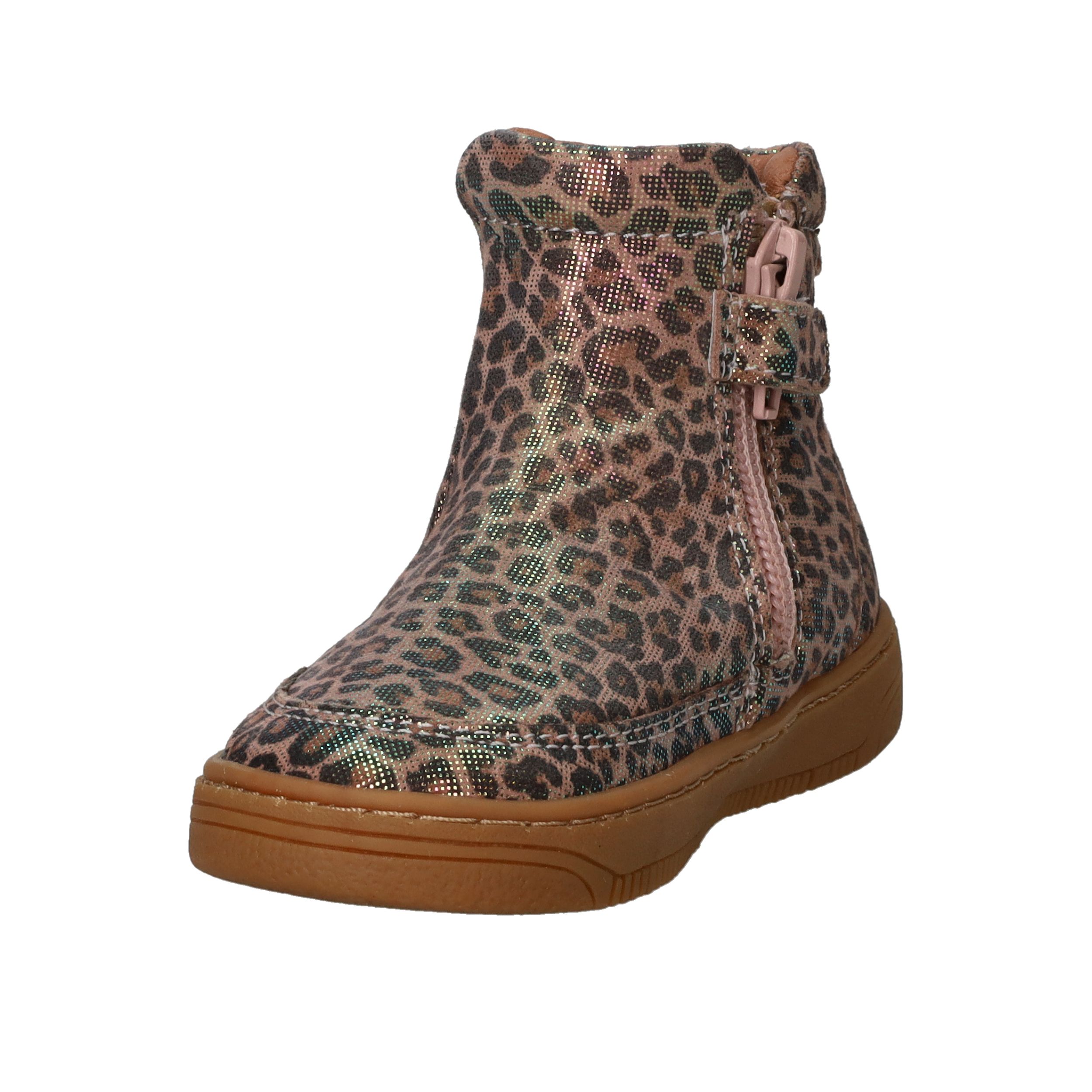 Dit IK-KE babylaarsje is een stijlvolle en comfortabele keuze voor de allerkleinsten. Uitgevoerd in roze metallic met een speelse dierenprint, is dit schoentje een echte blikvanger. Dankzij de rits is hij gemakkelijk aan en uit te trekken en biedt hij een comfortabele pasvorm voor dagelijks gebruik.