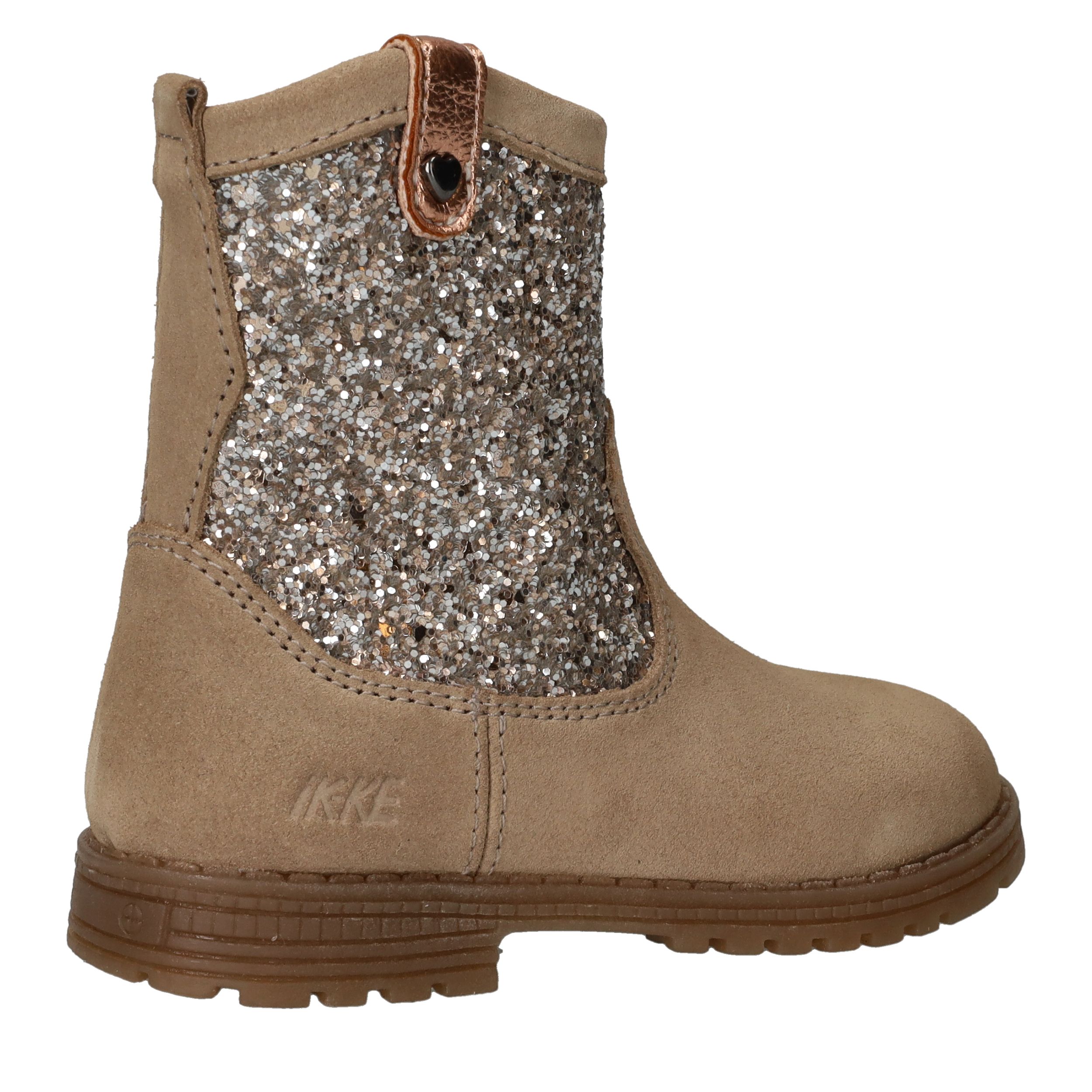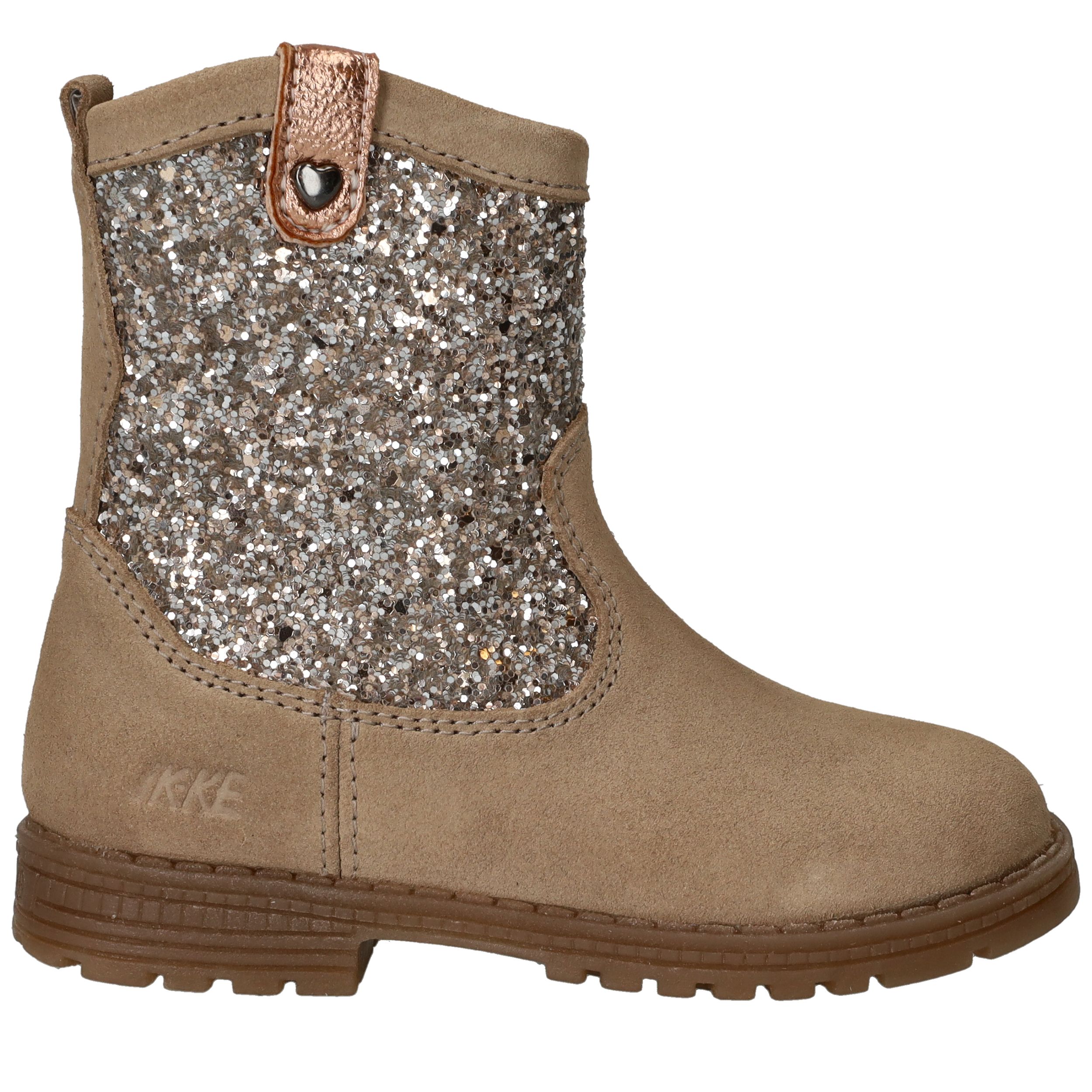 Met deze betoverende laarzen van IK-KE loopt jouw kleine meid er stralend bij. Het bovenwerk van suède en glitterachtig synthetisch materiaal zorgt voor een stijlvolle, speelse uitstraling. Dankzij de leren voering en stevige profielzool zijn deze boots niet alleen mooi, maar ook comfortabel en praktisch. Perfect voor schooldagen én feestjes!