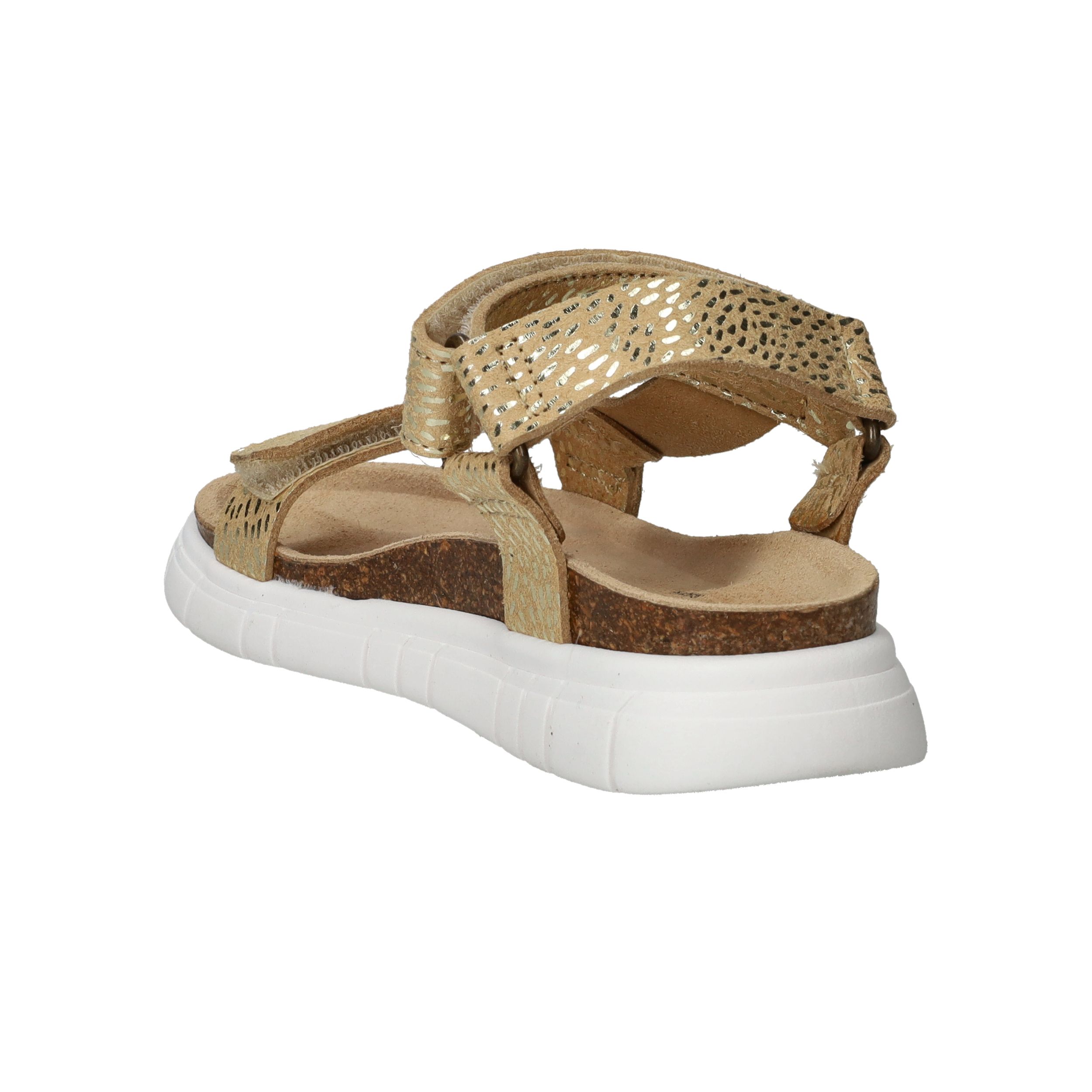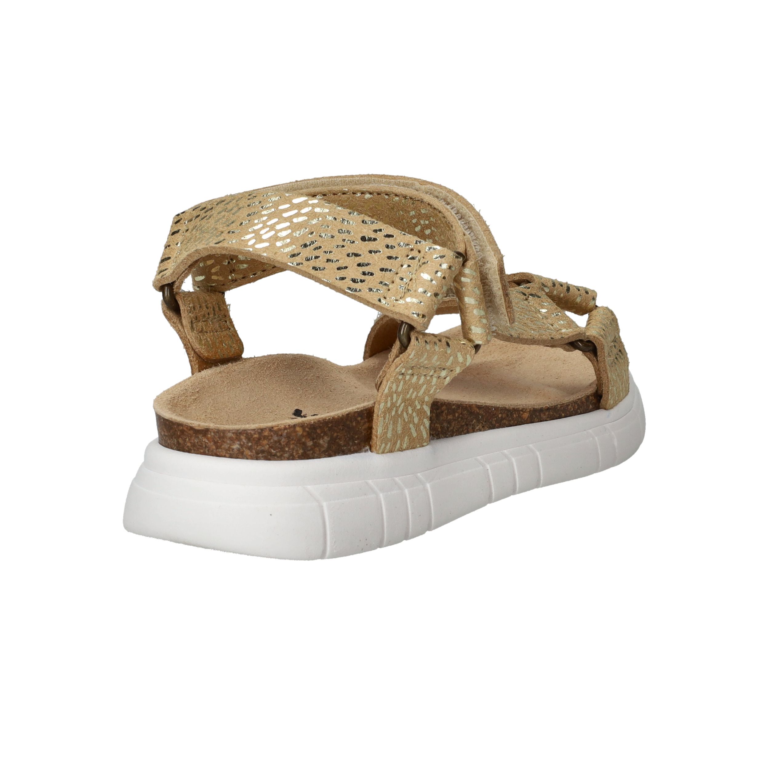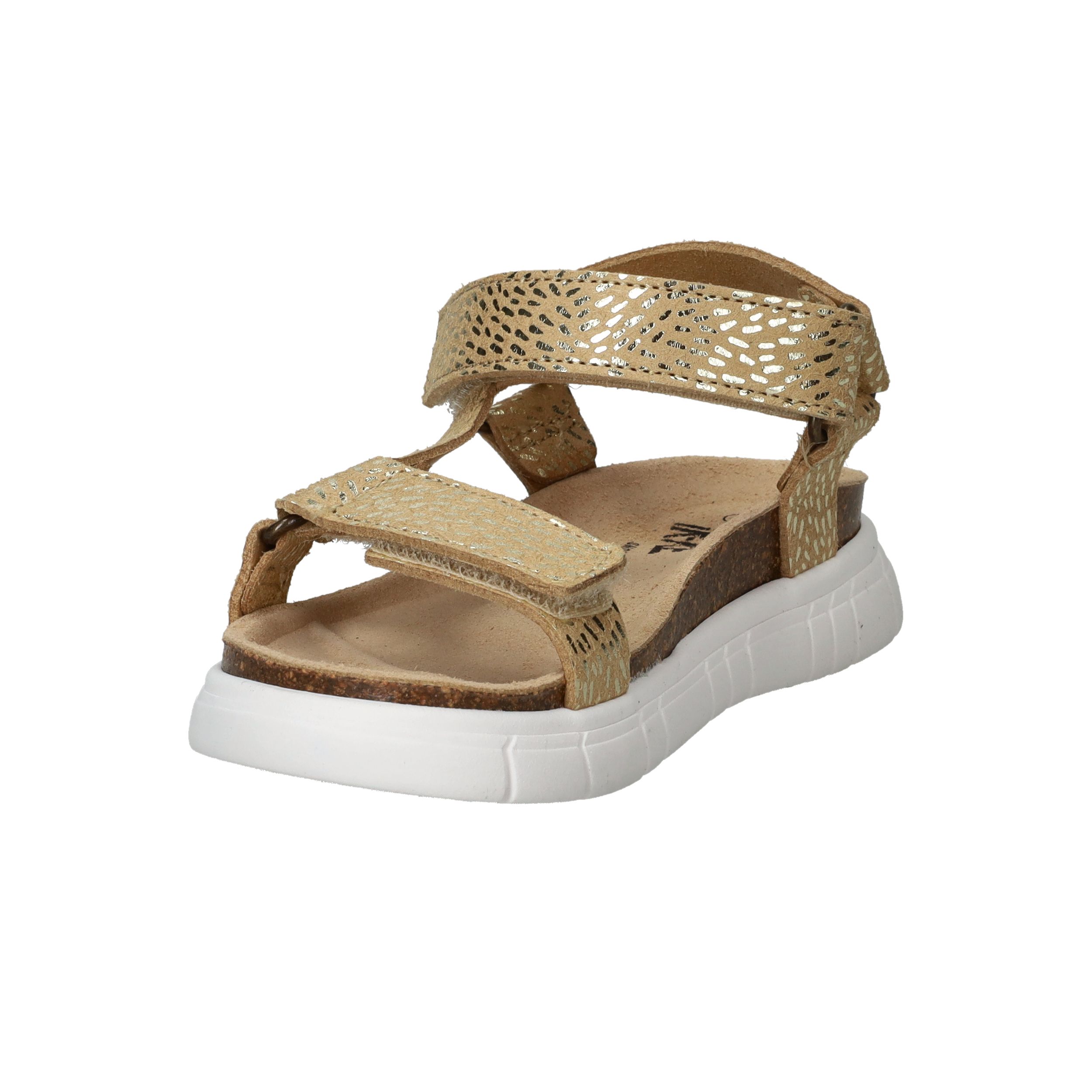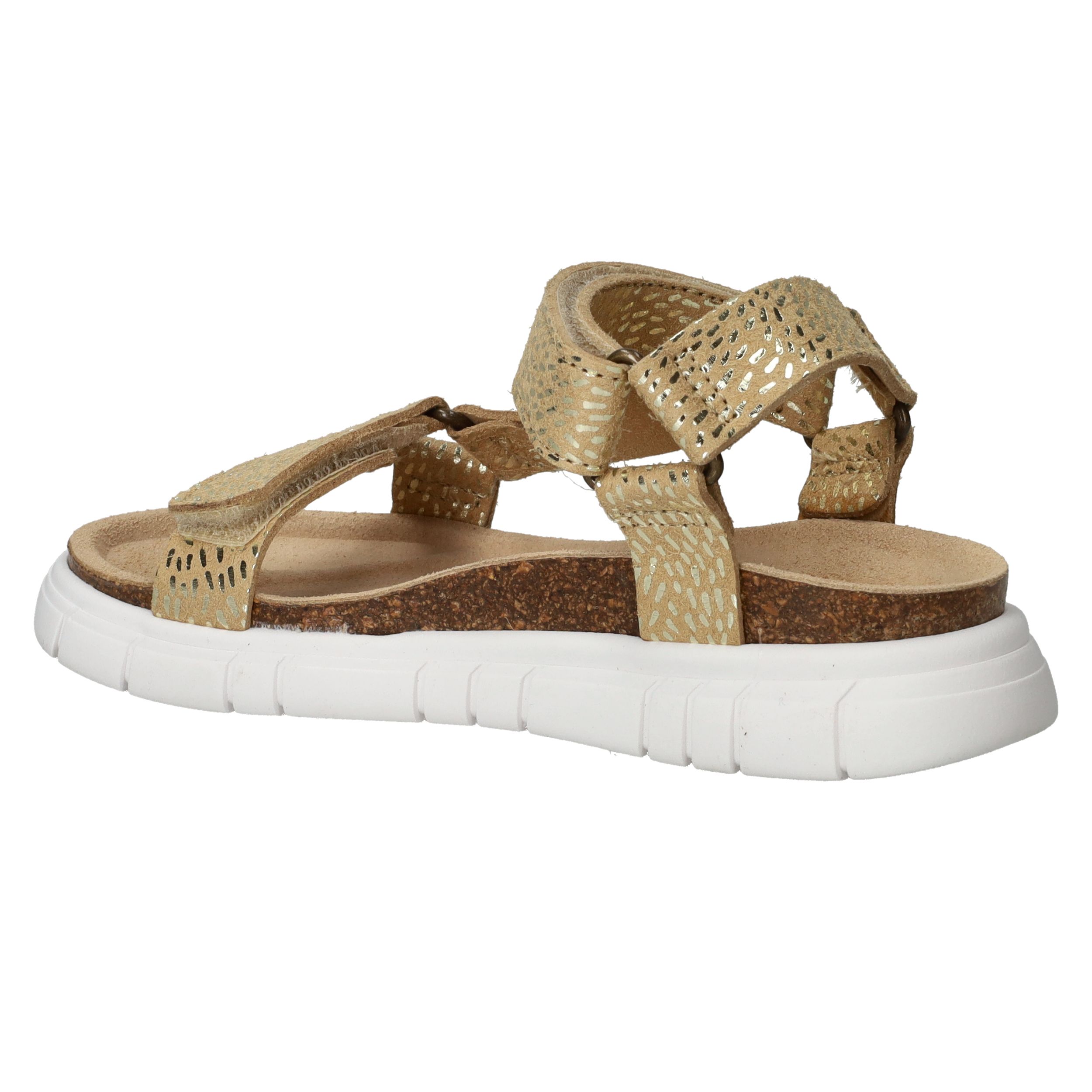 Laat je kleine meid stralen met de IK-KE sandalen. Deze meisjessandalen in een opvallende gouden tint zijn vervaardigd uit suède, wat zorgt voor een comfortabele pasvorm. De sandalen combineren een trendy design met opvallende details, waardoor ze perfect zijn voor actieve meiden. Met deze sandalen loopt je kleine meid niet alleen comfortabel, maar maakt ze ook een fashion statement.
