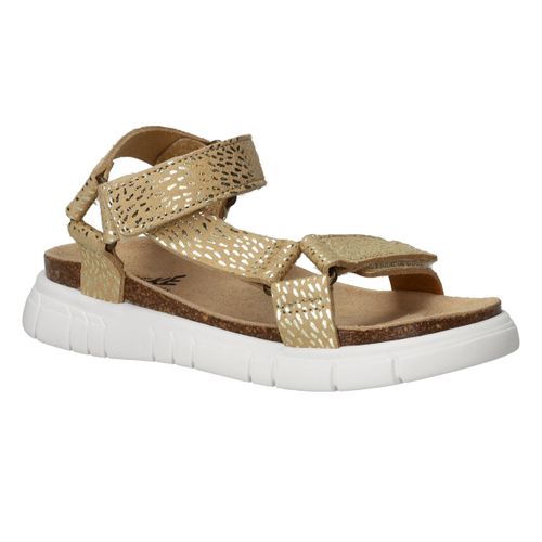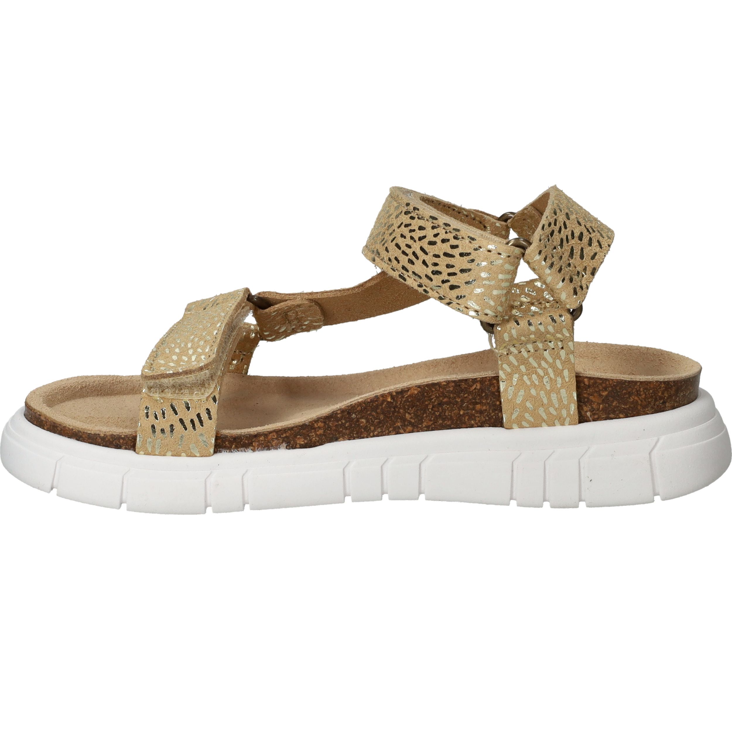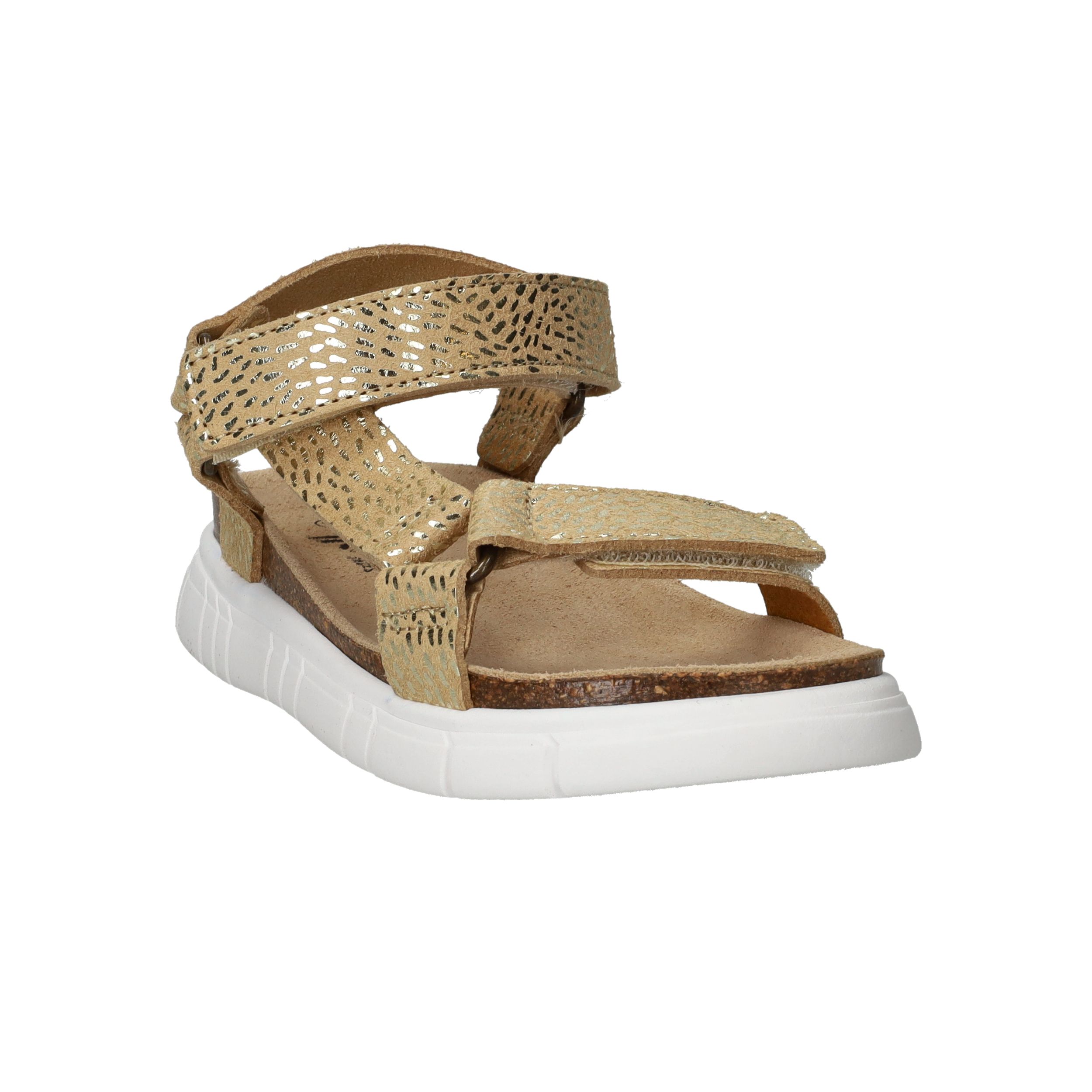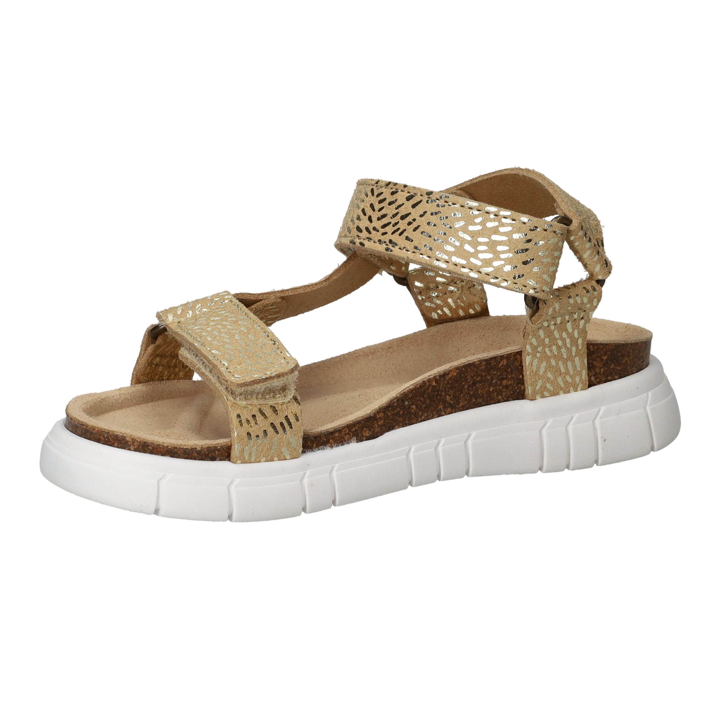 Laat je kleine meid stralen met de IK-KE sandalen. Deze meisjessandalen in een opvallende gouden tint zijn vervaardigd uit suède, wat zorgt voor een comfortabele pasvorm. De sandalen combineren een trendy design met opvallende details, waardoor ze perfect zijn voor actieve meiden. Met deze sandalen loopt je kleine meid niet alleen comfortabel, maar maakt ze ook een fashion statement.