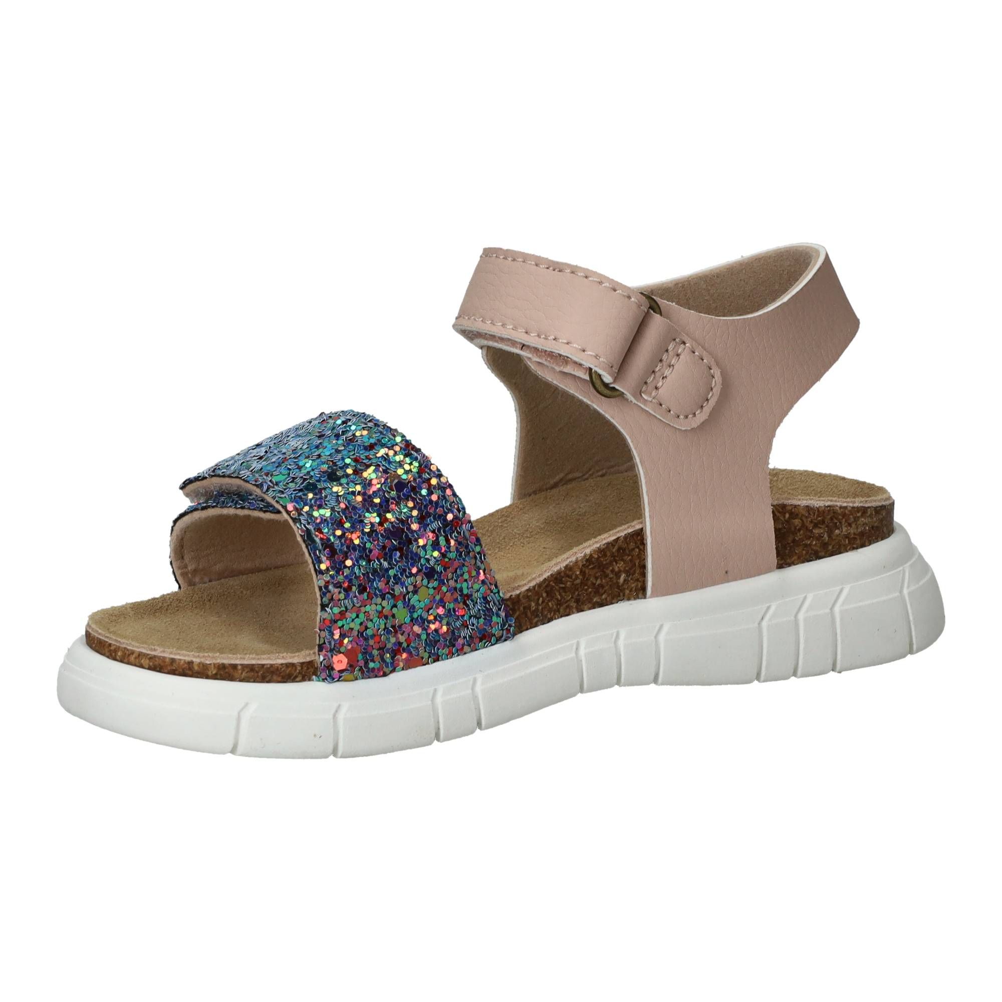 Deze vrolijke meisjes sandalen van IK-KE brengen een glimlach op elk gezicht met hun speelse multi-kleur en glinsterende details. Ze zijn perfect voor zonnige dagen en voegen een feestelijk tintje toe aan elke outfit. Het ontwerp is zowel modieus als praktisch, waardoor ze heerlijk zijn om te dragen tijdens het spelen en ontdekken. De schoen omsluit de voet op een prettige manier en geeft een rustige stabiliteit, wat zorgt voor een comfortabel en zeker loopgevoel gedurende de hele dag.