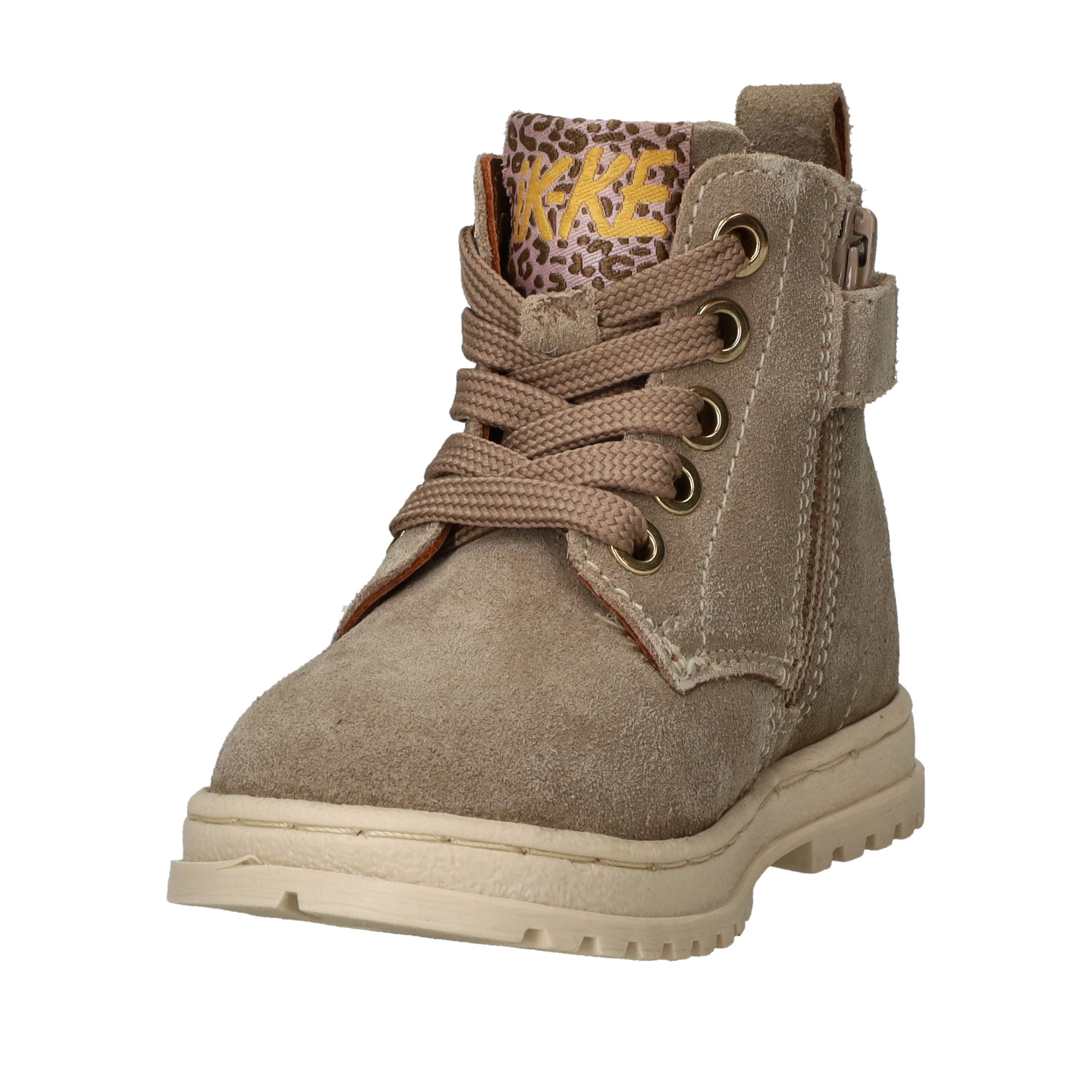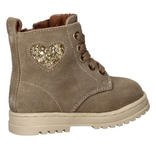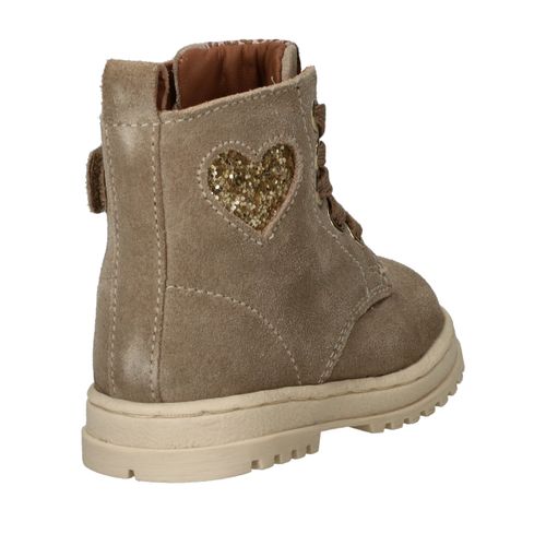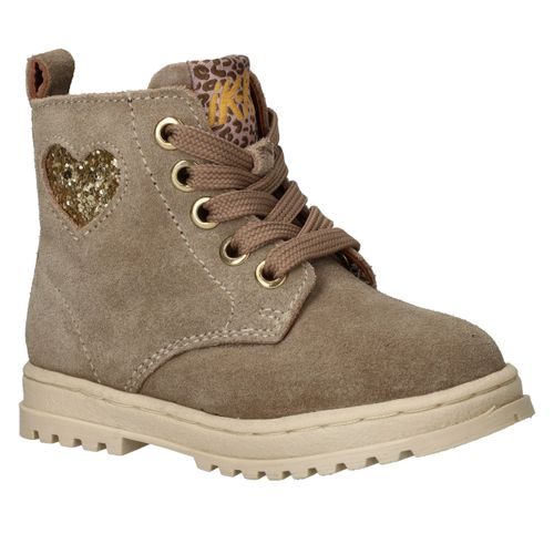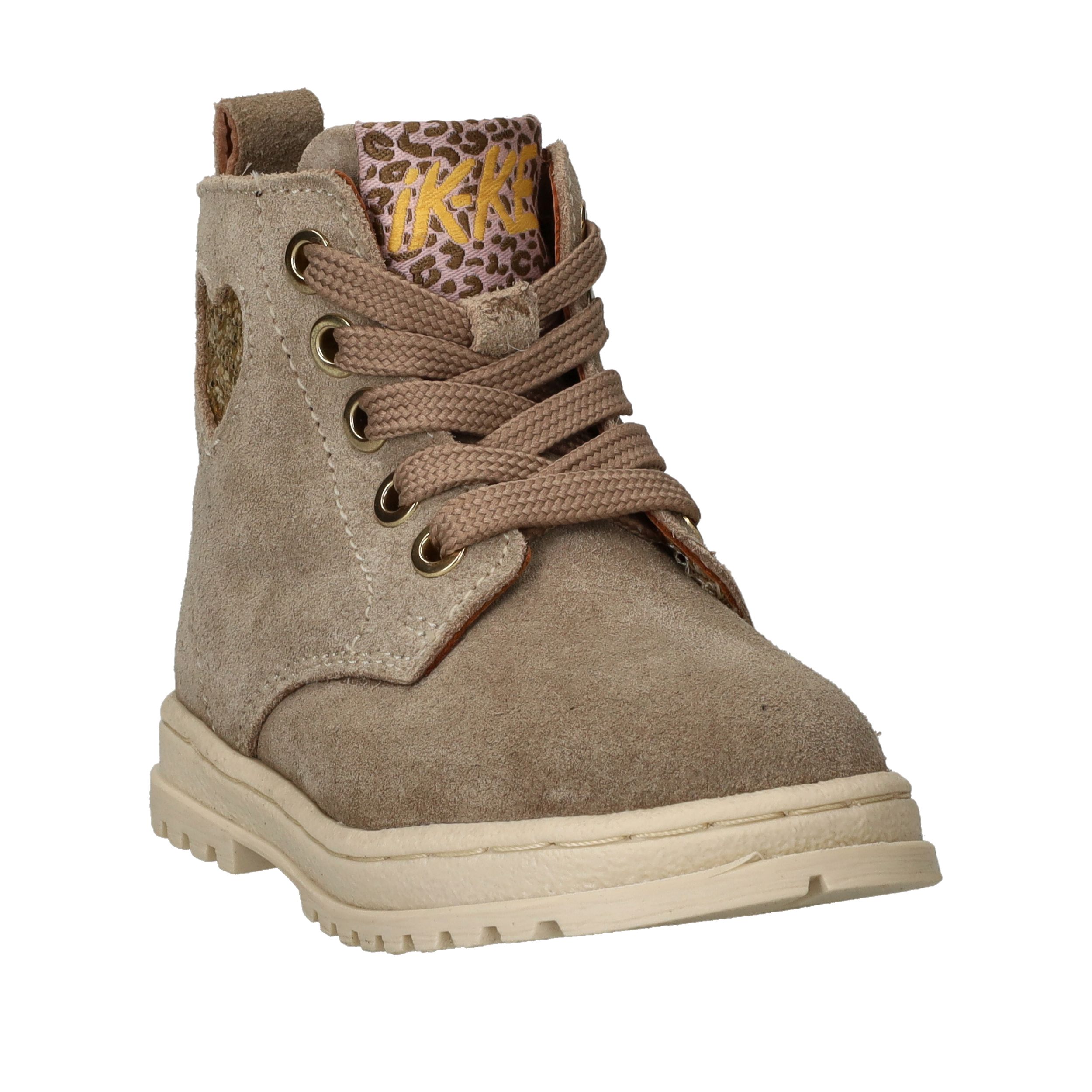 Deze IK-KE veterboot is een perfecte combinatie van stijl en draagcomfort. Uitgevoerd in beige suède met een subtiel gouden hartje aan de zijkant, is deze schoen een echte blikvanger. Dankzij de combinatie van veters en een rits is hij gemakkelijk aan en uit te trekken. Het uitneembare voetbed zorgt voor extra gemak.