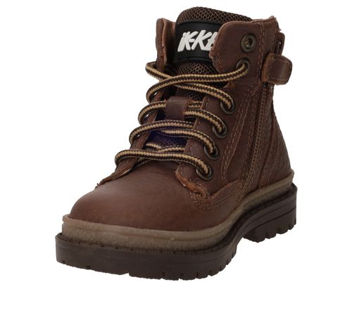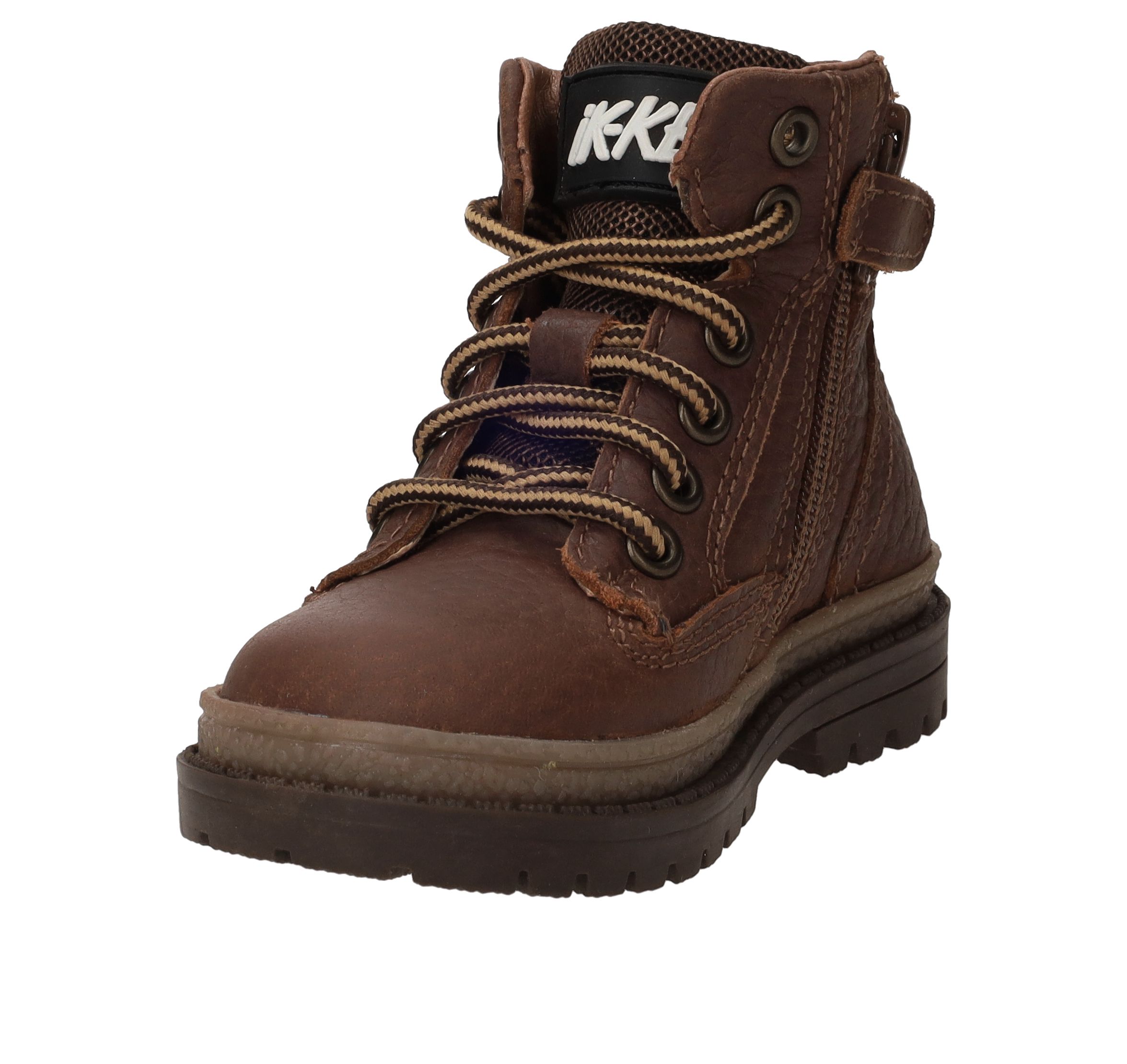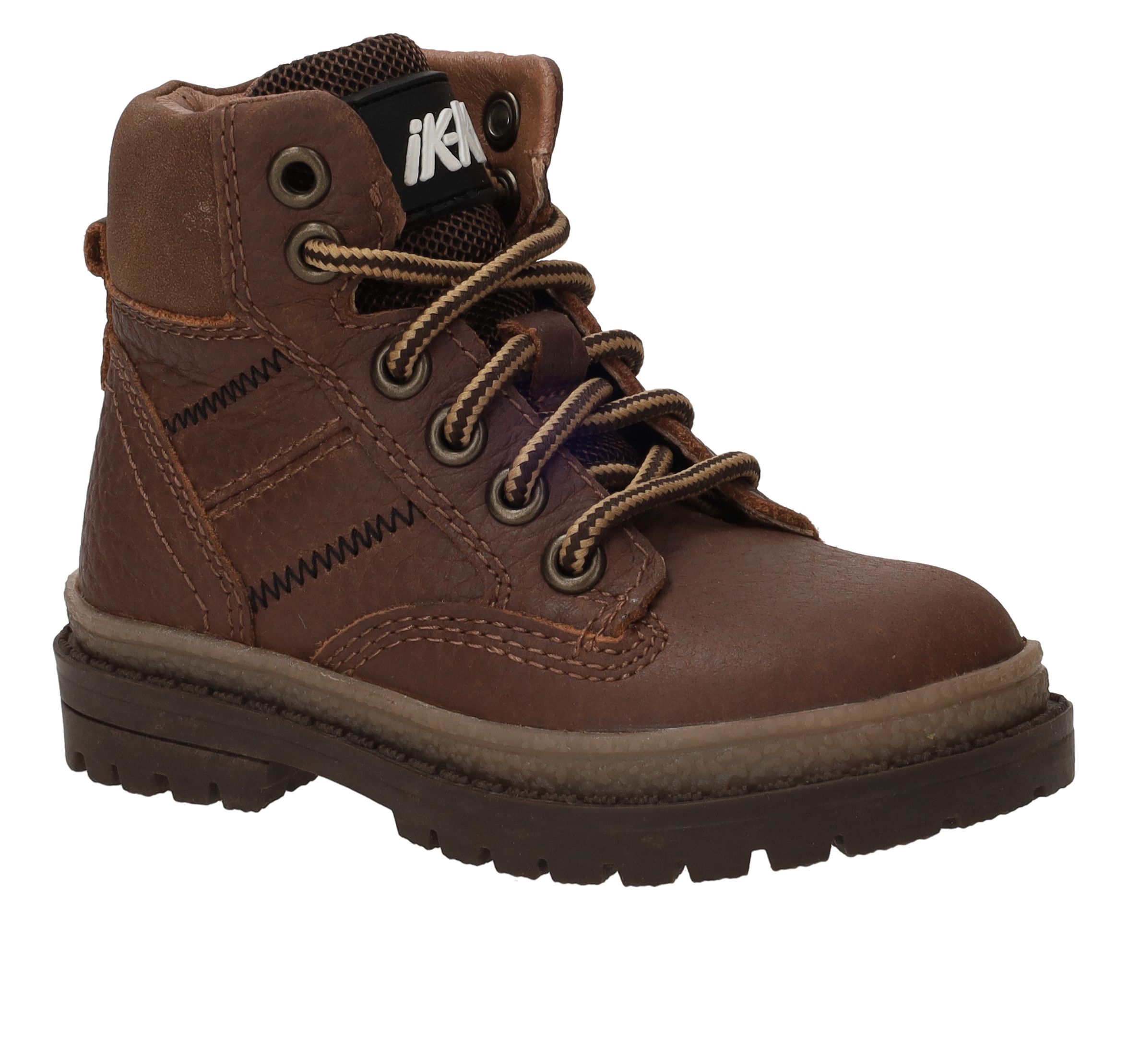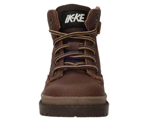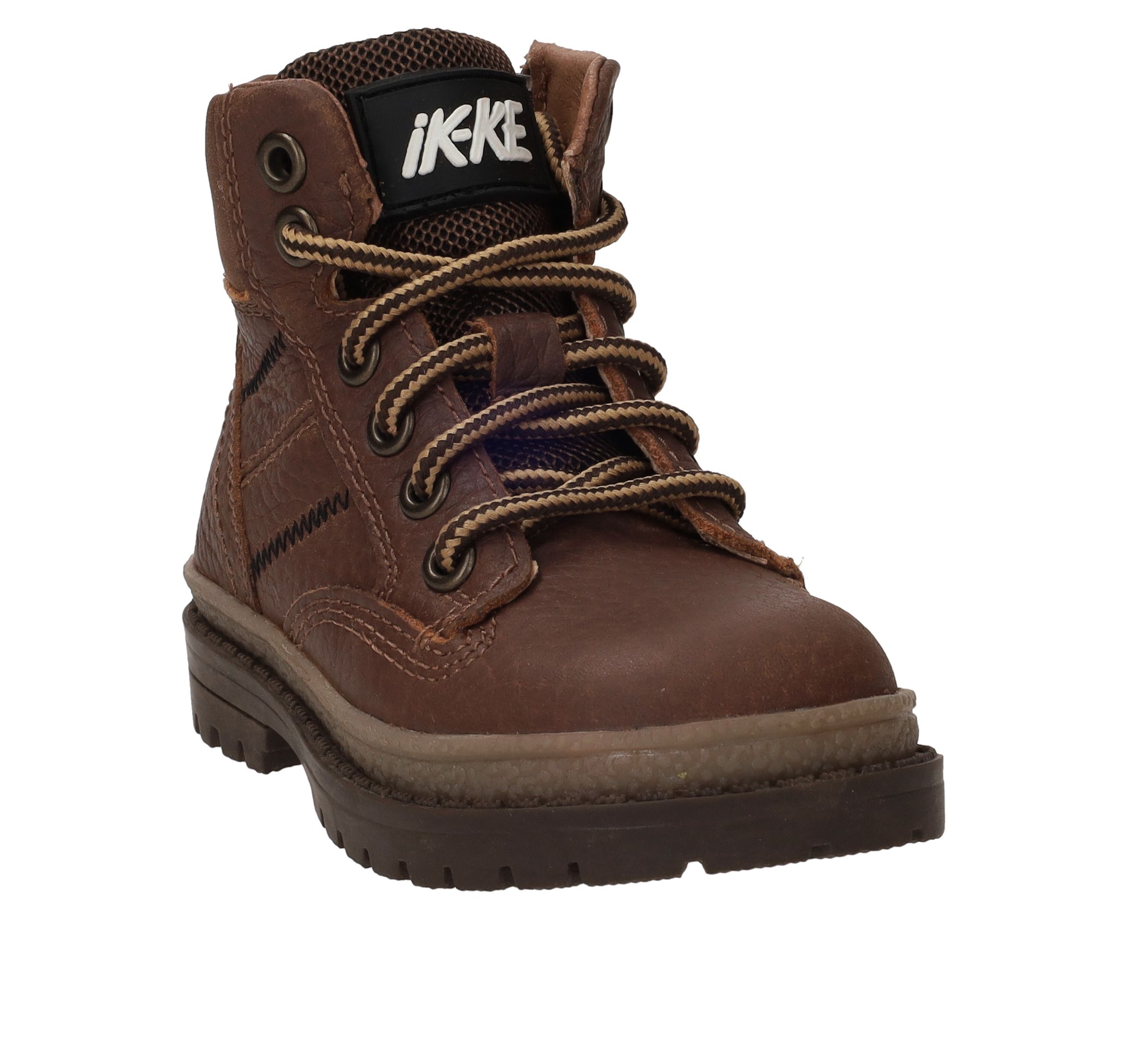 Super stoere IK-KE veterboot voor jongens. De schoen heeft een mooie bruine kleur en is gemaakt van leer. Je kindje trekt de schoen makkelijk aan door de veter- en ritssluiting.
