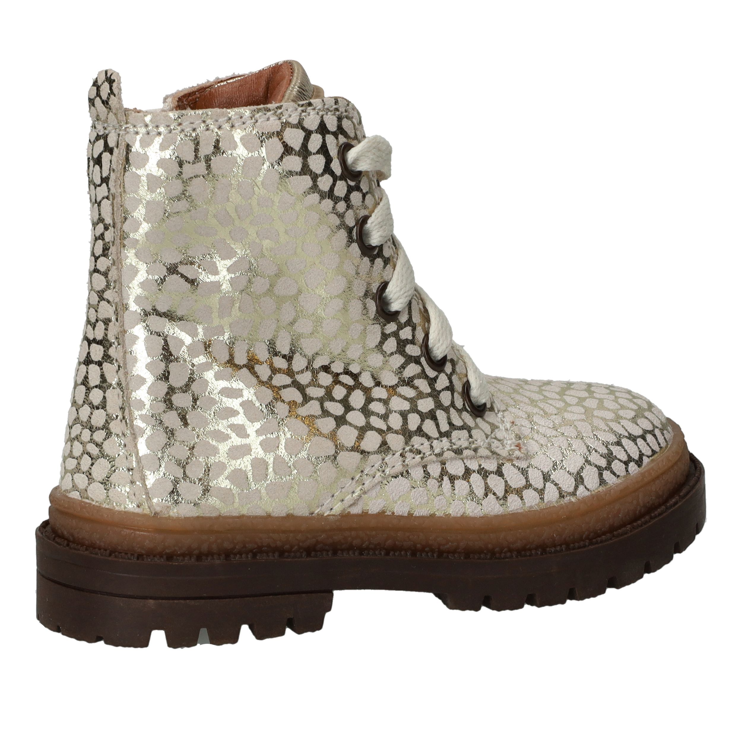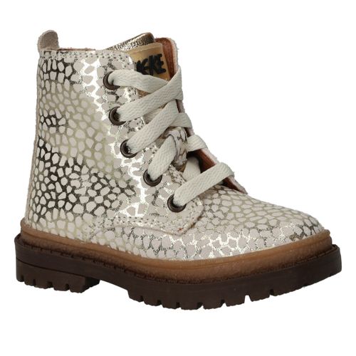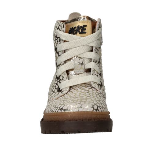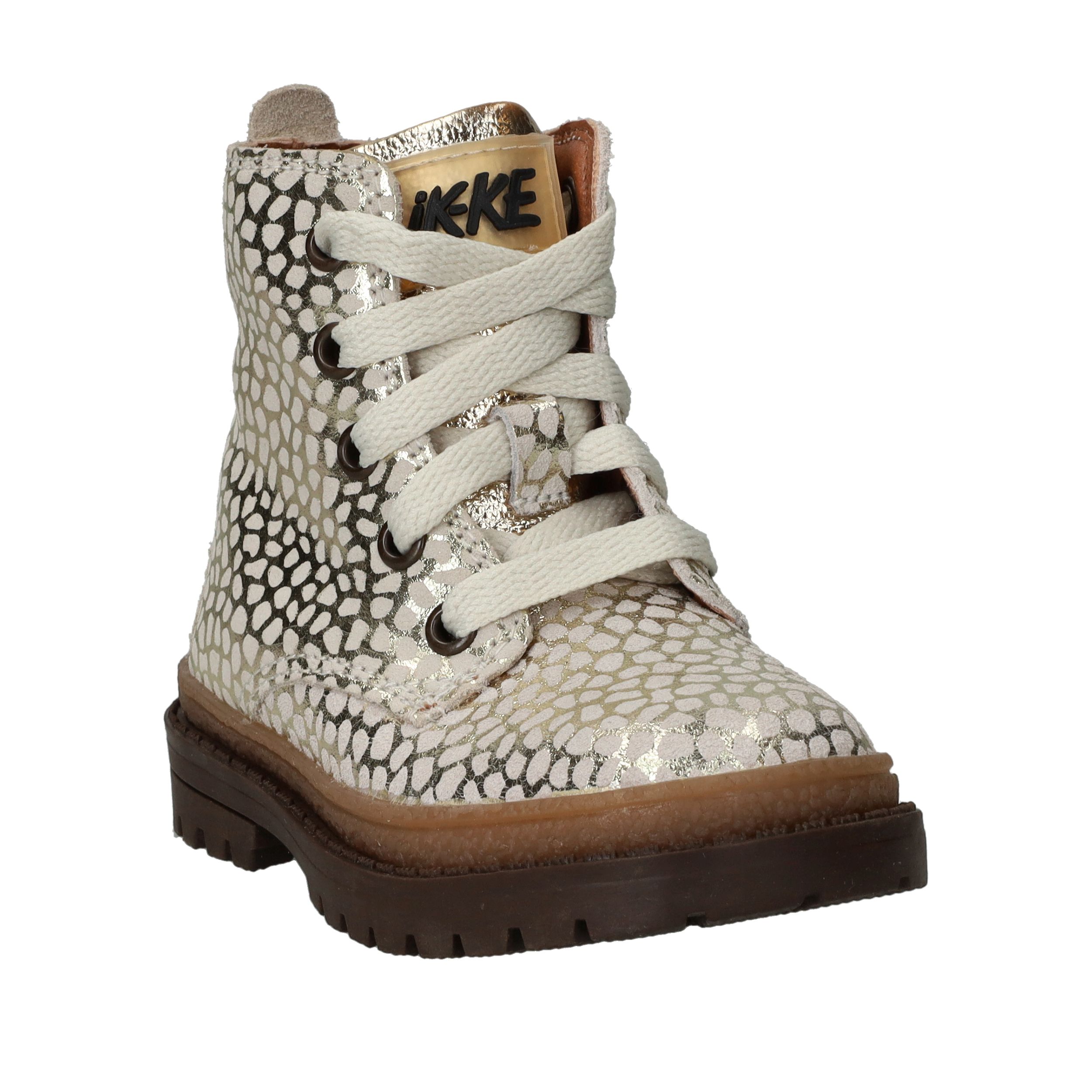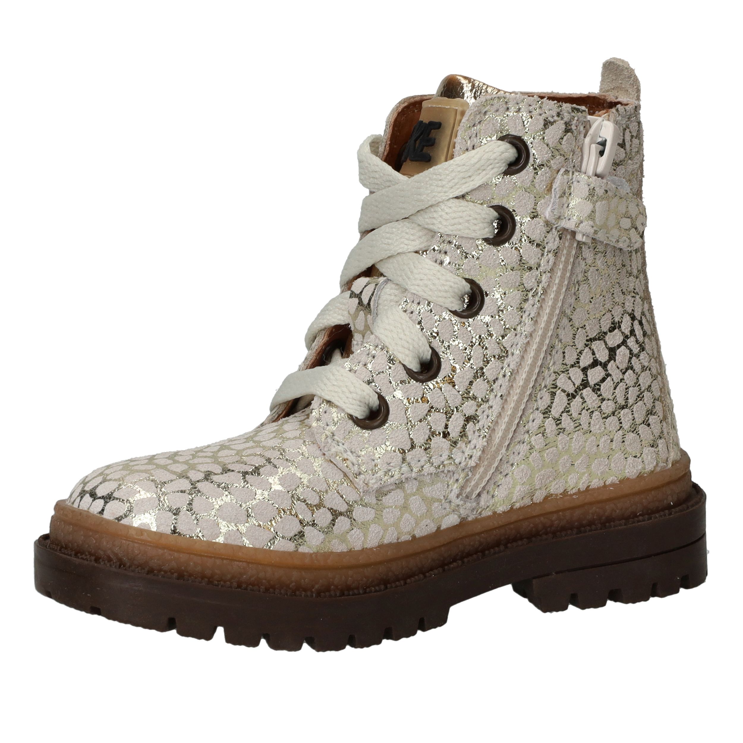 Deze IK-KE veterboot is een echte blikvanger voor stoere meiden. Uitgevoerd in een metallic gouden kleur met subtiele glans, geeft deze schoen iedere outfit een modieuze touch. Dankzij de combinatie van veters en rits trek je de schoen gemakkelijk aan en uit. Het uitneembare voetbed zorgt voor extra comfort en de mogelijkheid om je eigen inlegzolen te gebruiken.