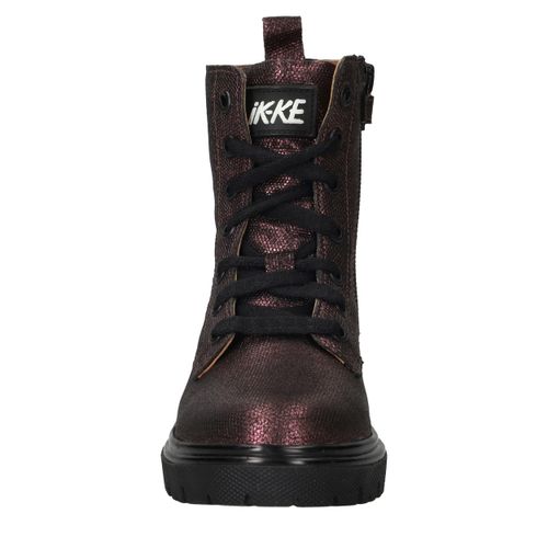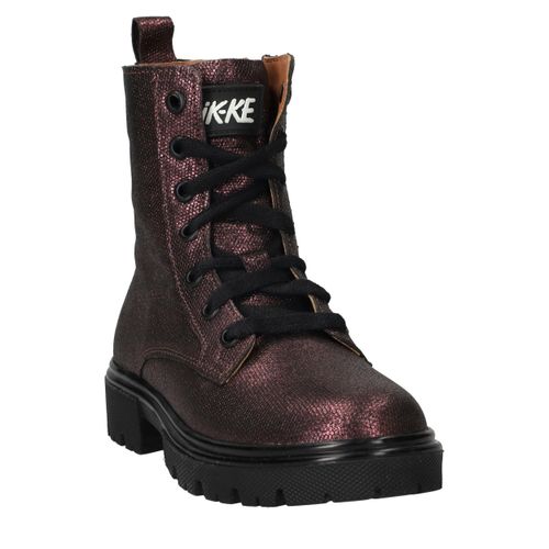De IK-KE veterboot is een trendy en comfortabele kinderschoen. Uitgevoerd in een opvallende metallic paarse kleur, is deze veterboot een echte blikvanger. Dankzij de combinatie van een veter- en ritssluiting is hij gemakkelijk aan en uit te trekken, terwijl de stevige zool voor veel draagcomfort zorgt. Het gebruik van leer en textiel zorgt voor een duurzame kwaliteit en een modieuze uitstraling.
