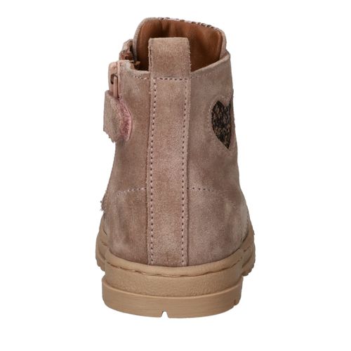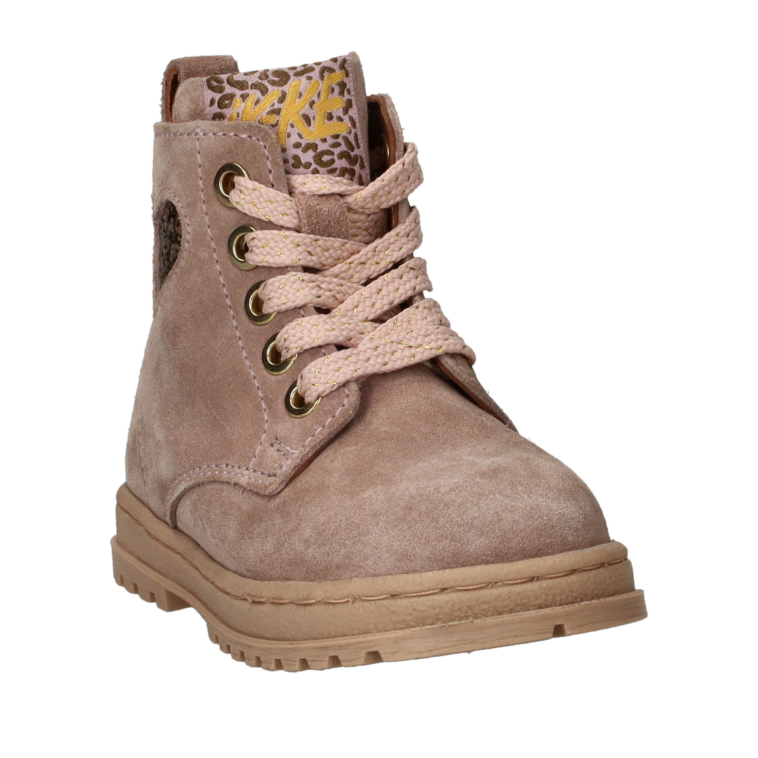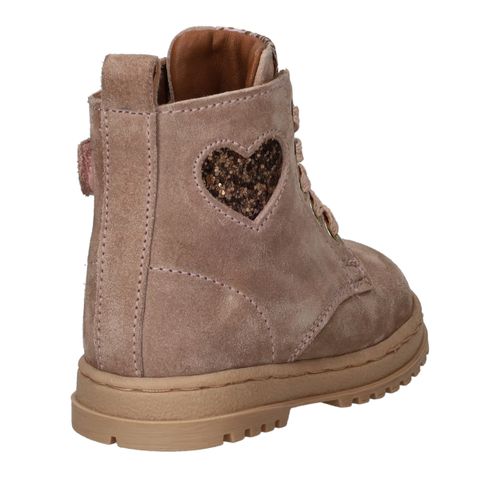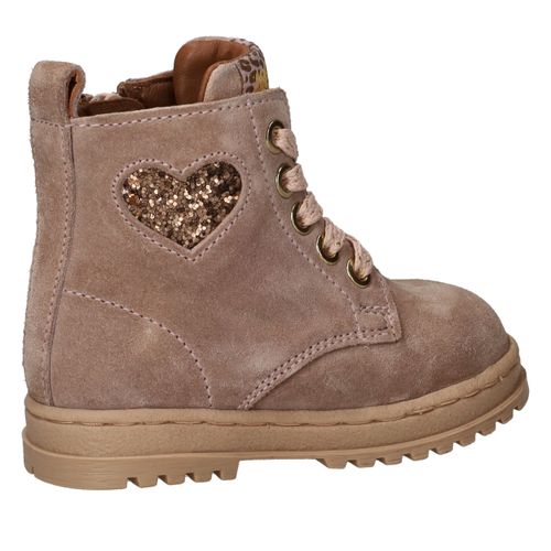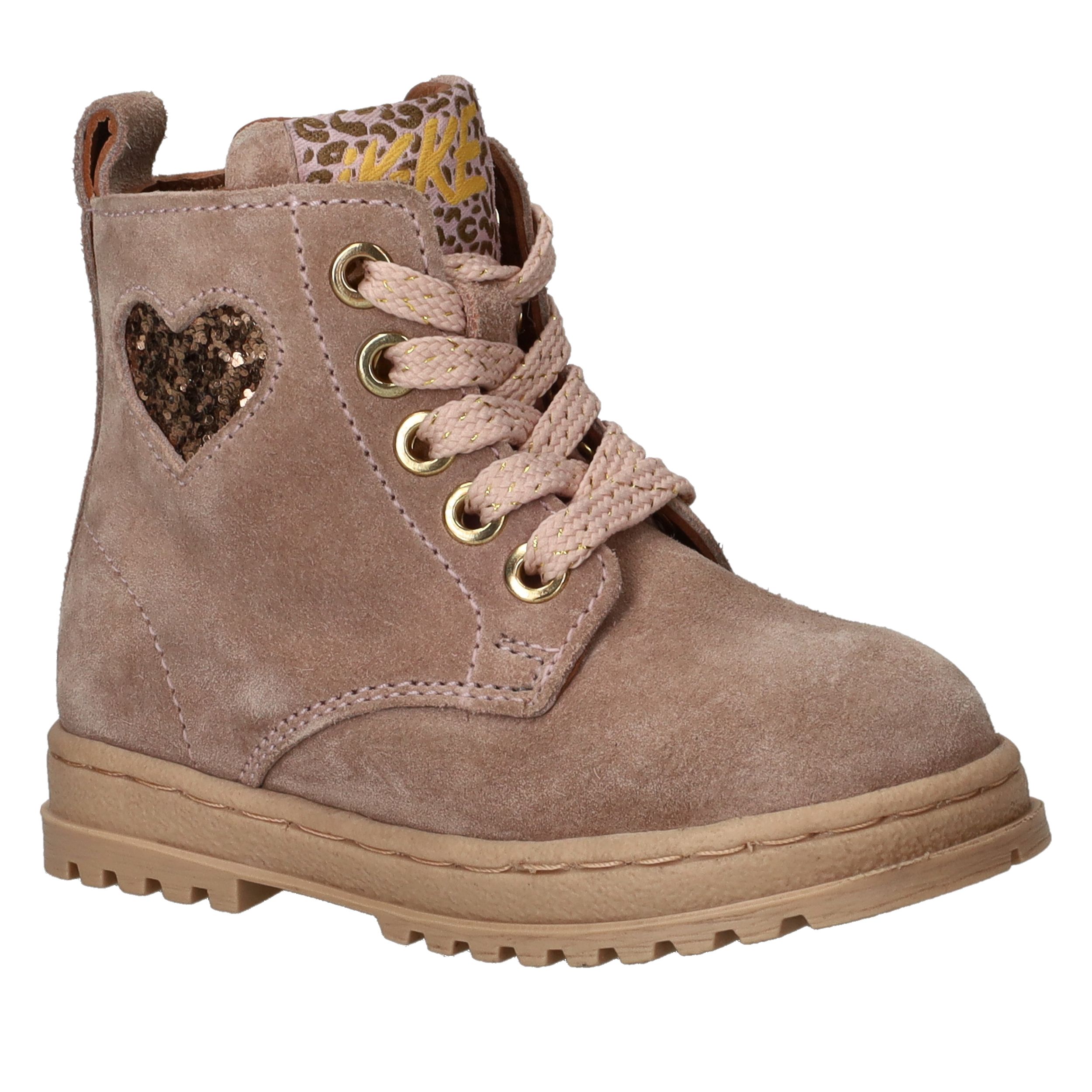 Deze schattige IK-KE veterboot voor meiden combineert stoer en lief in één ontwerp. De buitenkant is volledig gemaakt van suède, wat de laars een zachte en luxueuze uitstraling geeft. De voering van leer zorgt ervoor dat de schoen ademend is en veel draagcomfort biedt, ideaal voor dagelijks gebruik. Het opvallende hartdetail op de zijkant maakt deze laars extra speels en uniek, waardoor hij perfect is voor meiden die van een vleugje glitter en glamour houden.