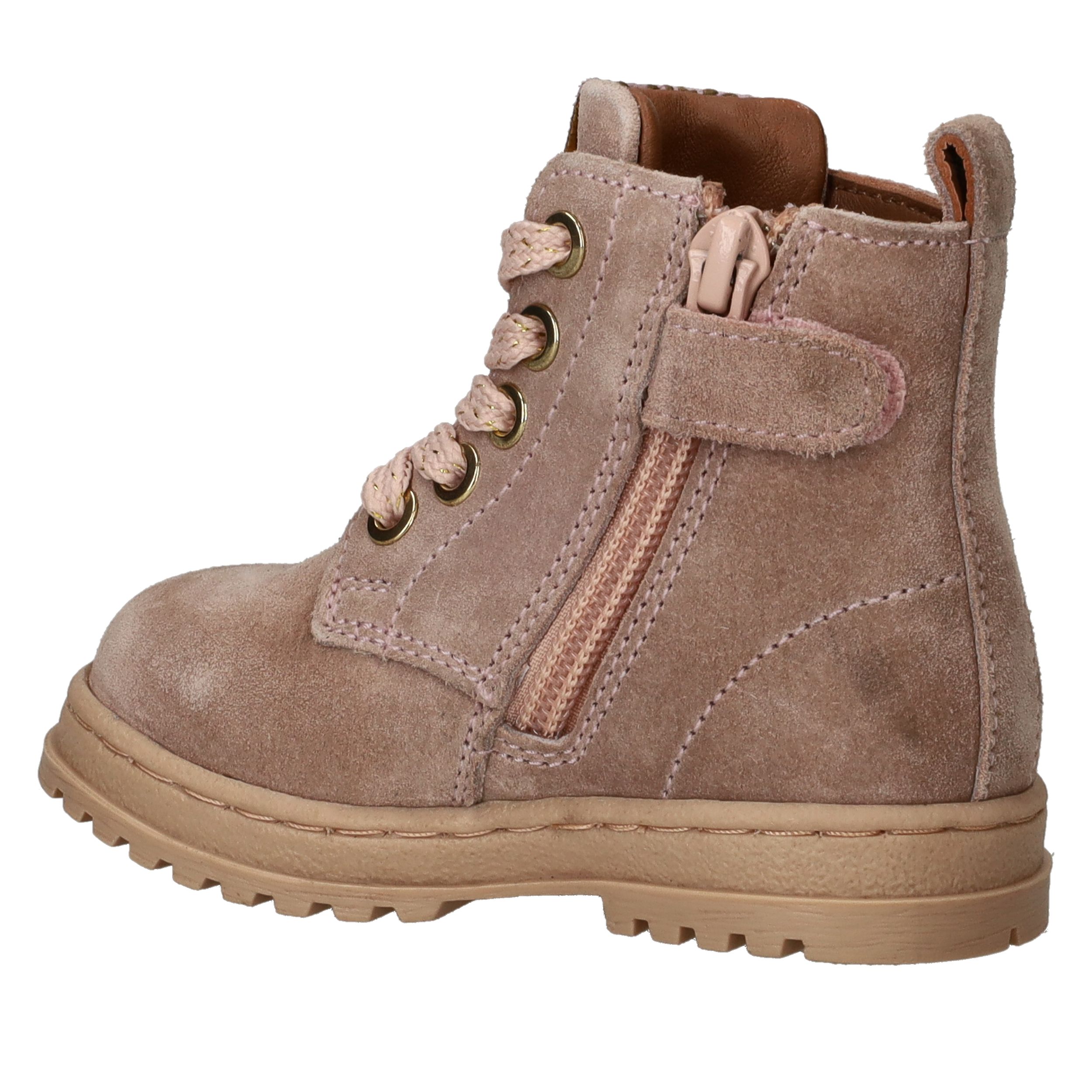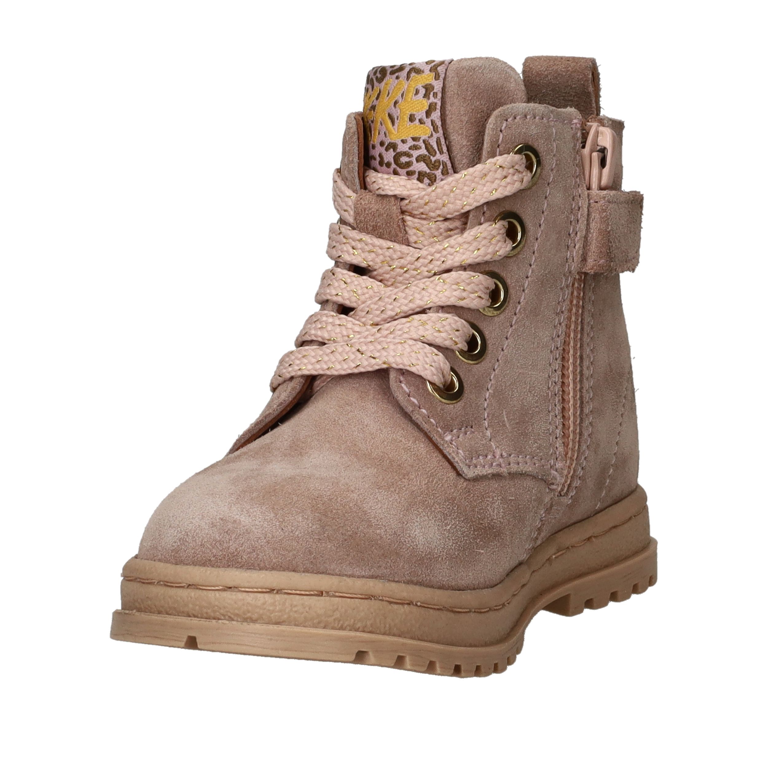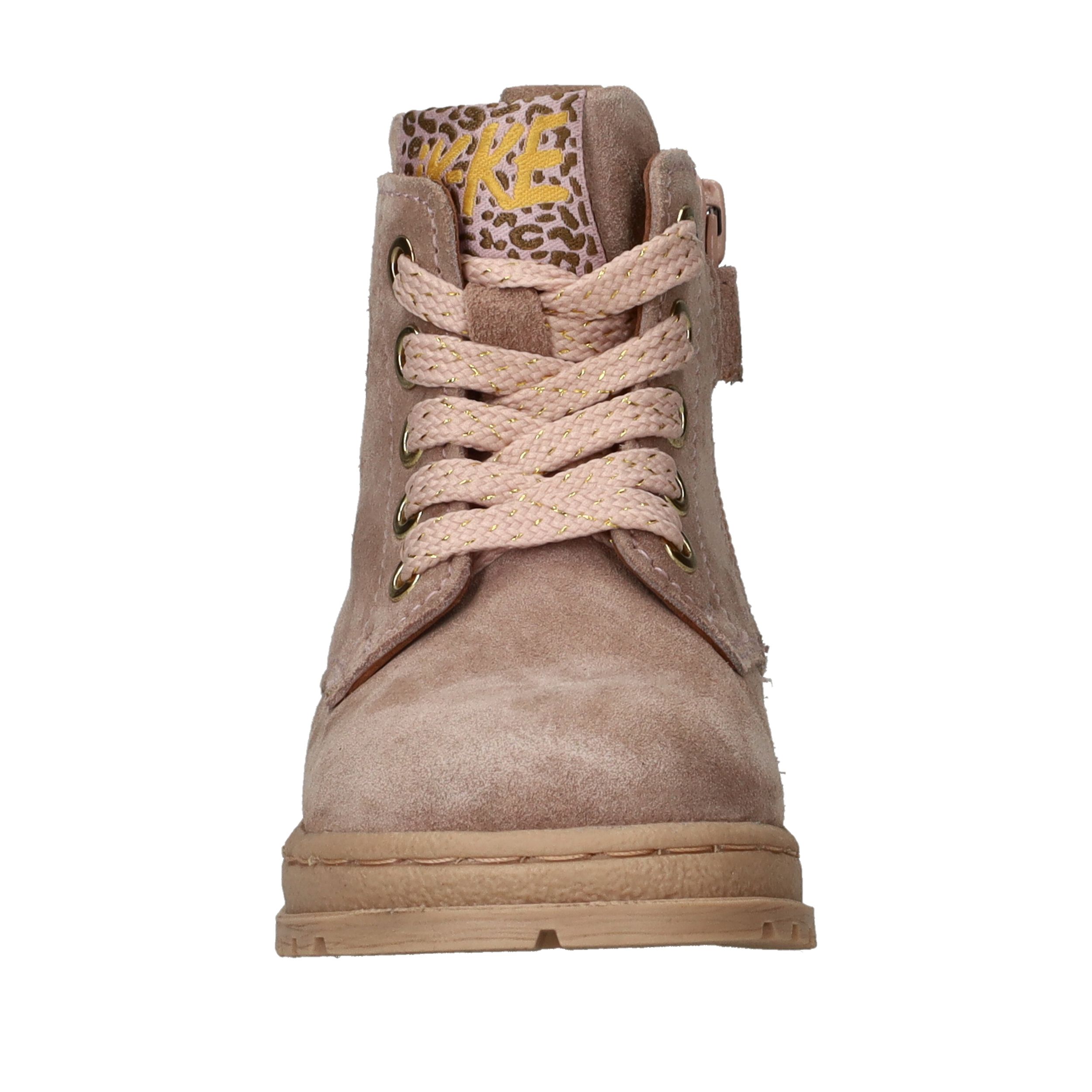Deze schattige IK-KE veterboot voor meiden combineert stoer en lief in één ontwerp. De buitenkant is volledig gemaakt van suède, wat de laars een zachte en luxueuze uitstraling geeft. De voering van leer zorgt ervoor dat de schoen ademend is en veel draagcomfort biedt, ideaal voor dagelijks gebruik. Het opvallende hartdetail op de zijkant maakt deze laars extra speels en uniek, waardoor hij perfect is voor meiden die van een vleugje glitter en glamour houden.