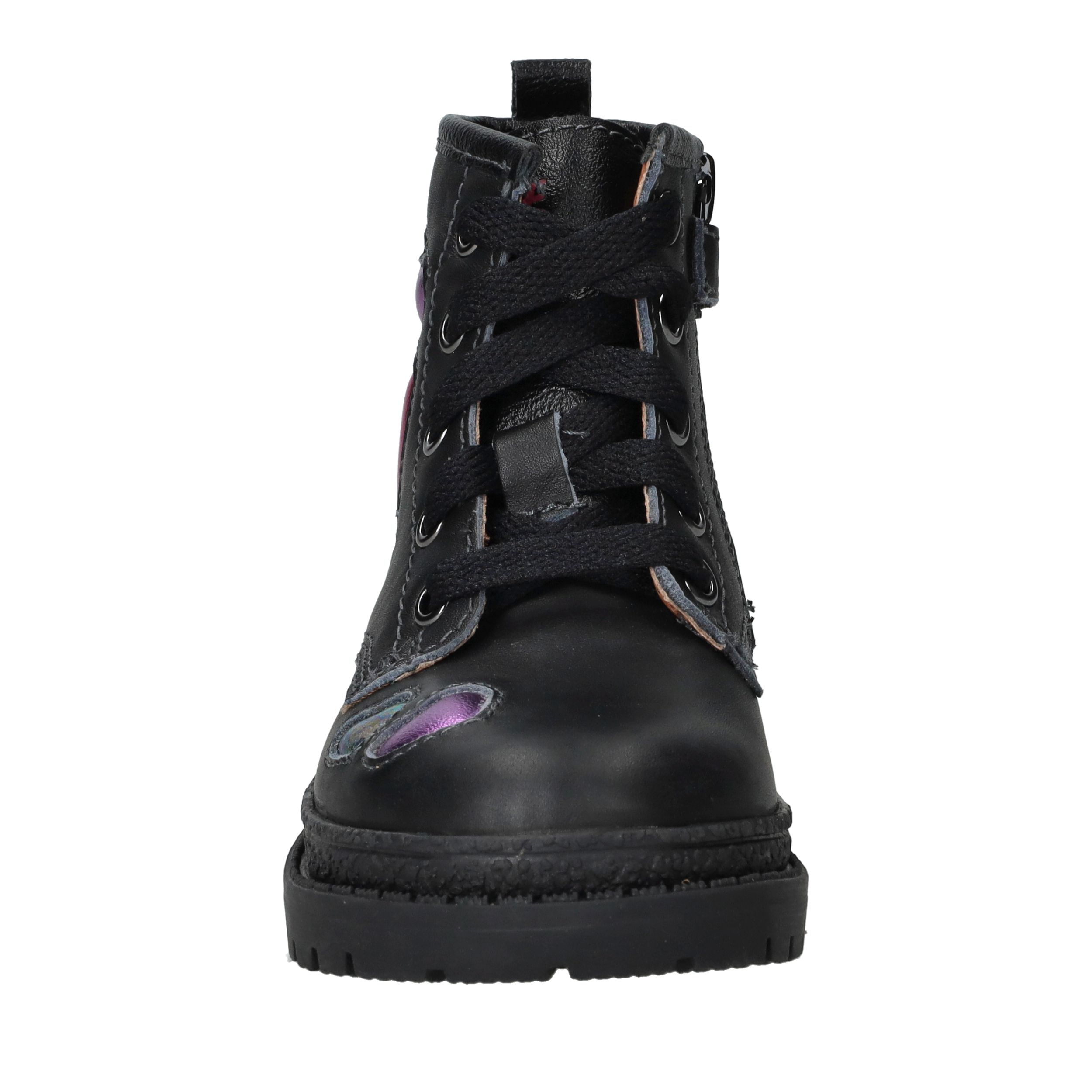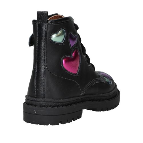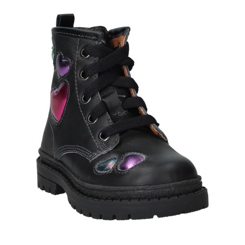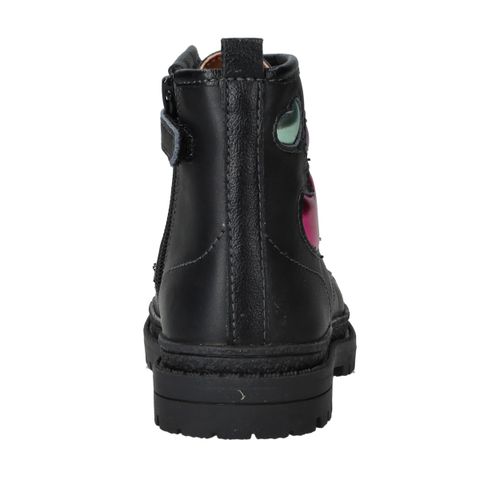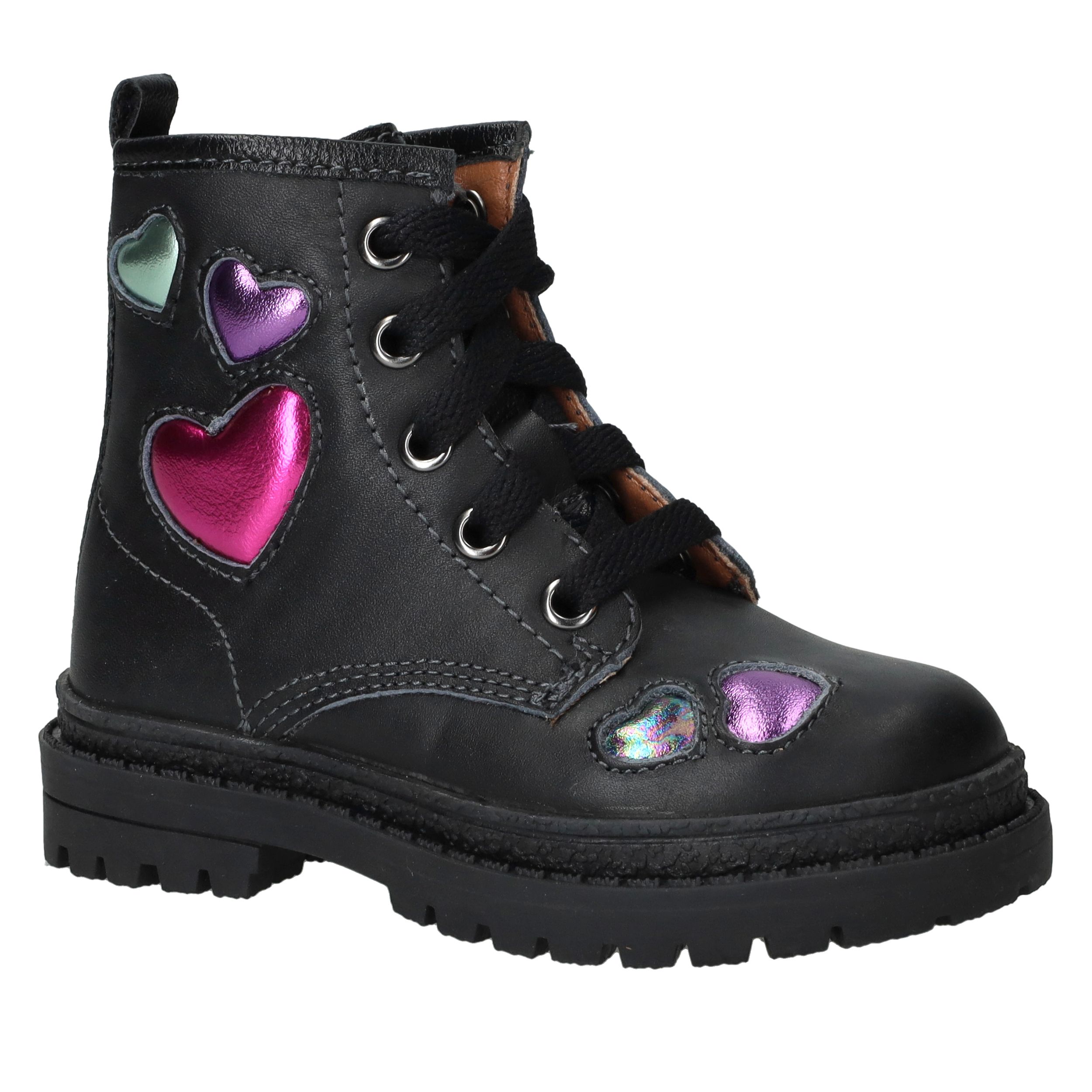 Deze vrolijke veterboots van IK-KE zijn een echte eyecatcher dankzij de kleurrijke hartjes op het zwarte leer. De combinatie van leer en synthetisch materiaal zorgt voor stevigheid en speelsheid in één. Met een comfortabele binnenvoering van leer en synthetisch materiaal zijn ze ideaal voor dagelijks gebruik. Perfect voor kleine avonturiers met een groot hart!
