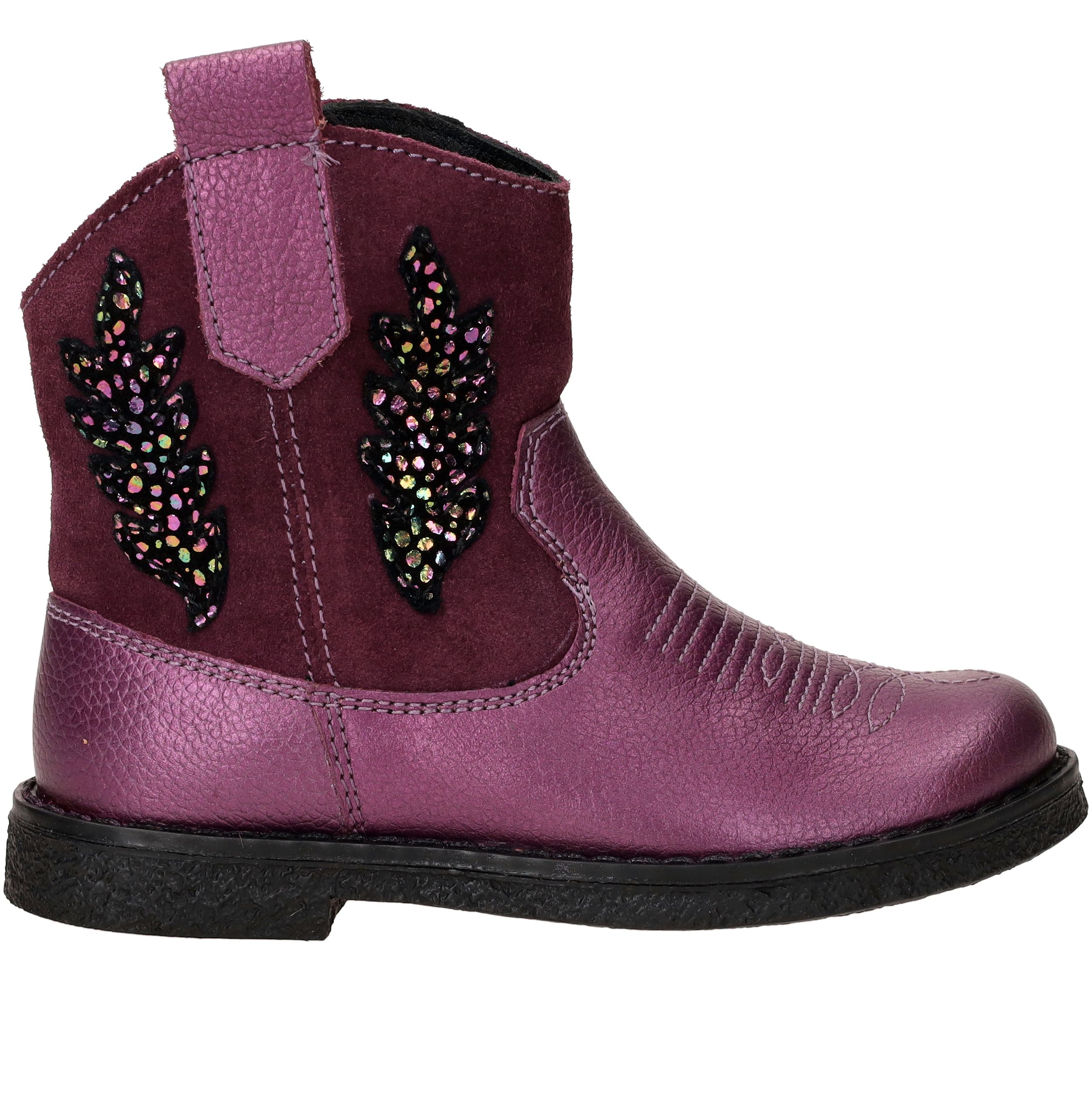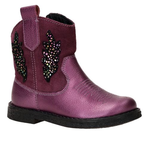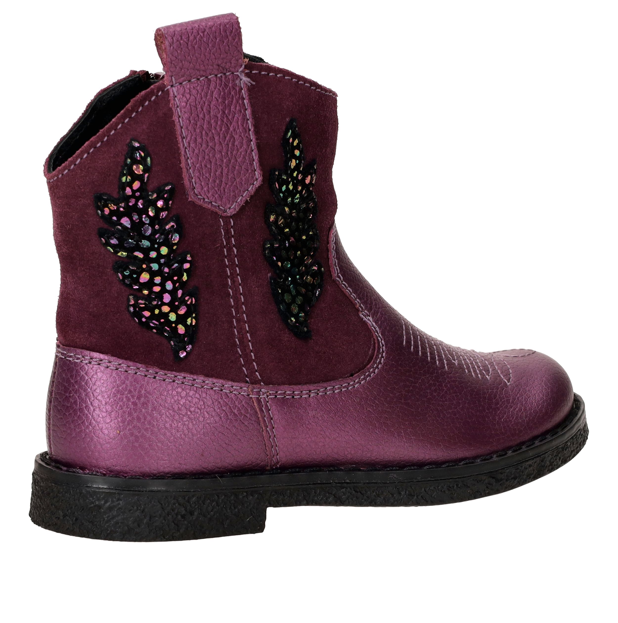 Flitsende metallic paarse westernboot van IK-KE! De meidenboot is gemaakt van leer en is afgewerkt met leuke details.