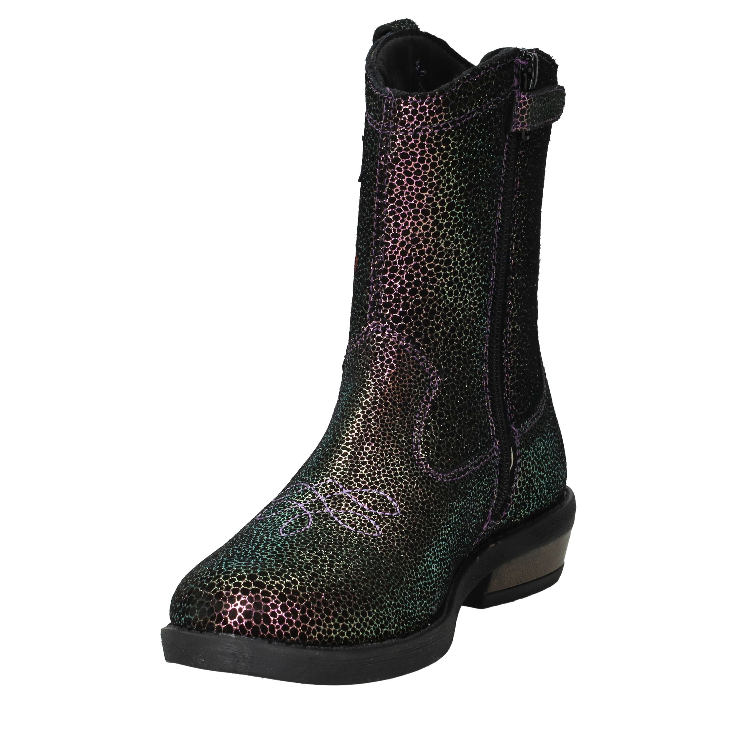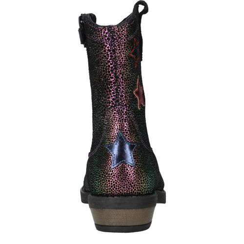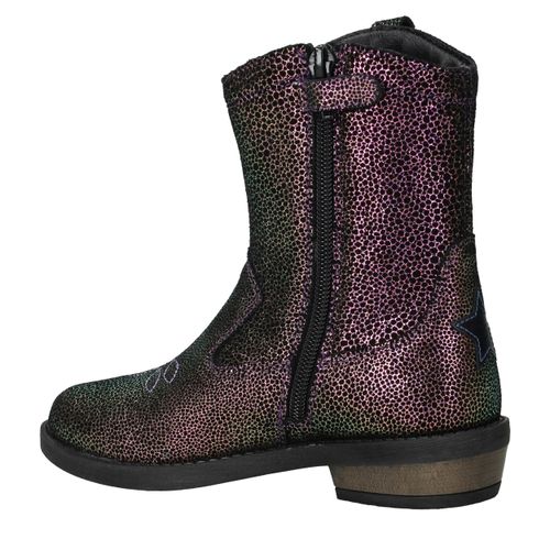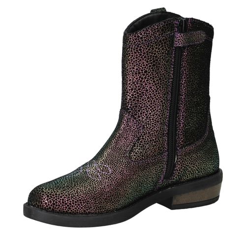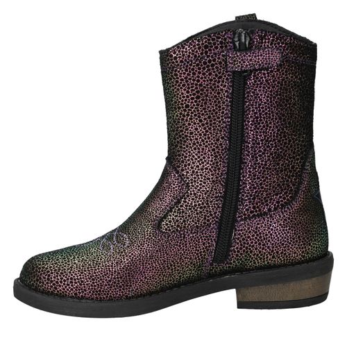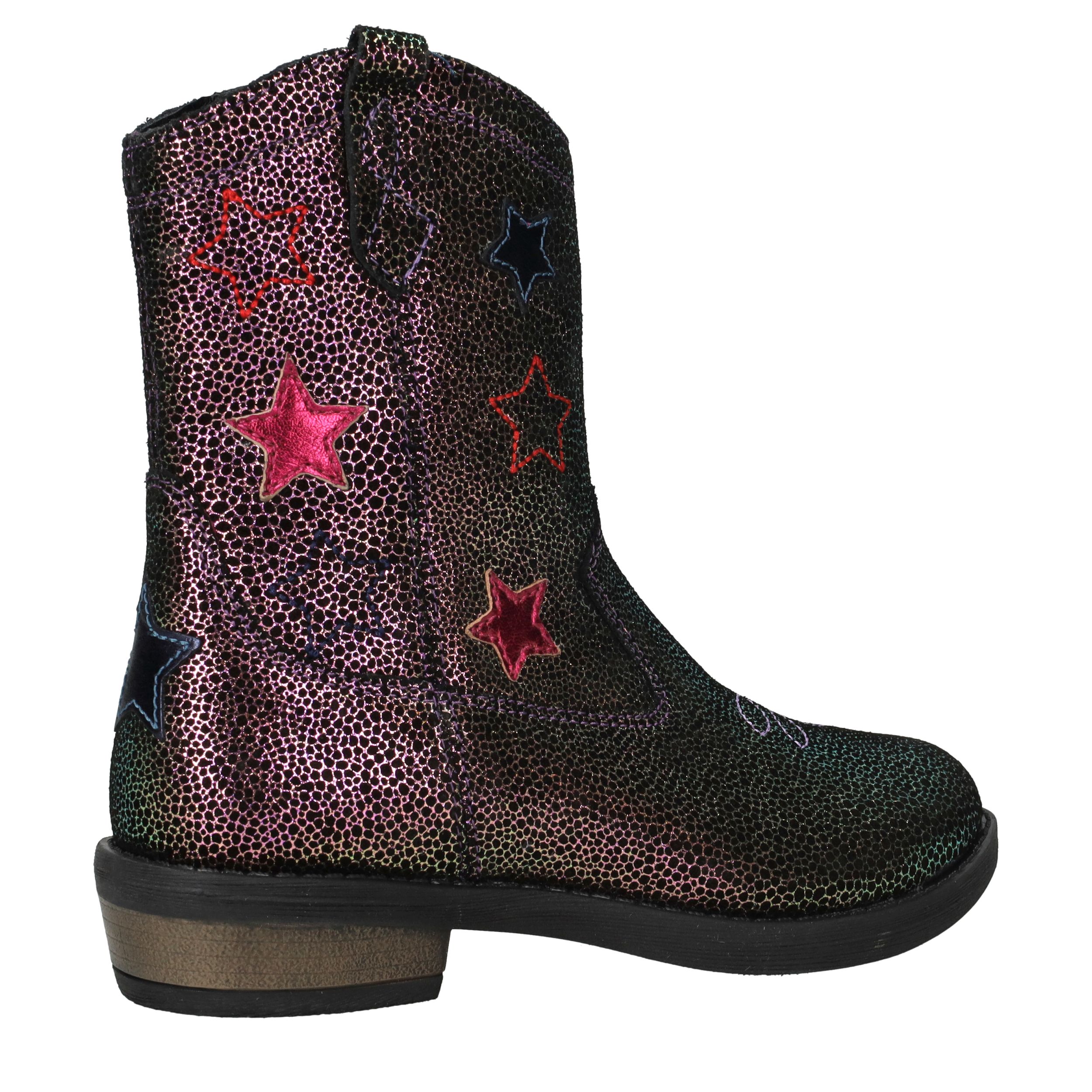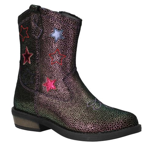 Dit IK-KE western laarsje voor meiden is een echte eyecatcher dankzij het metallic leer en de kleurrijke sterrenapplicaties. Het laarsje heeft een stevige zool en een handige ritssluiting, waardoor hij eenvoudig aan en uit te trekken is. Dankzij het uitneembare voetbed is hij ook geschikt voor eigen inlegzolen, en de leren en textielen voering zorgt voor comfort en duurzaamheid.