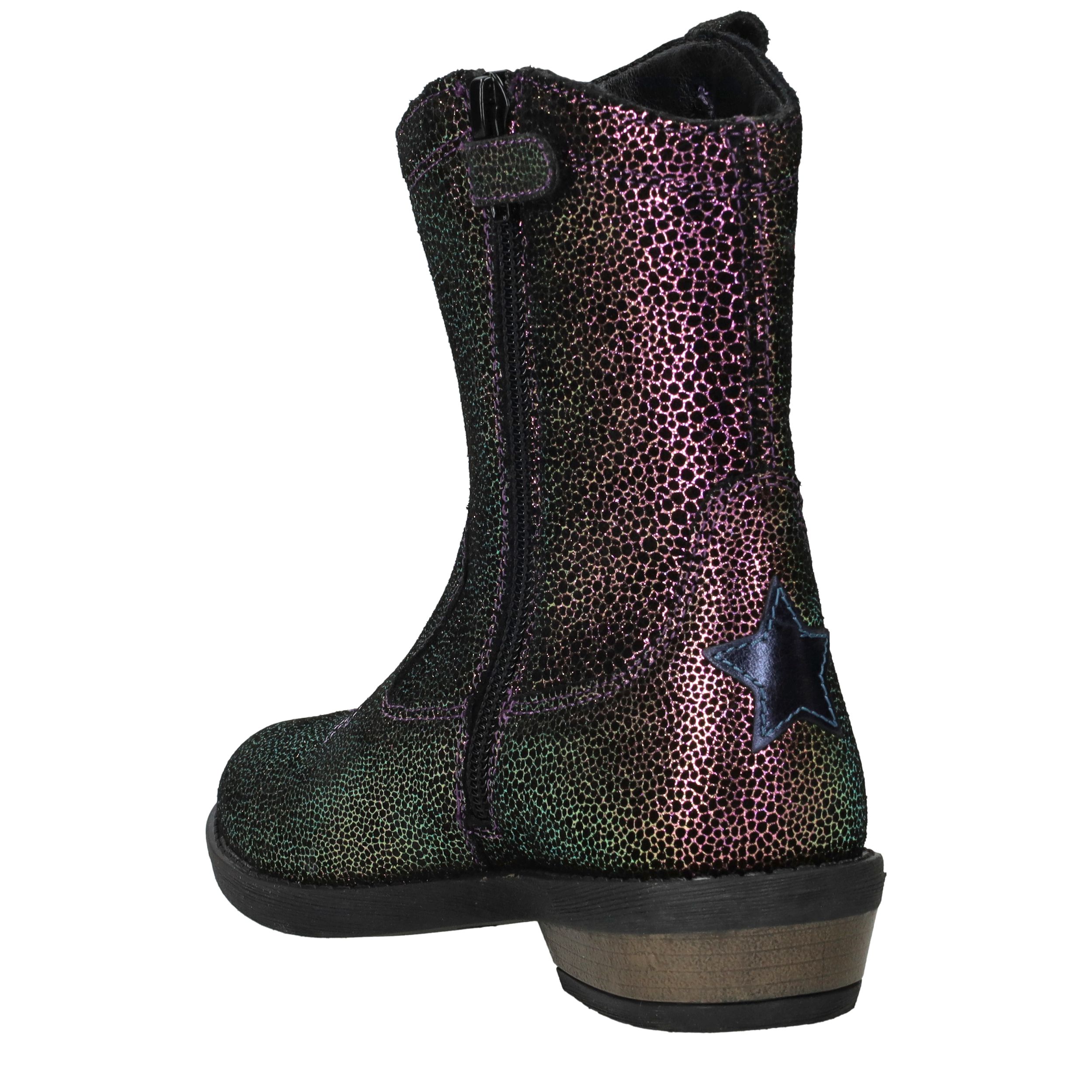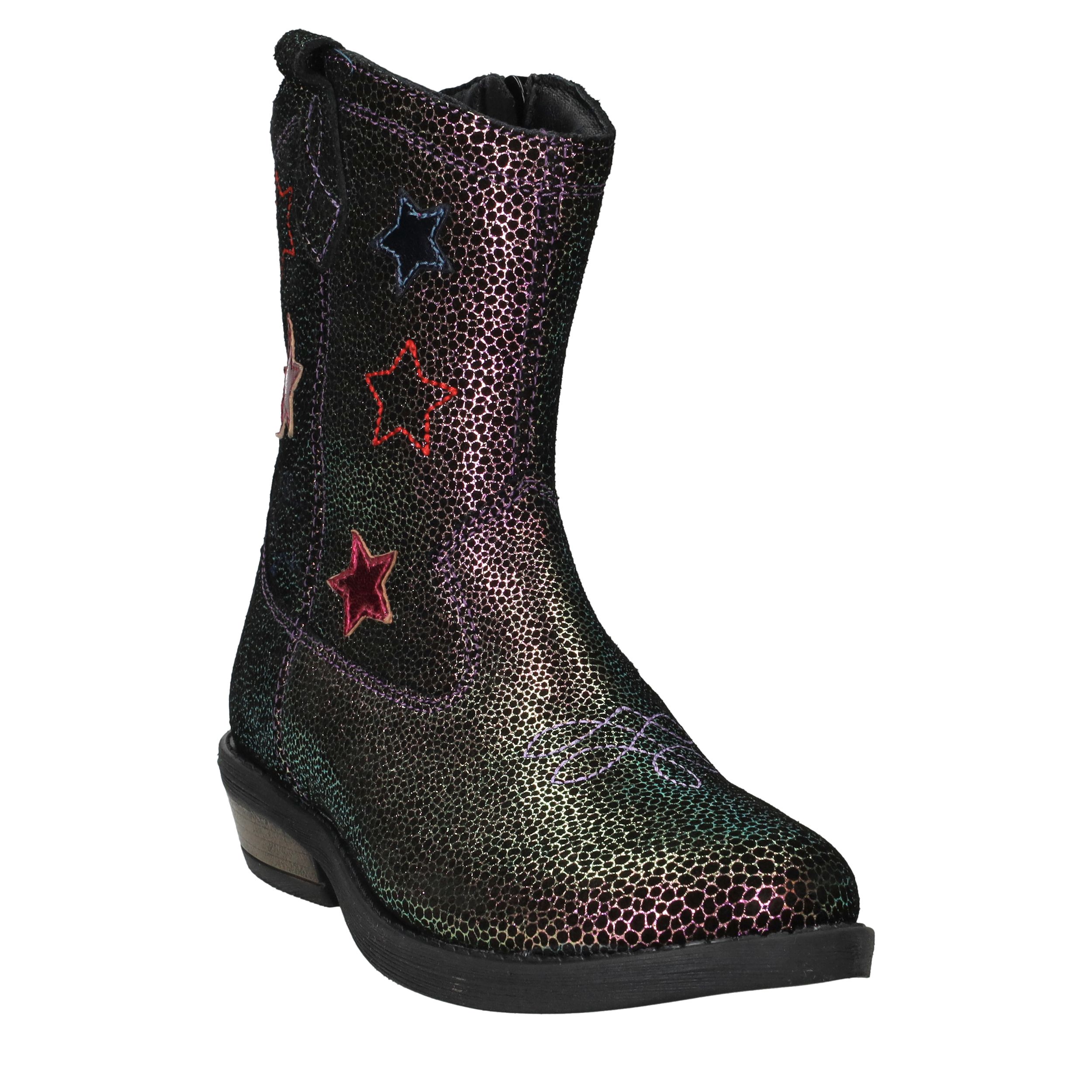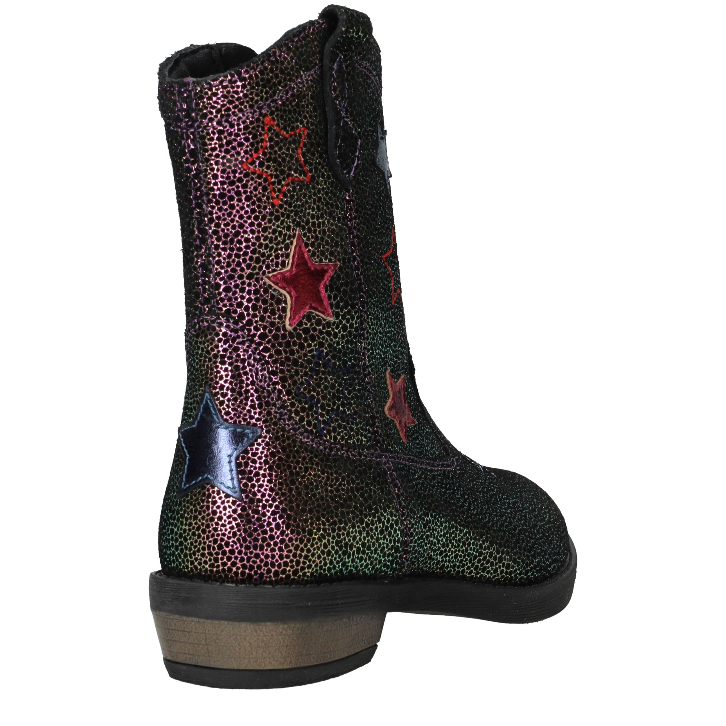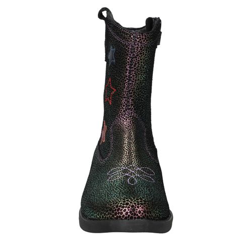 Dit IK-KE western laarsje voor meiden is een echte eyecatcher dankzij het metallic leer en de kleurrijke sterrenapplicaties. Het laarsje heeft een stevige zool en een handige ritssluiting, waardoor hij eenvoudig aan en uit te trekken is. Dankzij het uitneembare voetbed is hij ook geschikt voor eigen inlegzolen, en de leren en textielen voering zorgt voor comfort en duurzaamheid.
