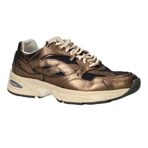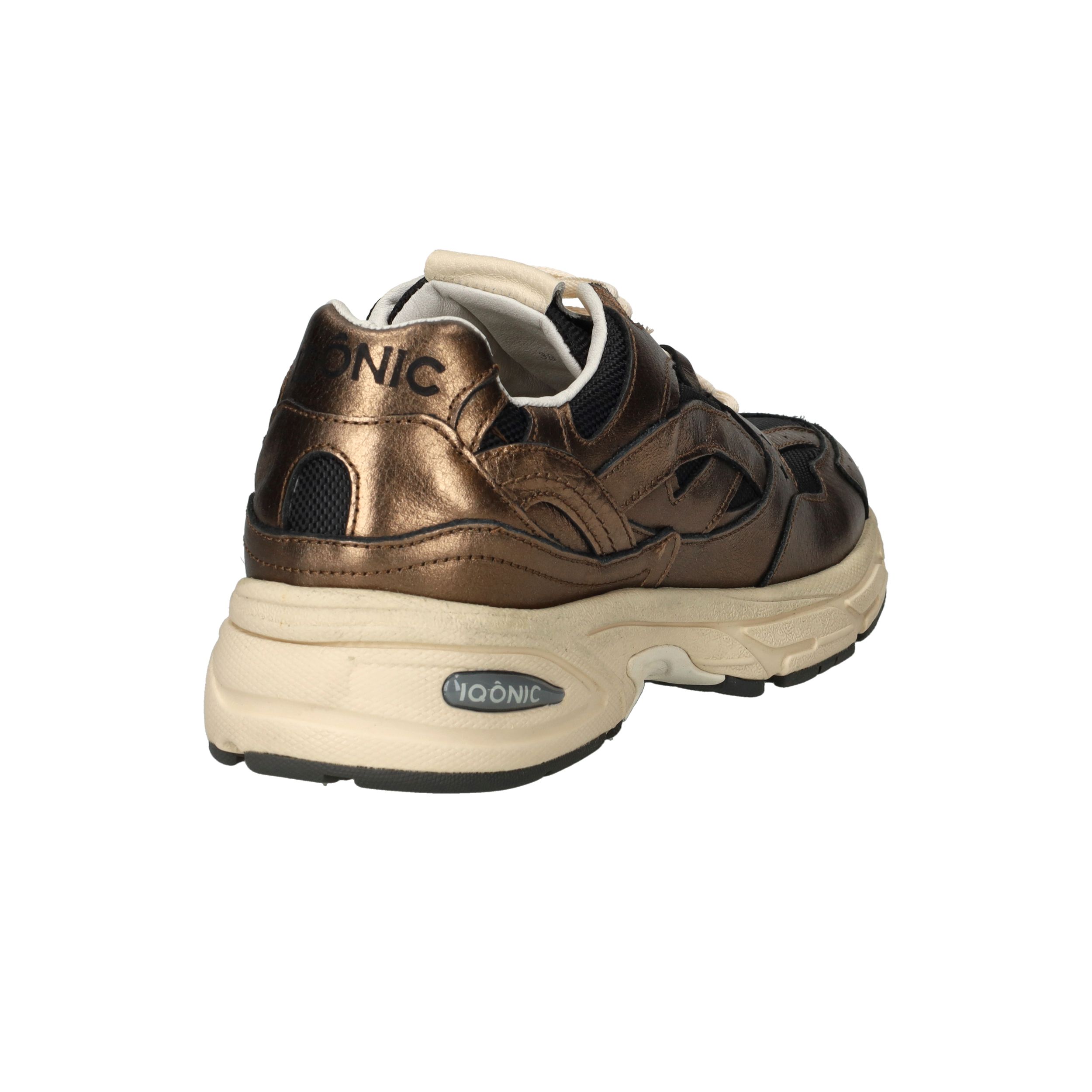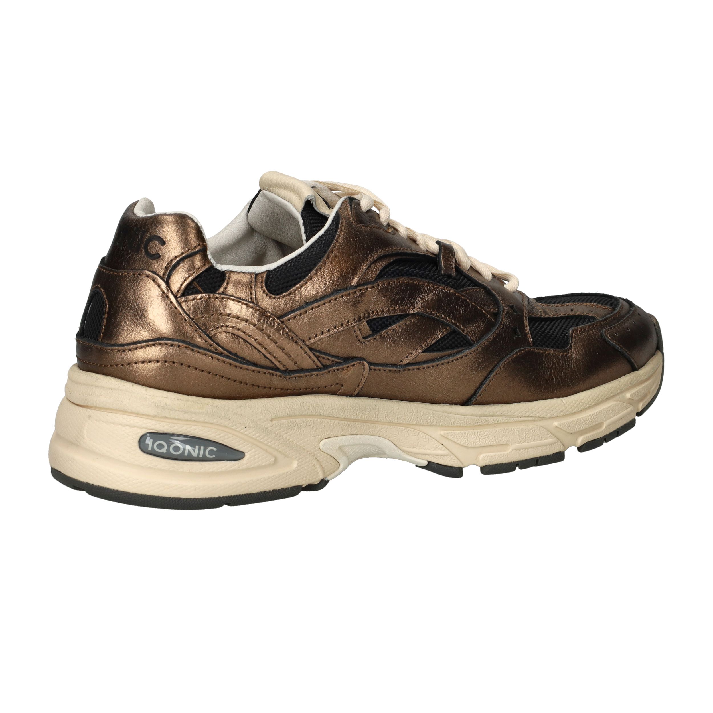 Met de IQONIC sneakers kies je voor een opvallende en trendy look. Deze bronzen dames sneakers zijn uitgevoerd in leer met een metallic finish, wat zorgt voor een luxe en eigentijdse uitstraling. Dankzij de comfortabele G-voetbreedte en de stevige zool zijn ze ideaal voor dagelijks gebruik en langere wandelingen. Perfect voor dames die houden van een vleugje glamour in hun outfit.