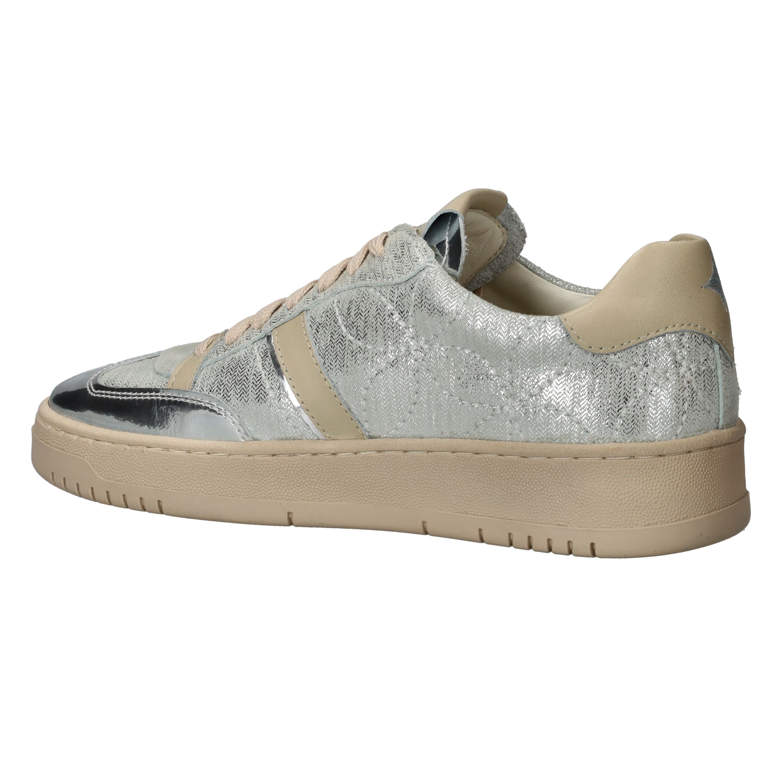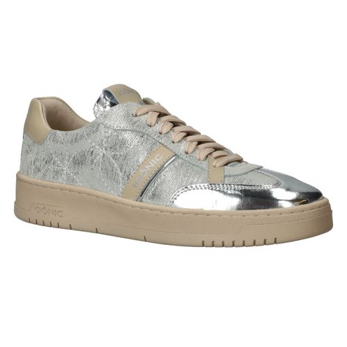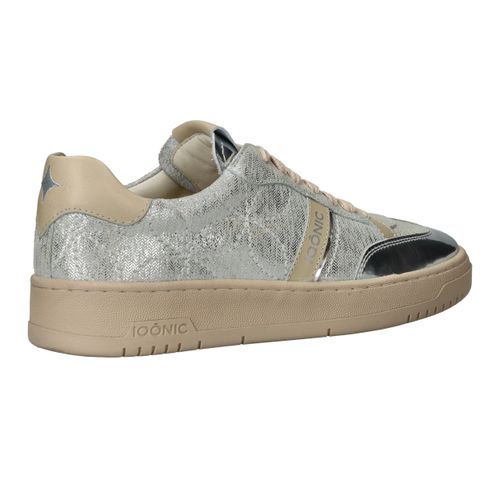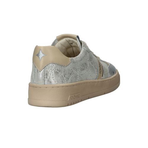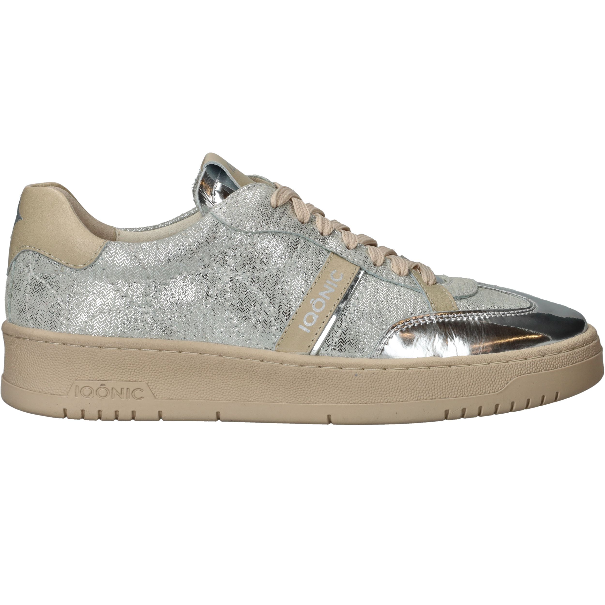 Straal in deze mooie damessneaker van IQÔNIC! De sneaker is zilver van kleur en heeft beige accenten.