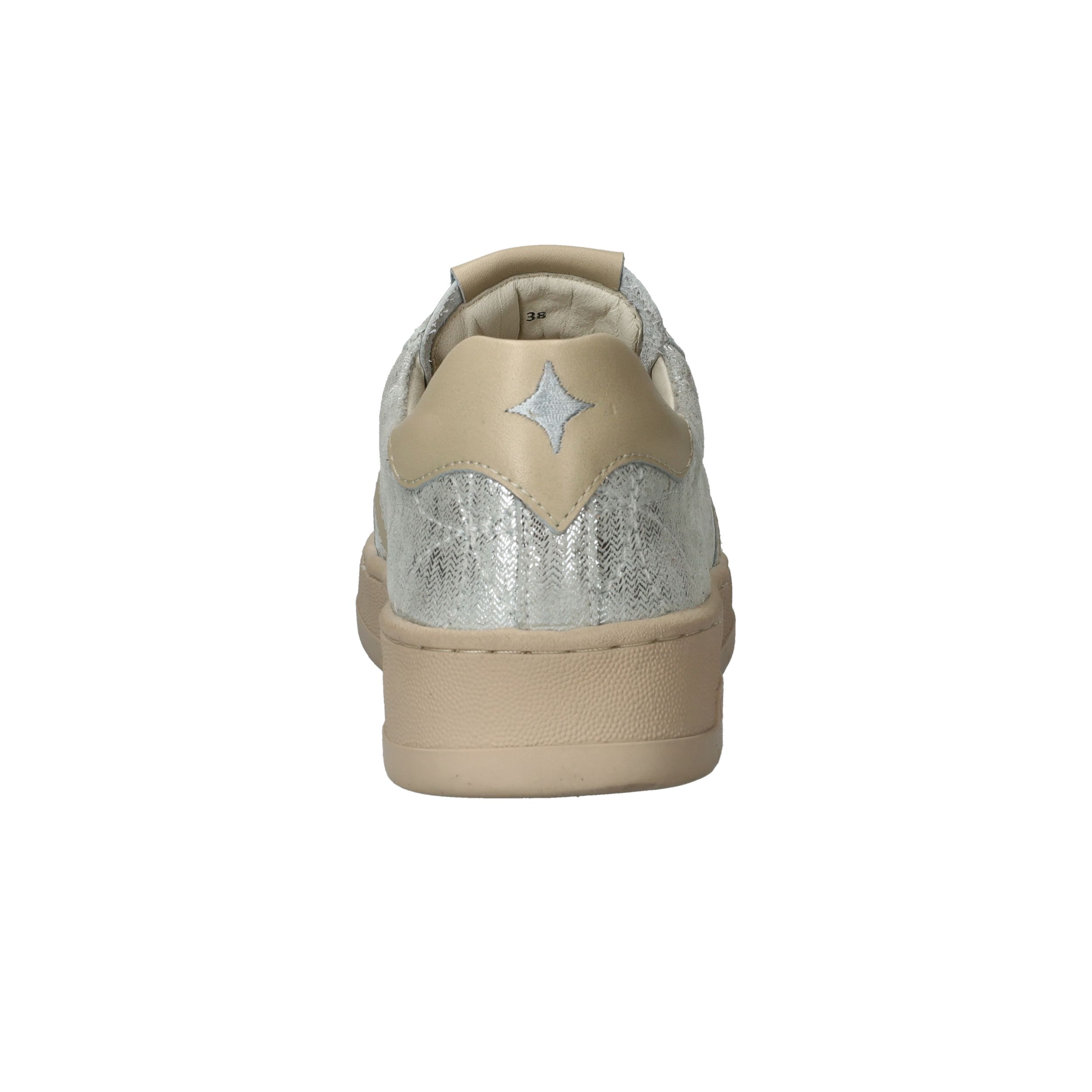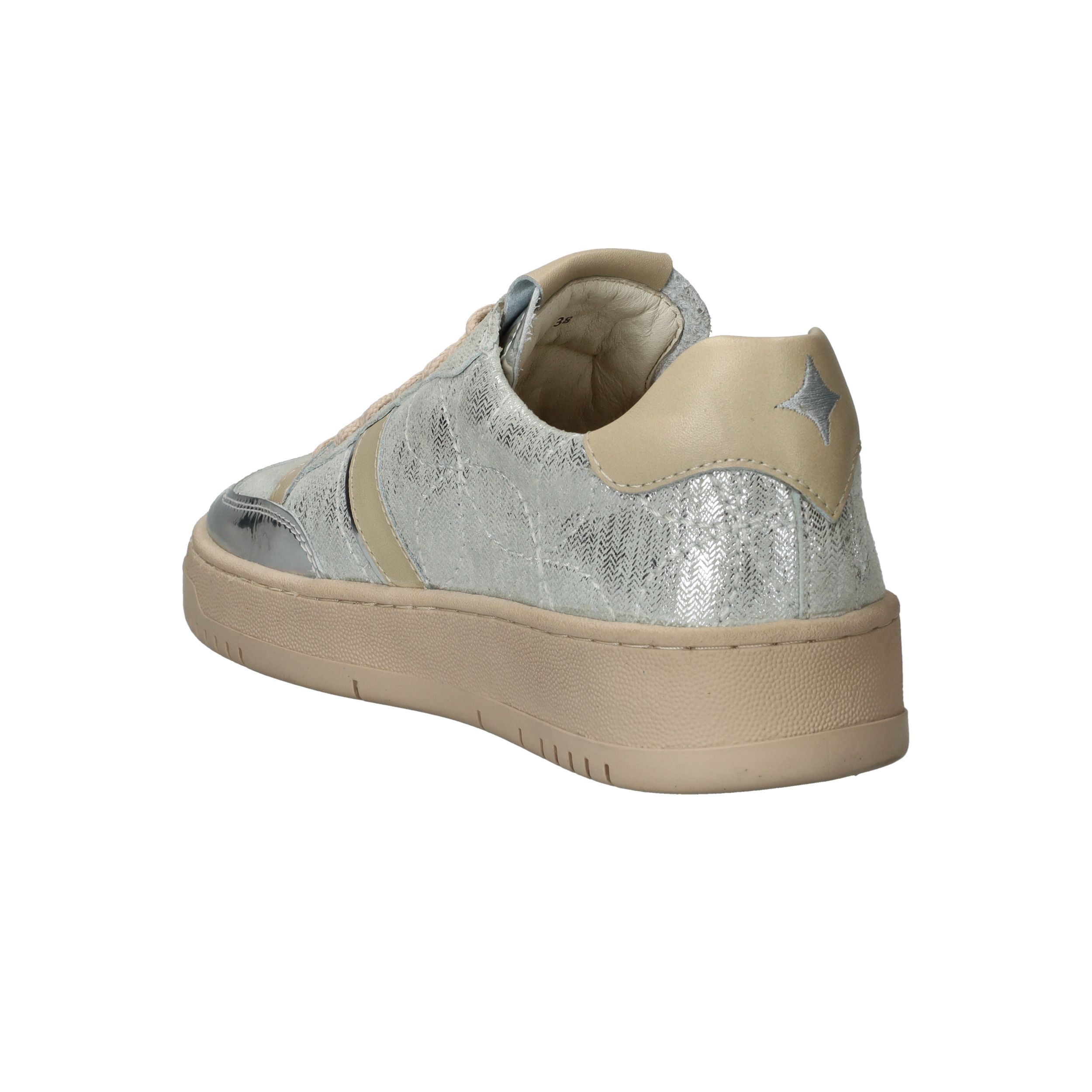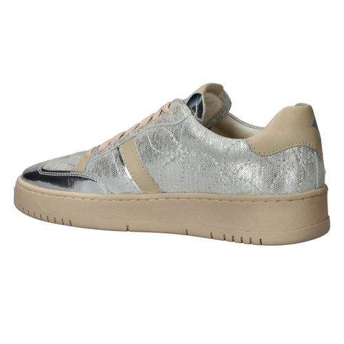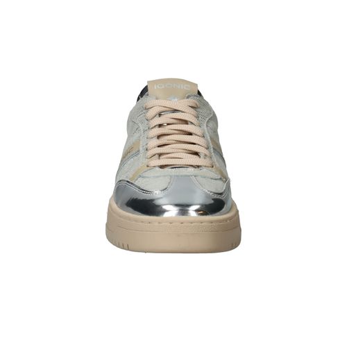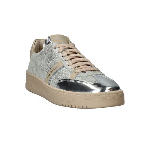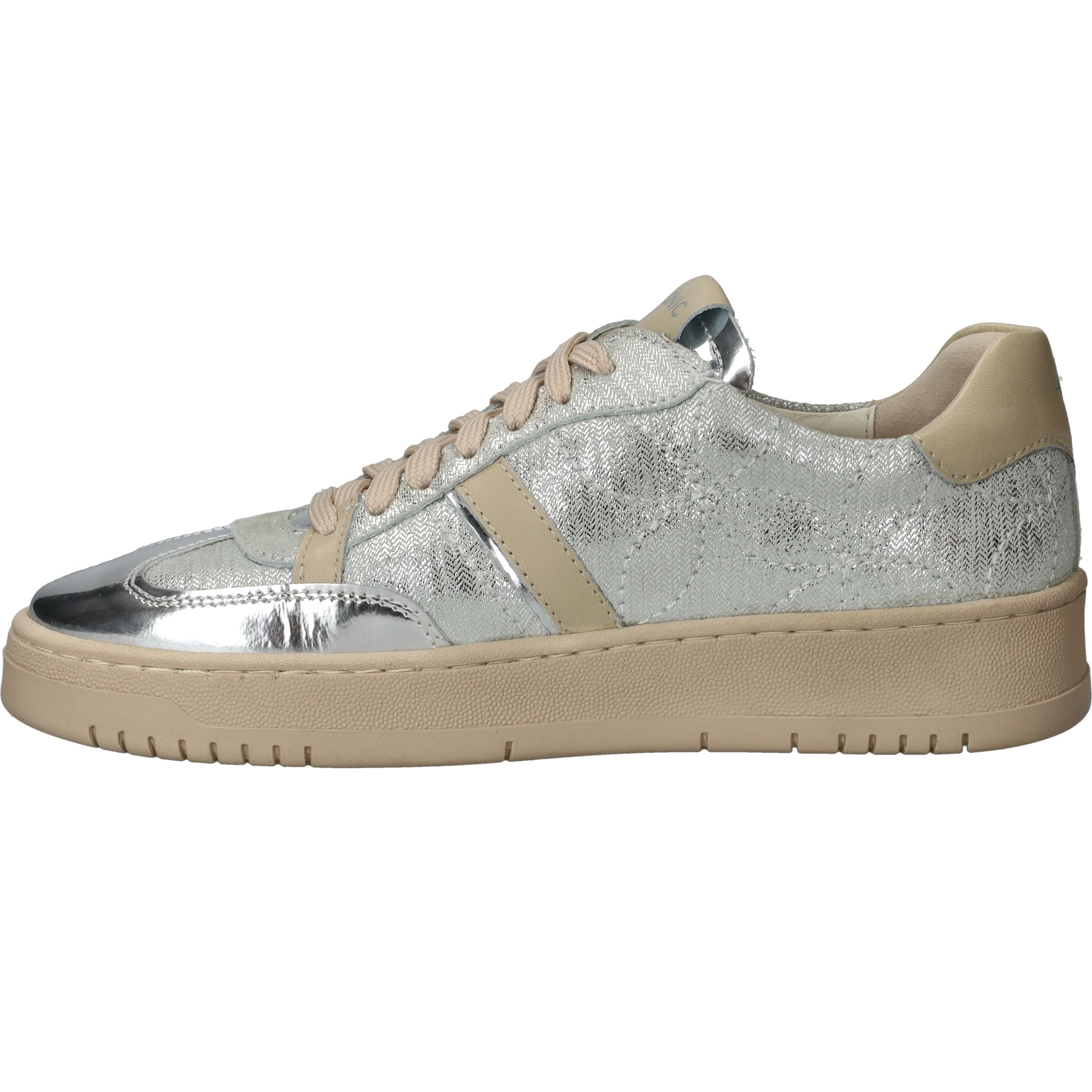 Straal in deze mooie damessneaker van IQÔNIC! De sneaker is zilver van kleur en heeft beige accenten.