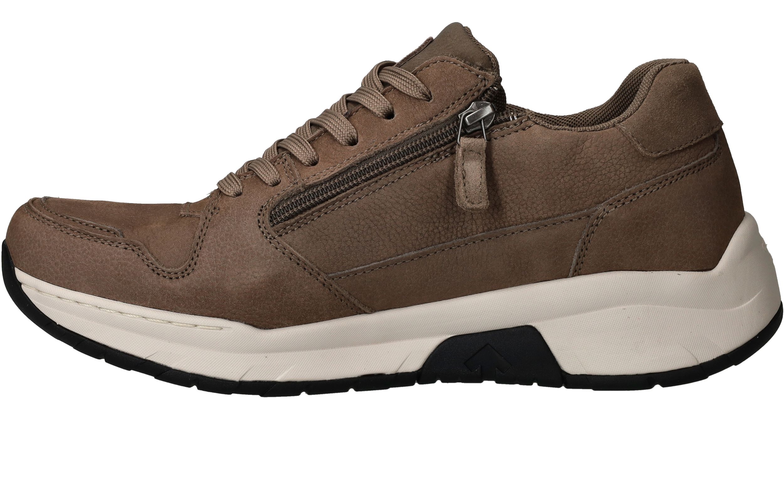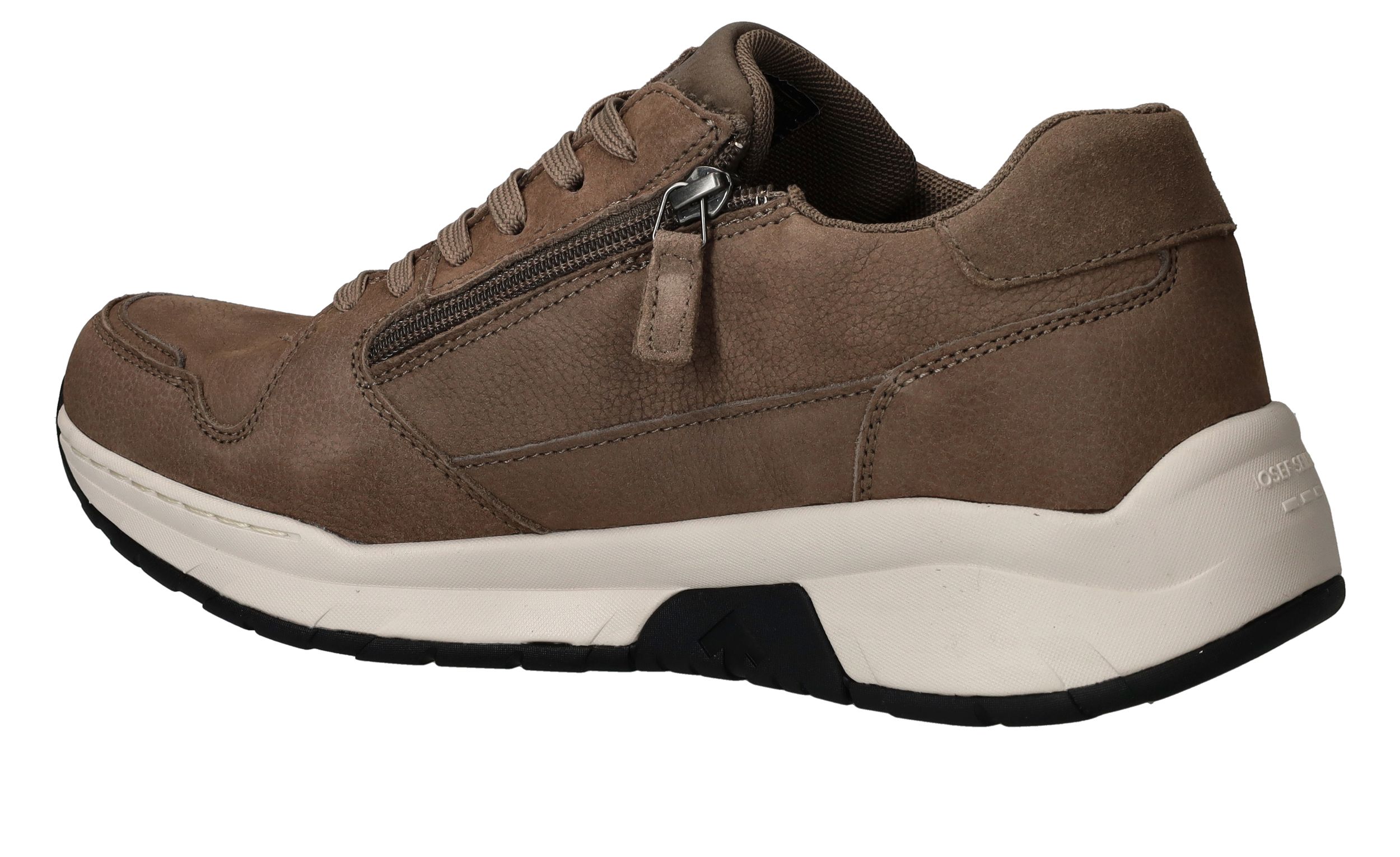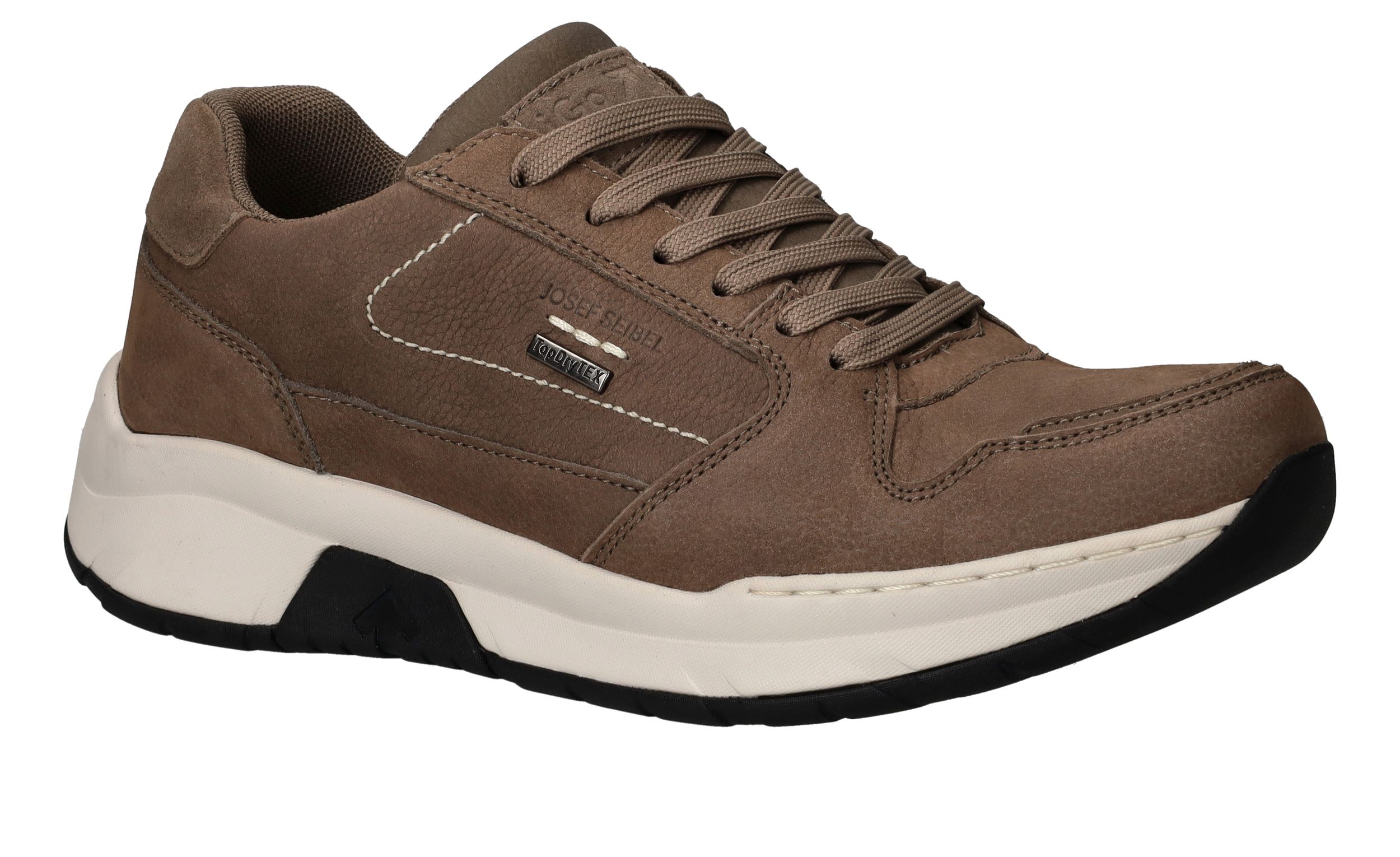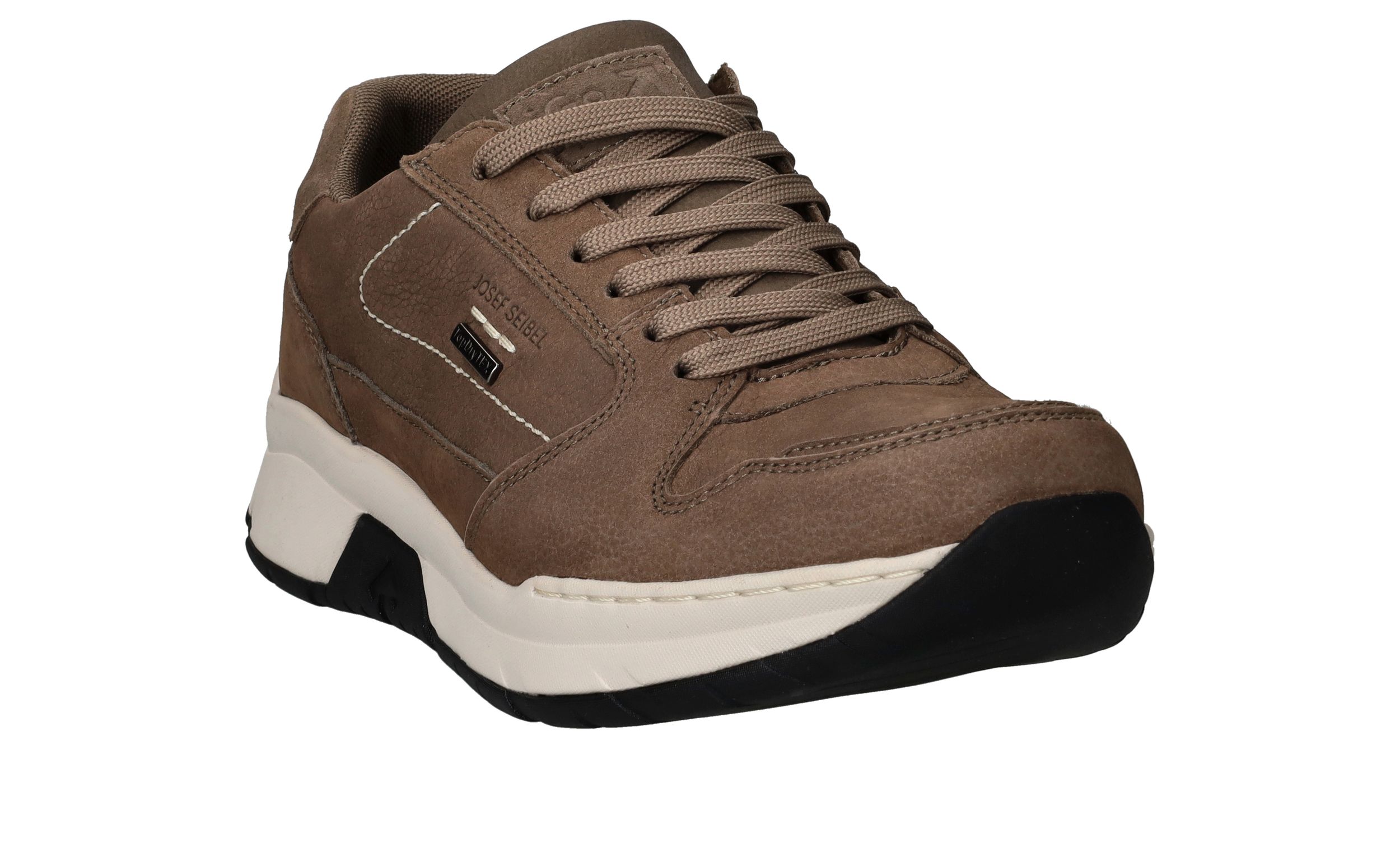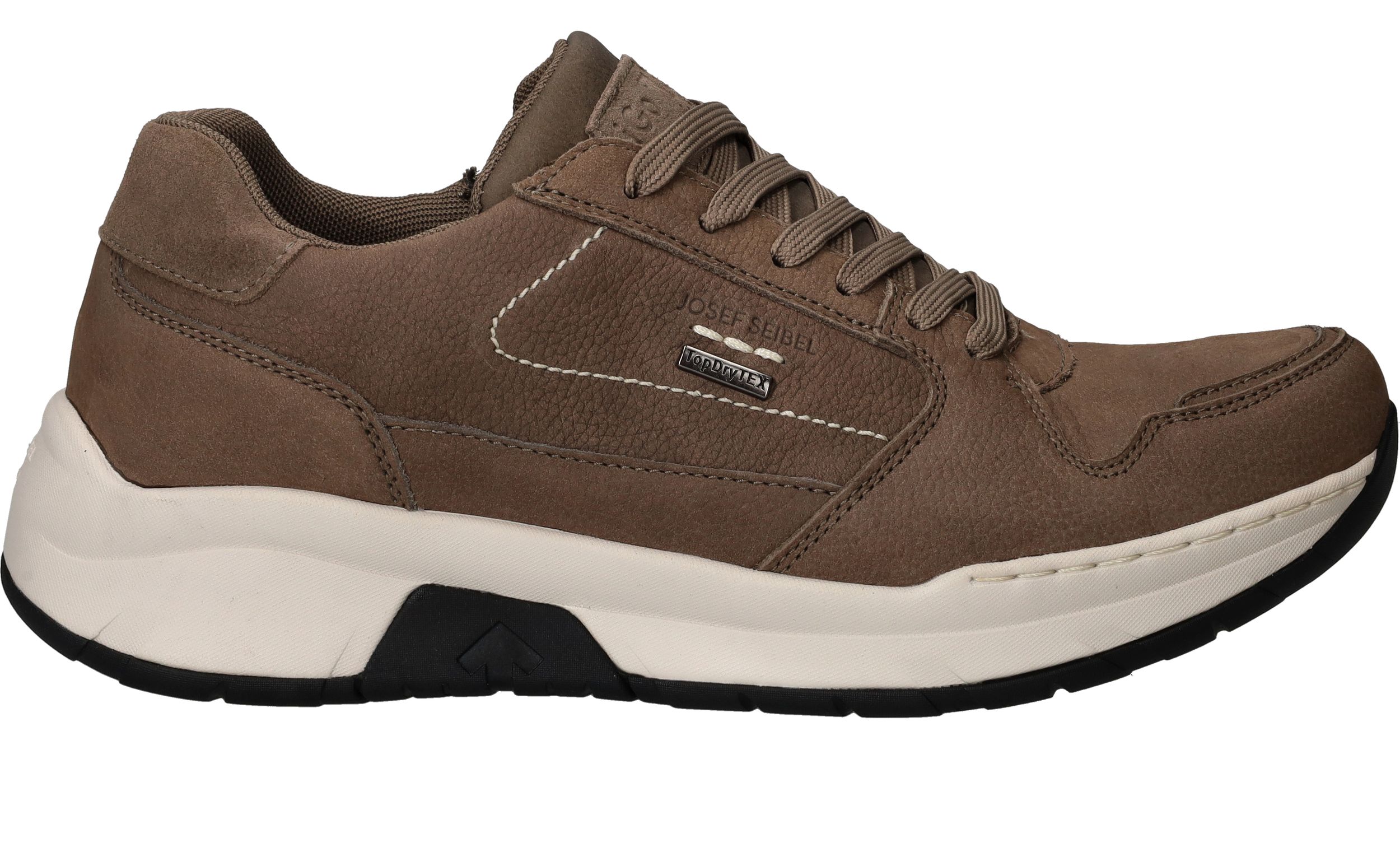 Sportieve Josef Seibel Mitchell 50 sneaker gemaakt van leer. De herensneaker heeft een taupe kleur en de schoen is voorzien van TopdryTex, dit zorgt ervoor dat de schoen water- en vuilafstotend is.