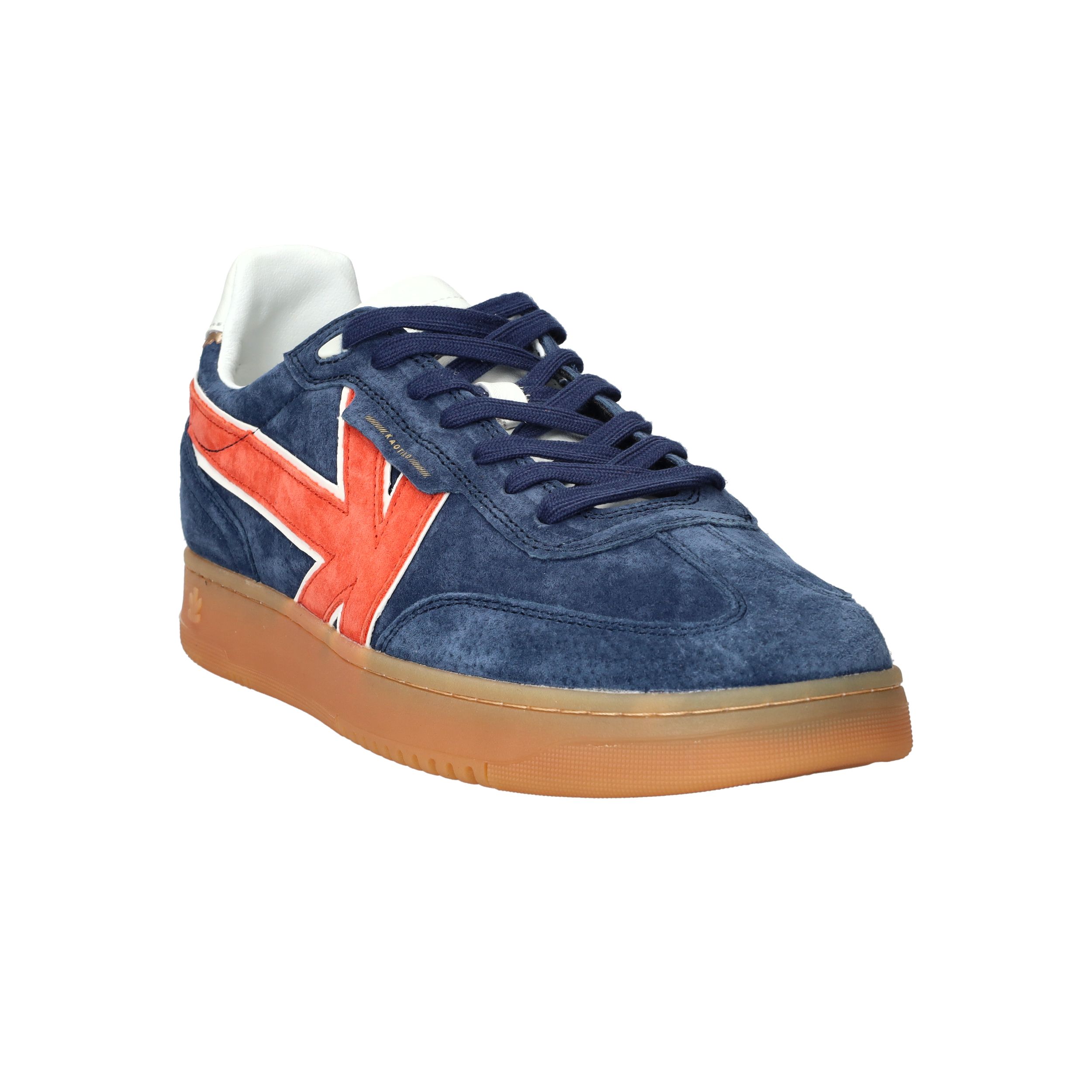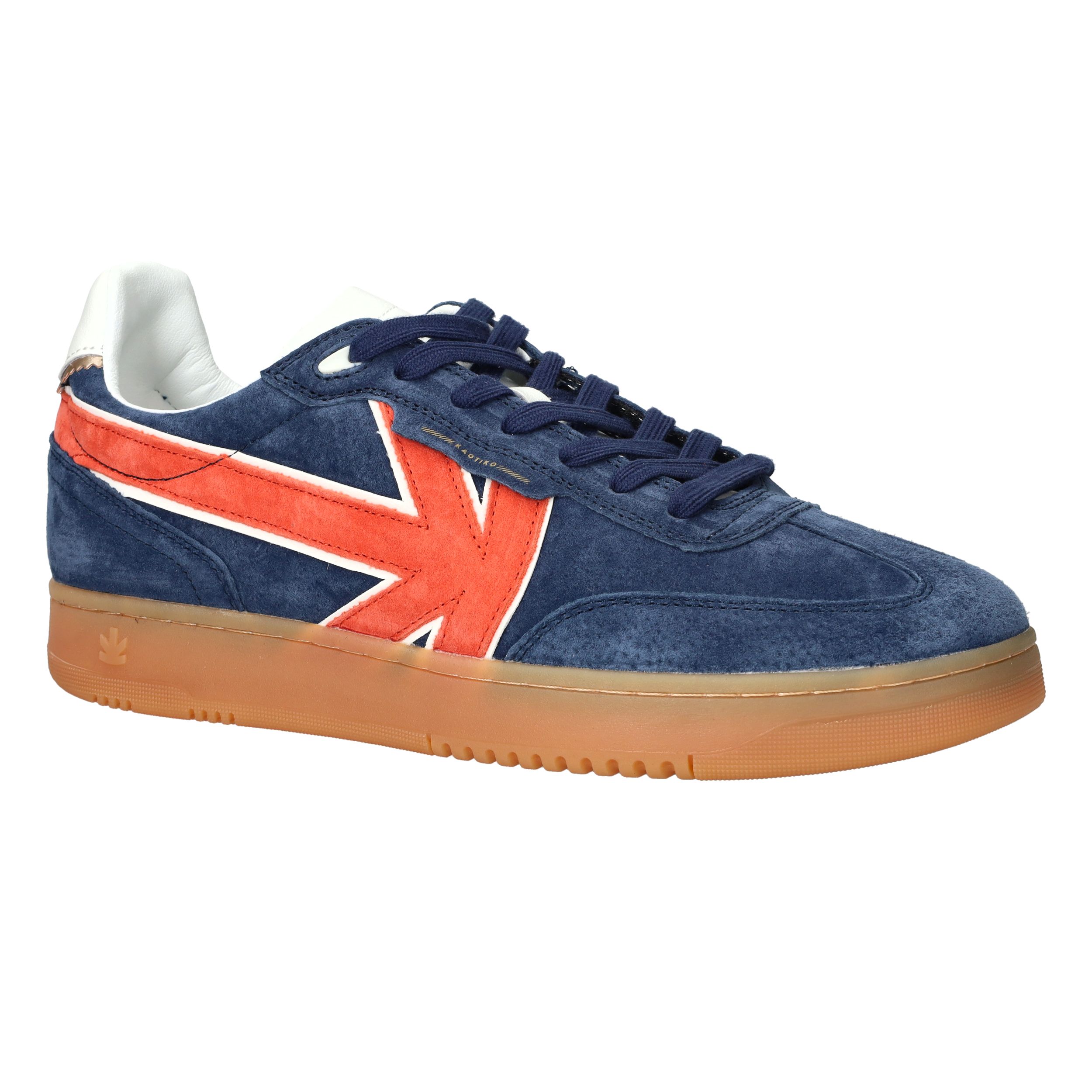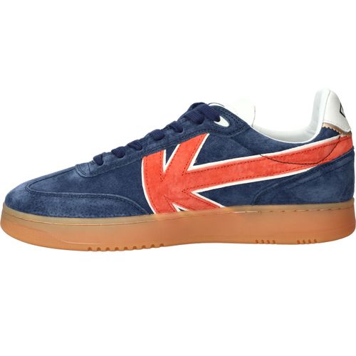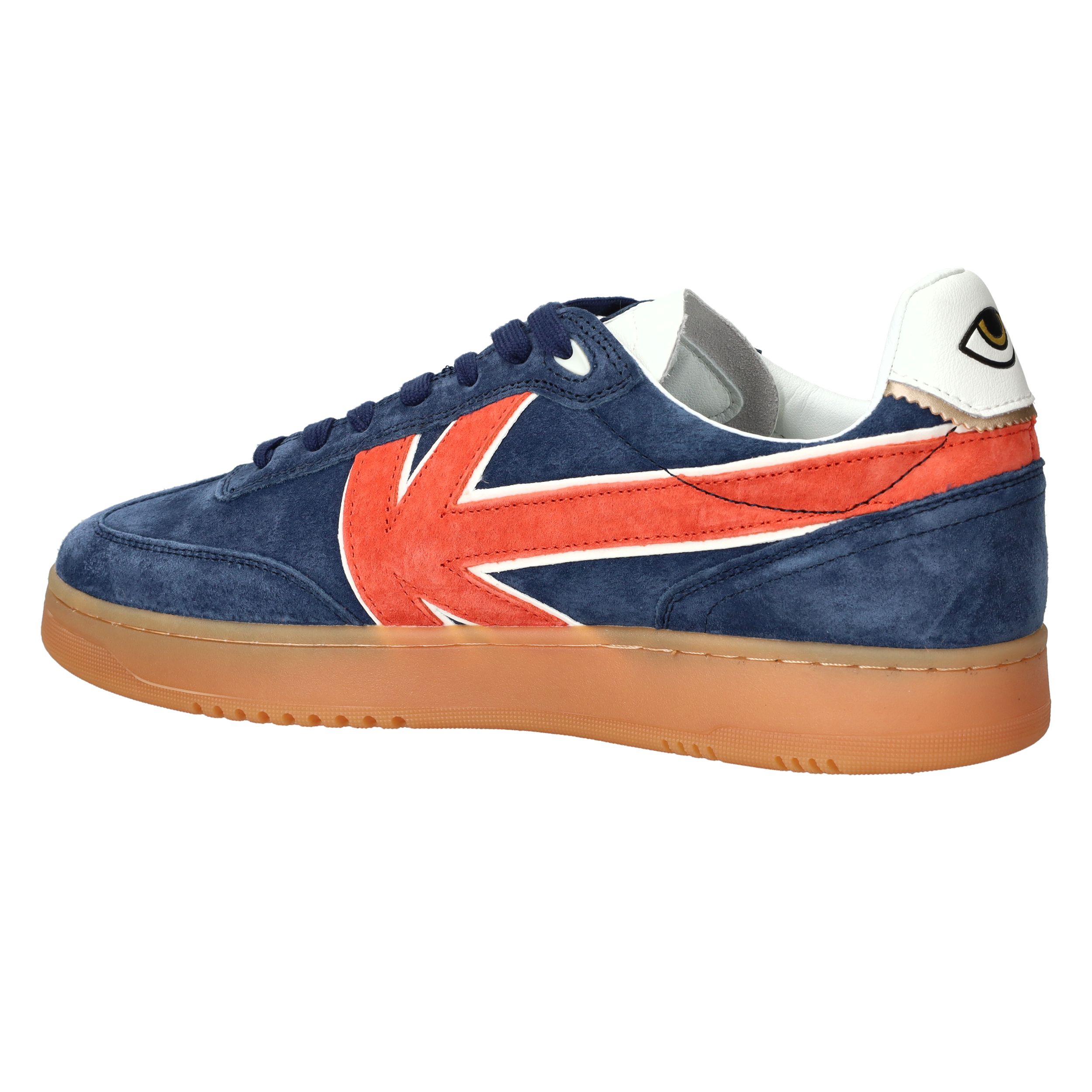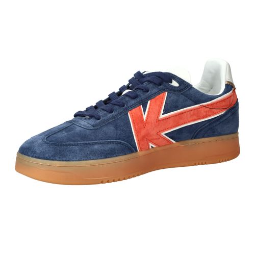 Toffe blauwe Kaotiko Boston suede sneaker voor heren met flitsende oranje streep.