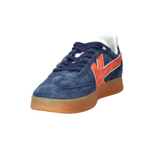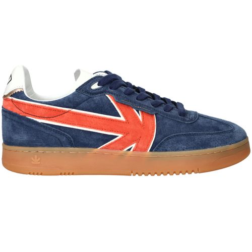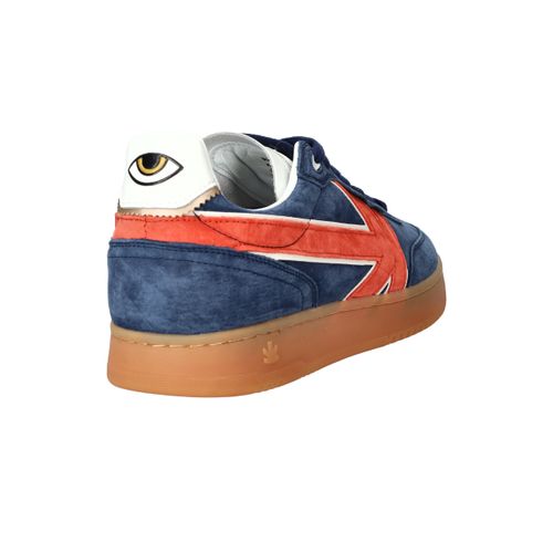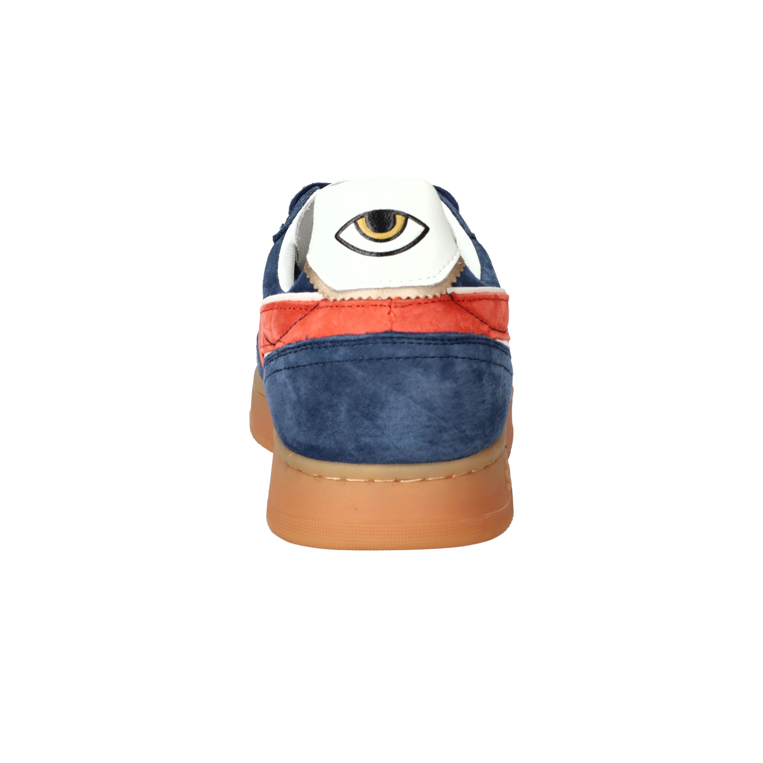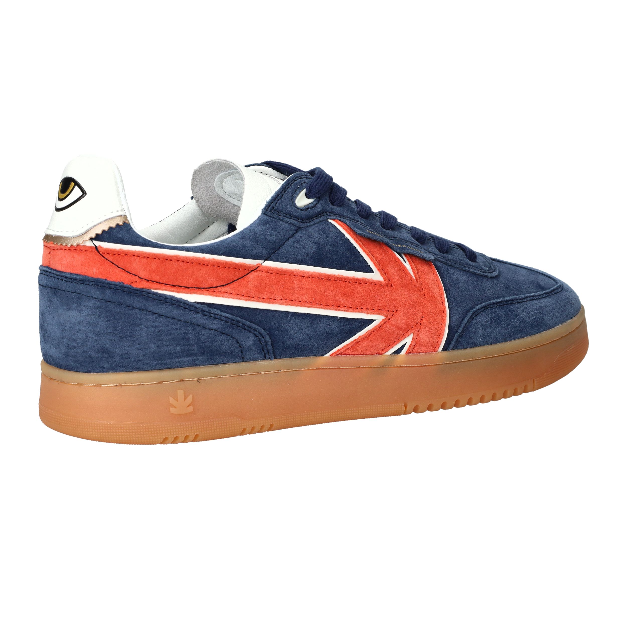 Toffe blauwe Kaotiko Boston suede sneaker voor heren met flitsende oranje streep.