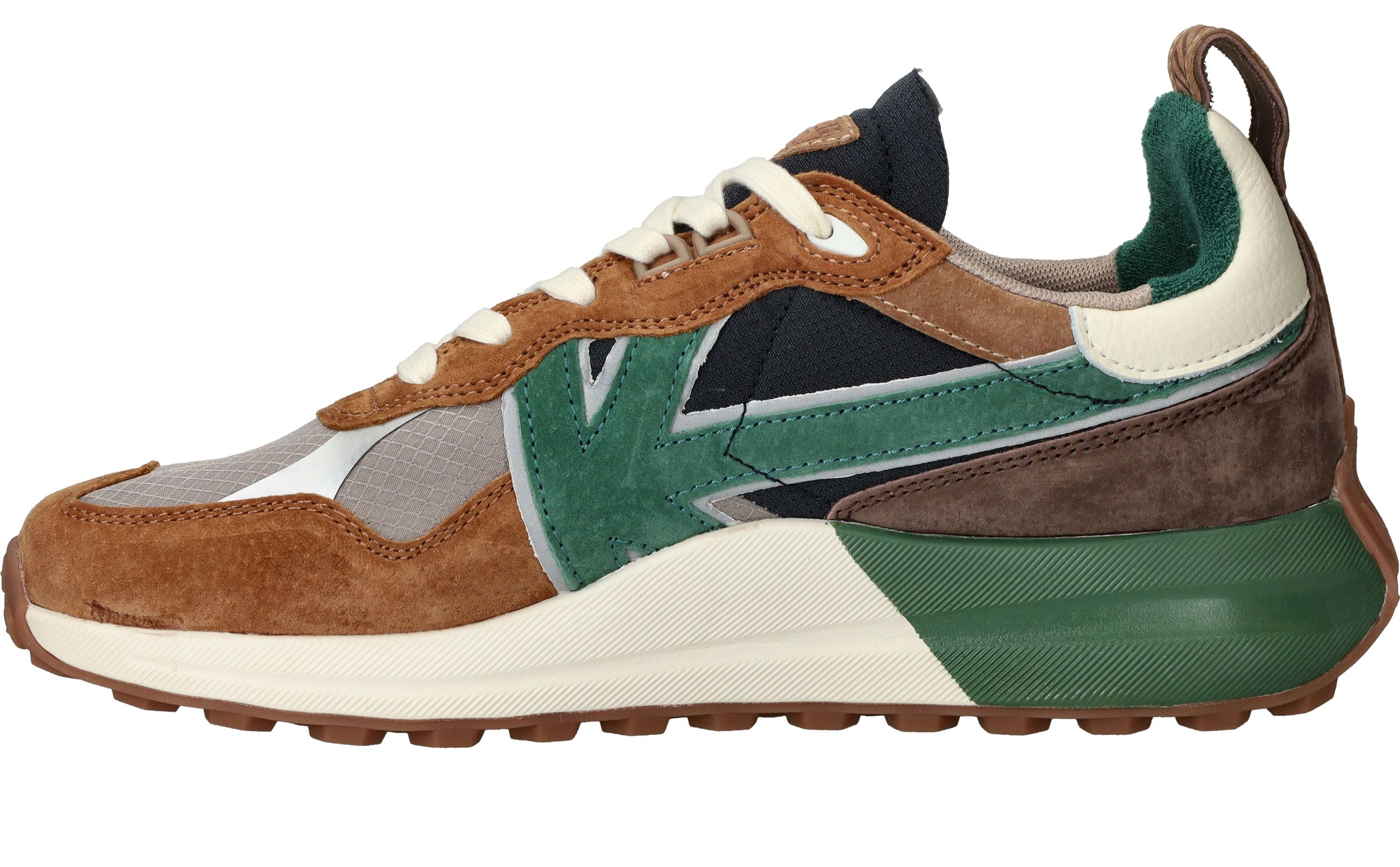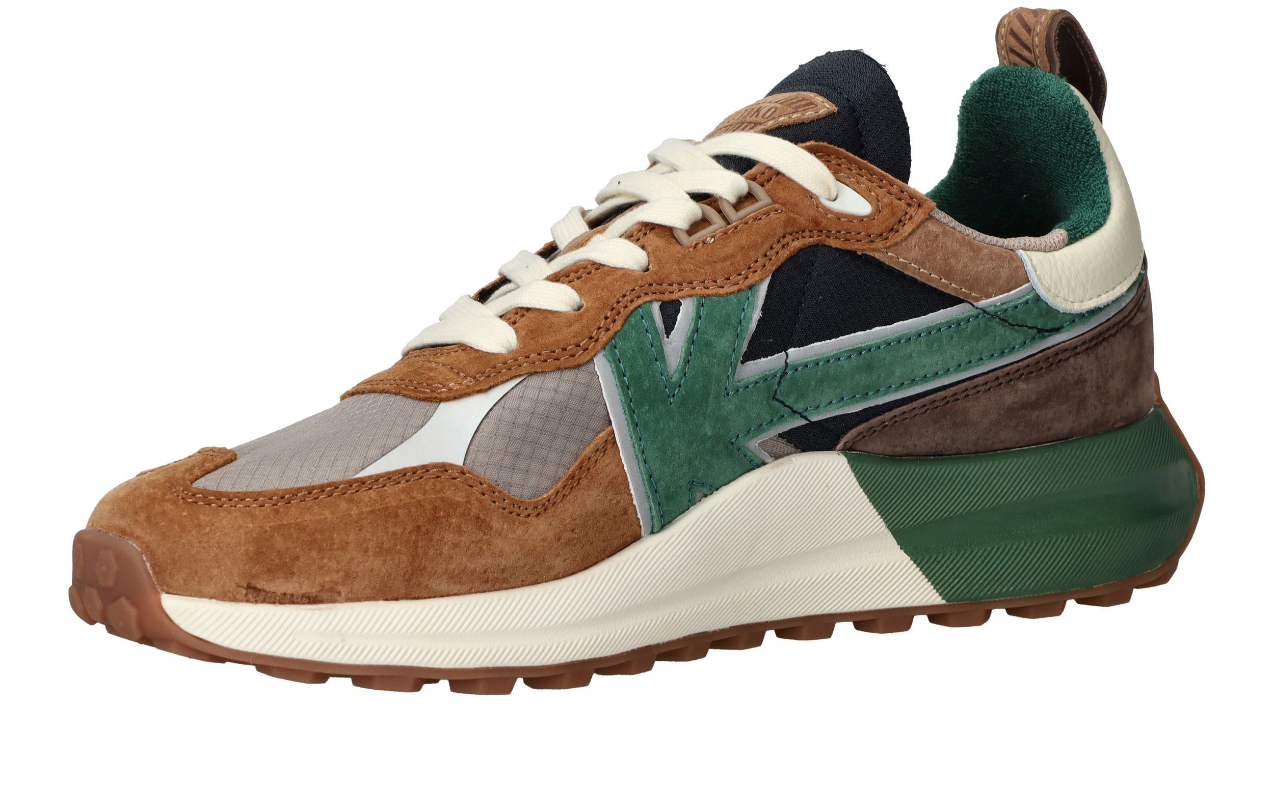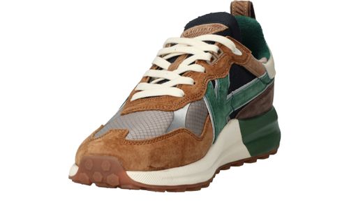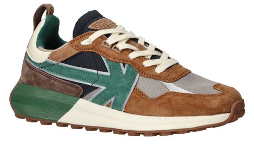 - De sneaker is gemaakt van leer en textiel.