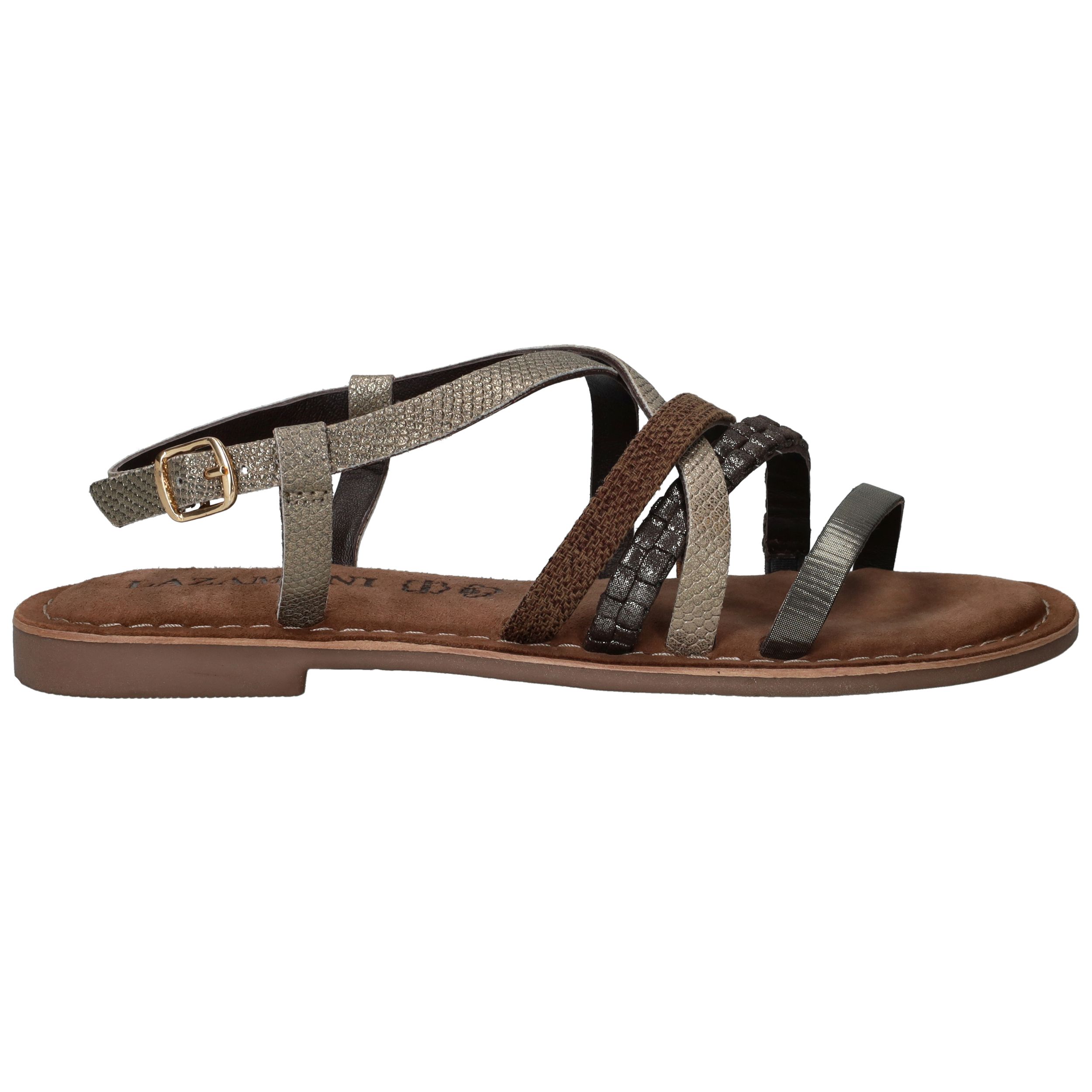 Deze elegante sandalen van Lazamani zijn een feest voor je voeten én je outfit. De glinsterende bandjes van kunstleer zorgen voor een vrouwelijke look, terwijl de leren binnenzool comfortabel aanvoelt op warme dagen. Perfect voor zomerse uitstapjes of een avondje uit.
