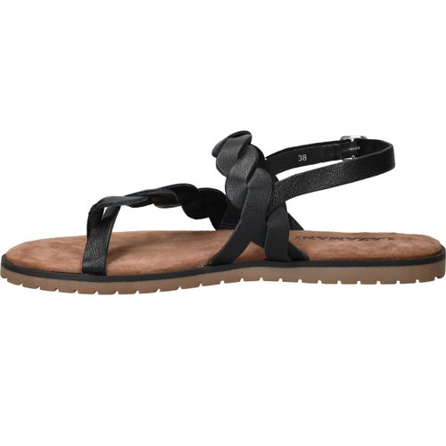 Met deze elegante zwarte sandalen van het trendy merk Lazamani loop je stijlvol en comfortabel de zomer tegemoet. De sandalen zijn gemaakt van soepel leer, waardoor ze zich perfect naar jouw voeten vormen. Door de tijdloze kleur zwart passen ze bij iedere outfit. Ideaal voor dames die graag genieten van een zomerse dag zonder comfort uit het oog te verliezen.
