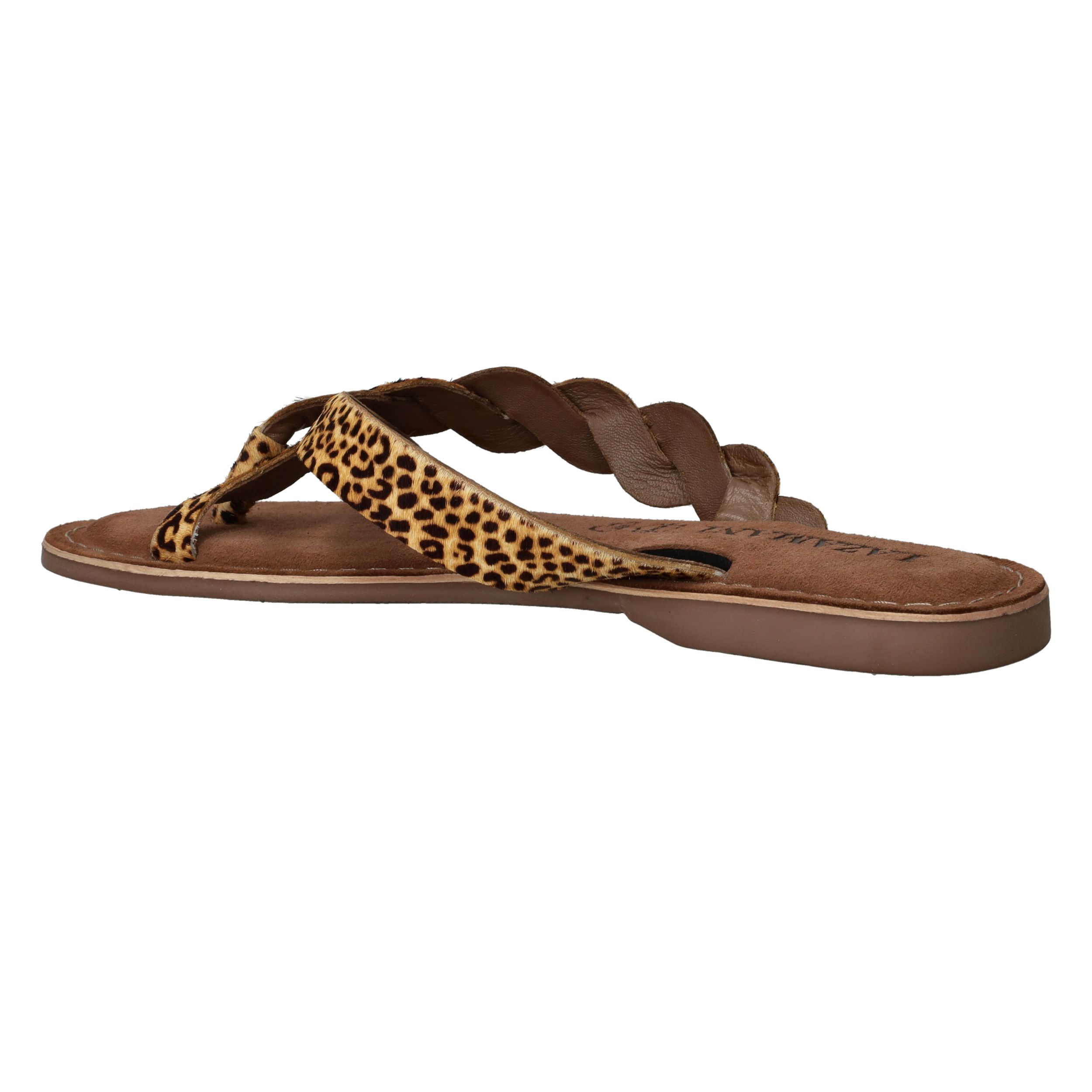 Deze slipper van Lazamani straalt pure zomerstijl uit dankzij de opvallende vacht band met dierenprint. Het zachte leer zorgt voor een comfortabele pasvorm en natuurlijke uitstraling. Een perfecte keuze voor dames die van een trendy én comfortabele zomerslipper houden.