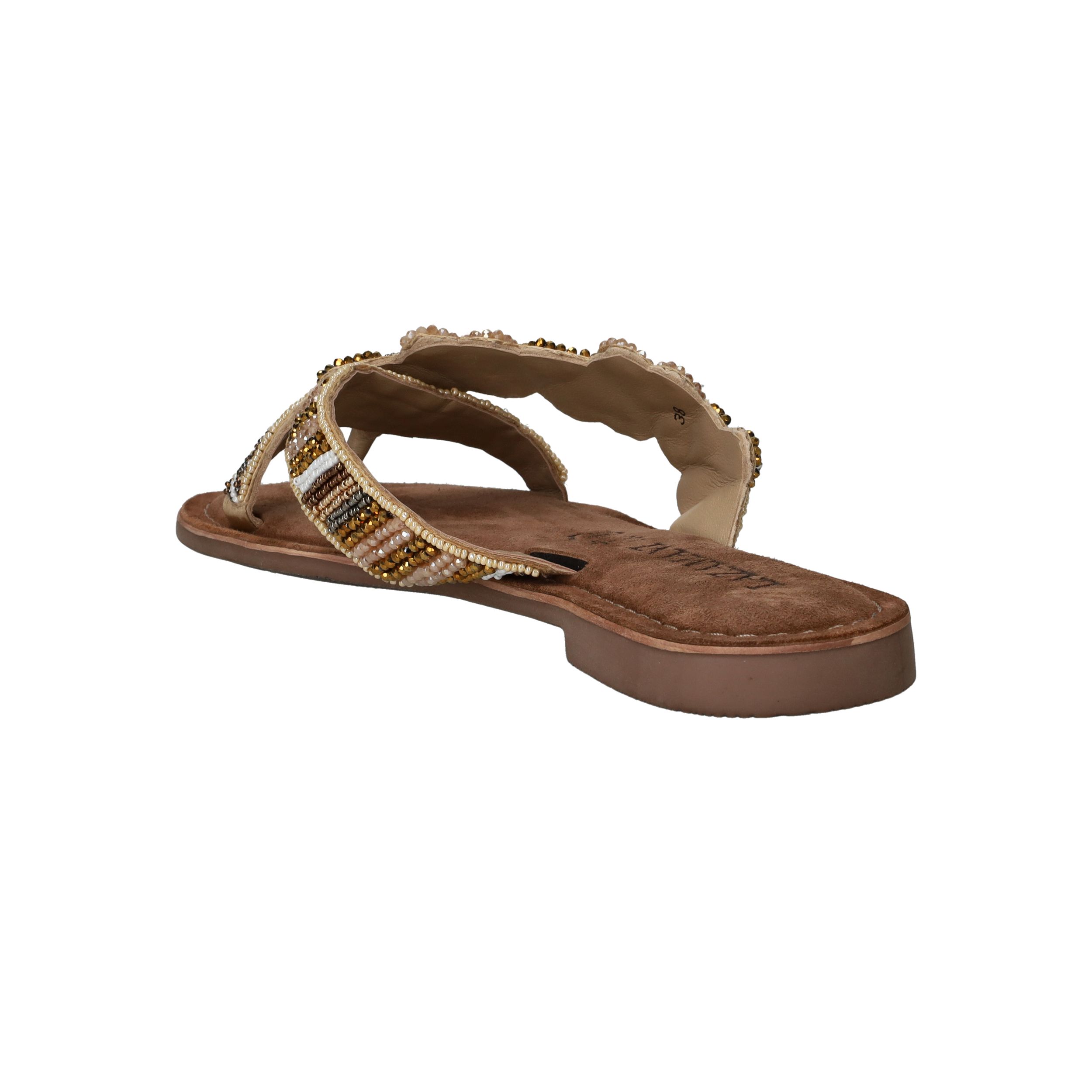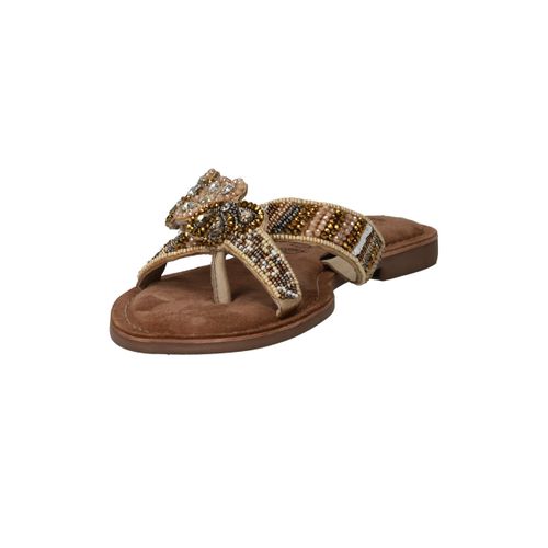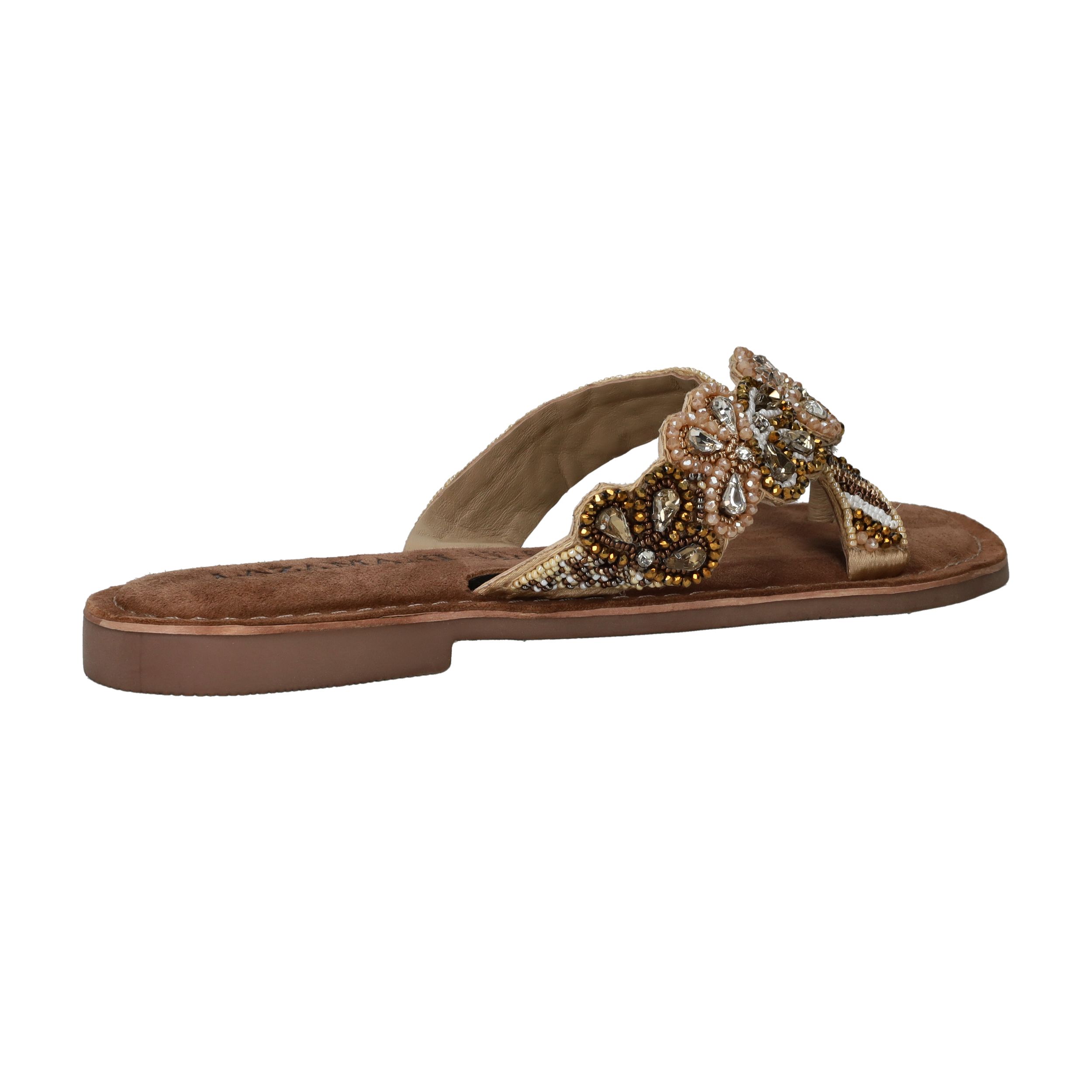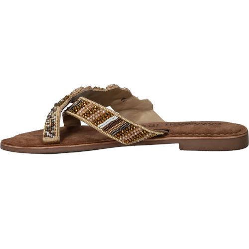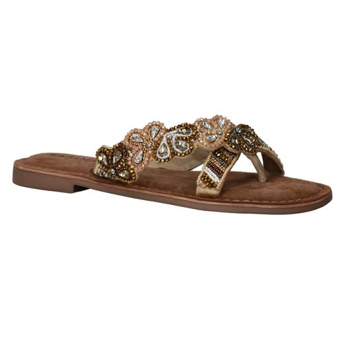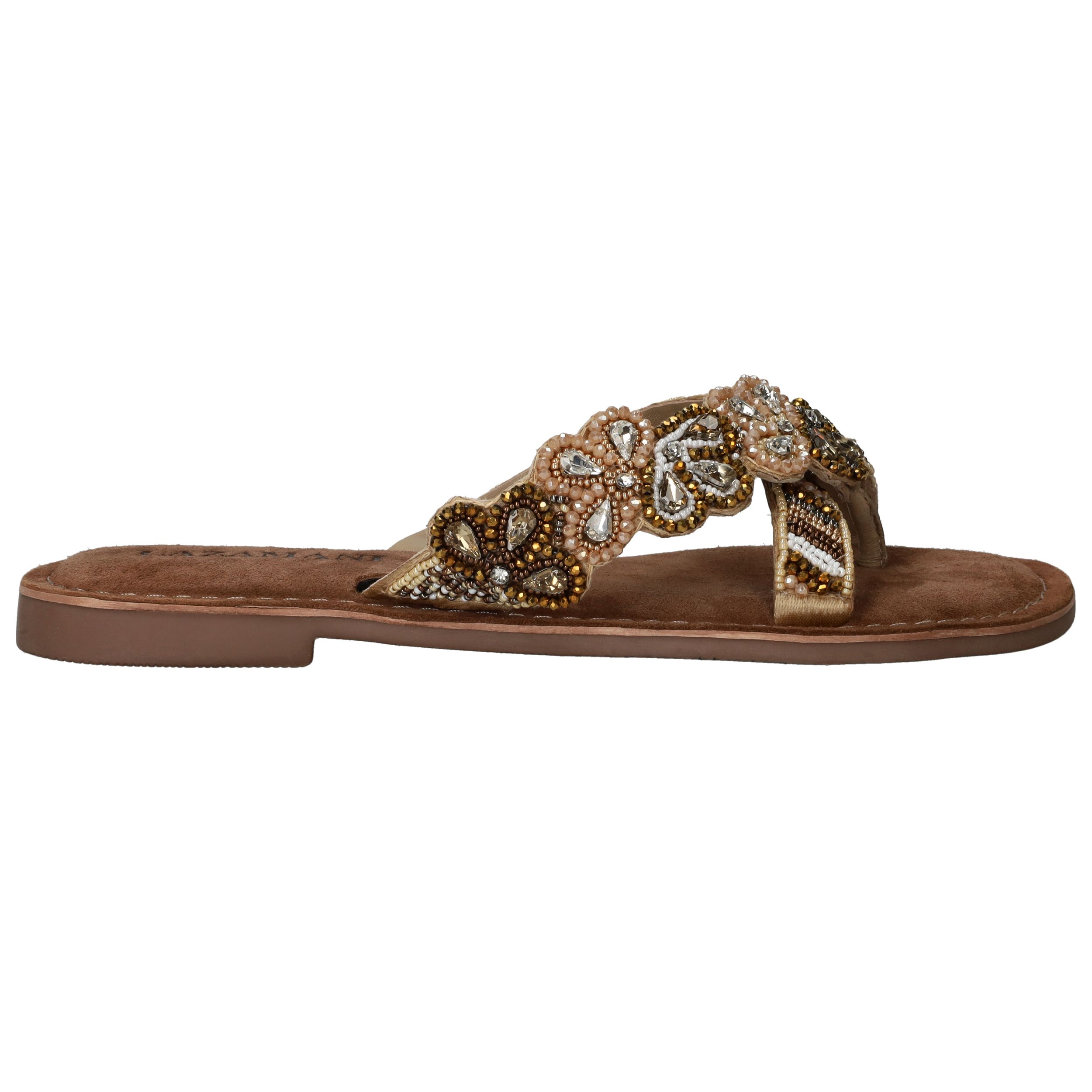 Deze sierlijke slipper van Lazamani is een echte eyecatcher dankzij de verfijnde kralenapplicatie. De comfortabele pasvorm en de luxe leren voering maken hem perfect voor zomerse dagen vol stijl en gemak. Een must-have voor elke modebewuste dame!