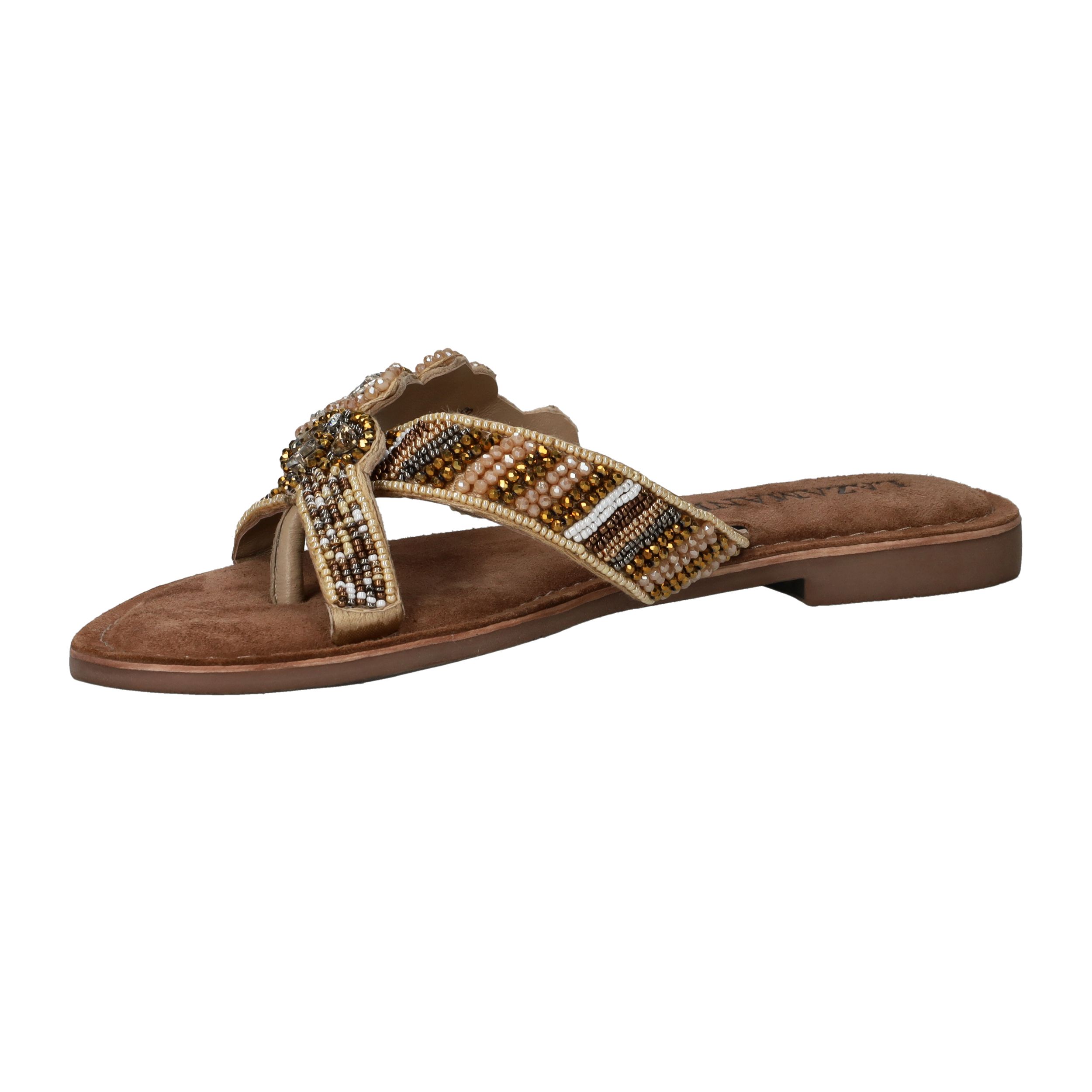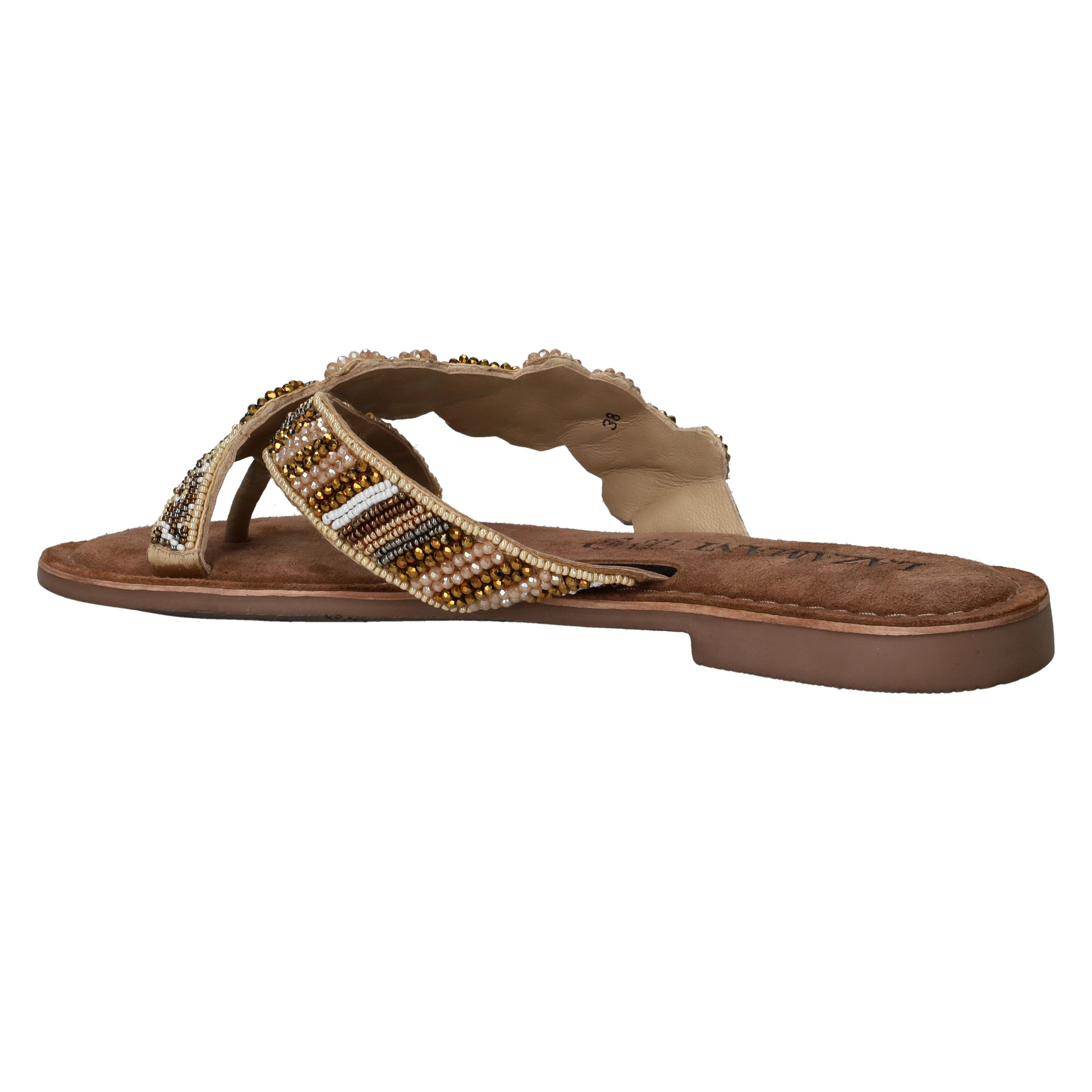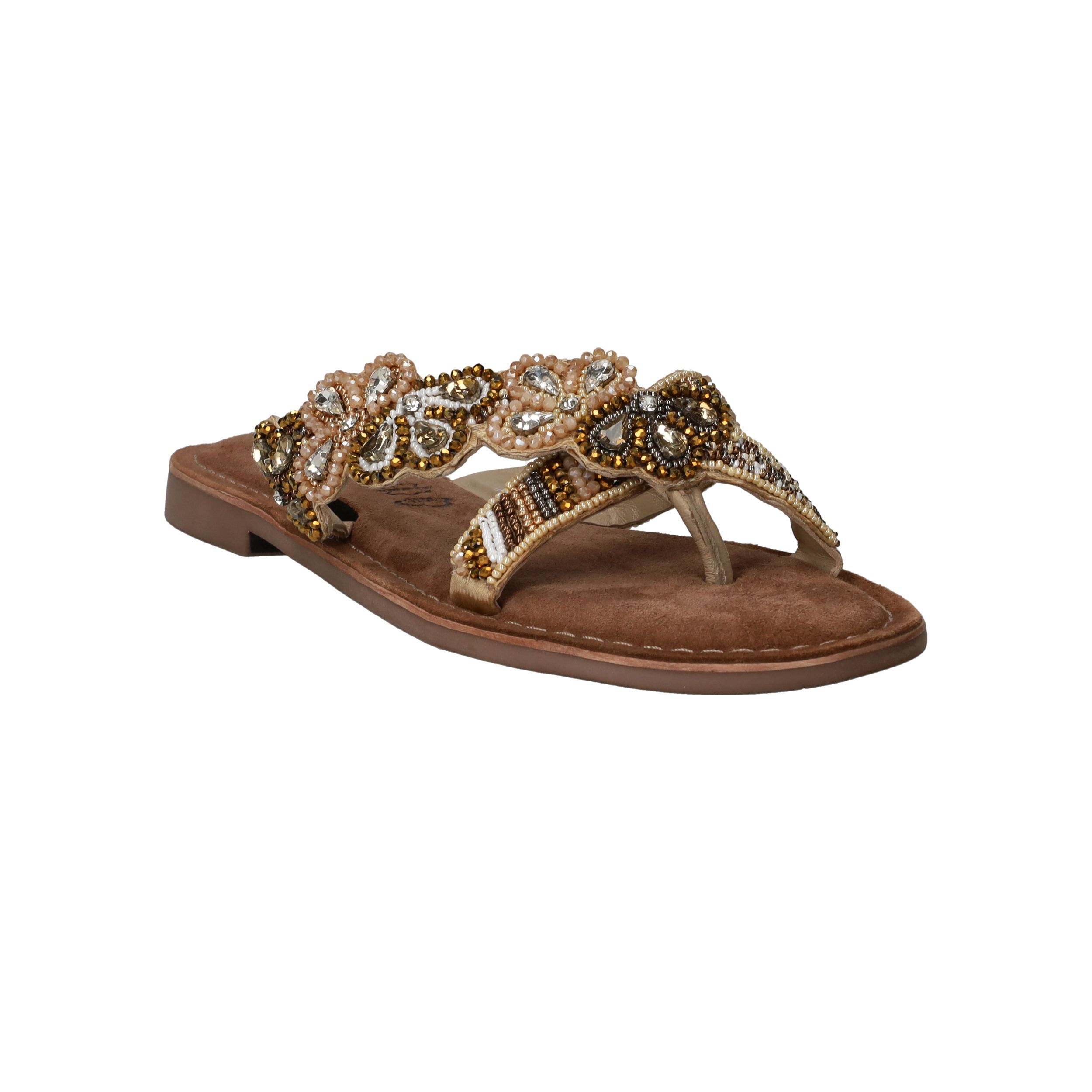 Deze sierlijke slipper van Lazamani is een echte eyecatcher dankzij de verfijnde kralenapplicatie. De comfortabele pasvorm en de luxe leren voering maken hem perfect voor zomerse dagen vol stijl en gemak. Een must-have voor elke modebewuste dame!