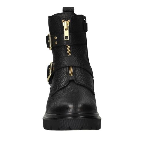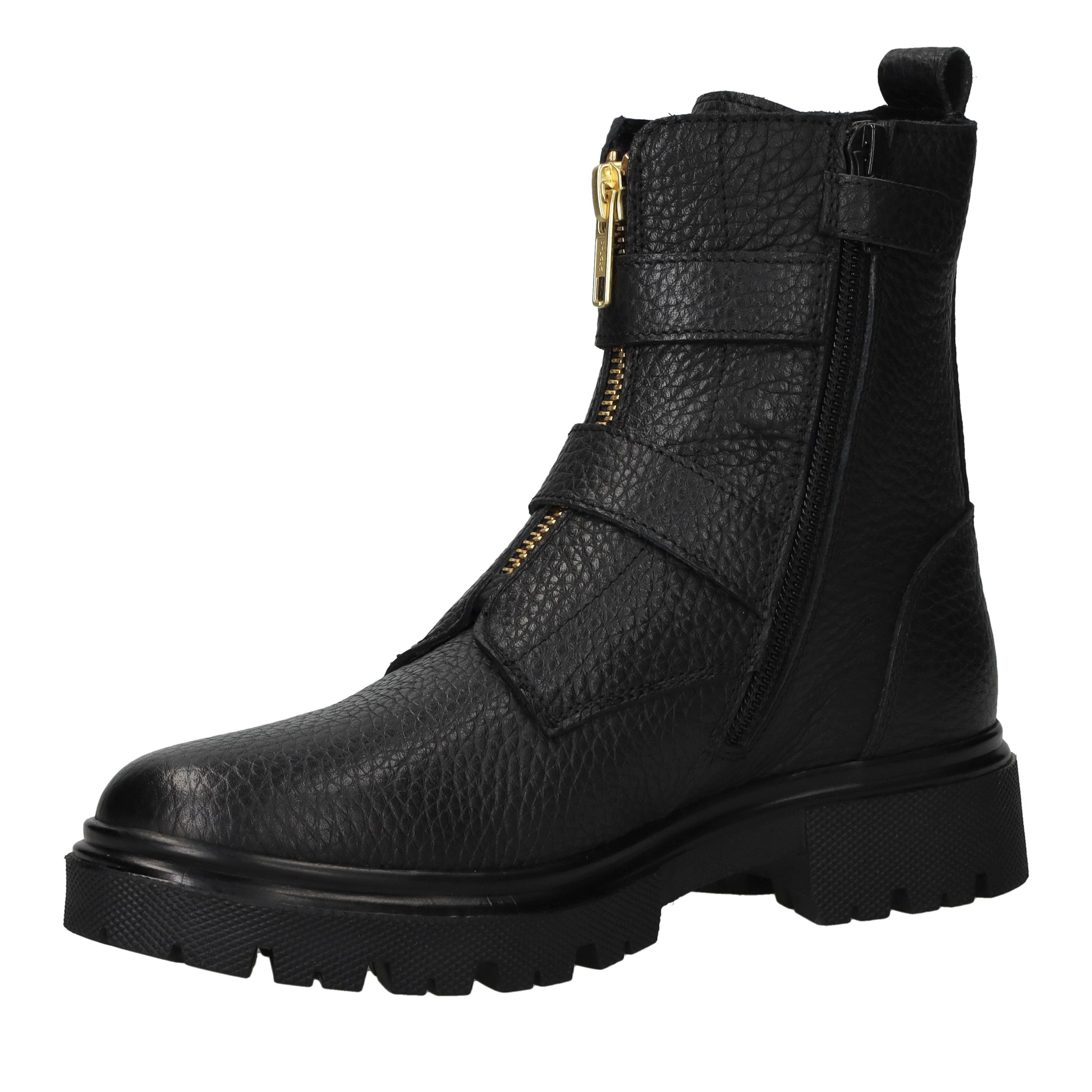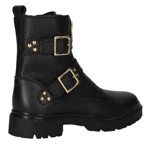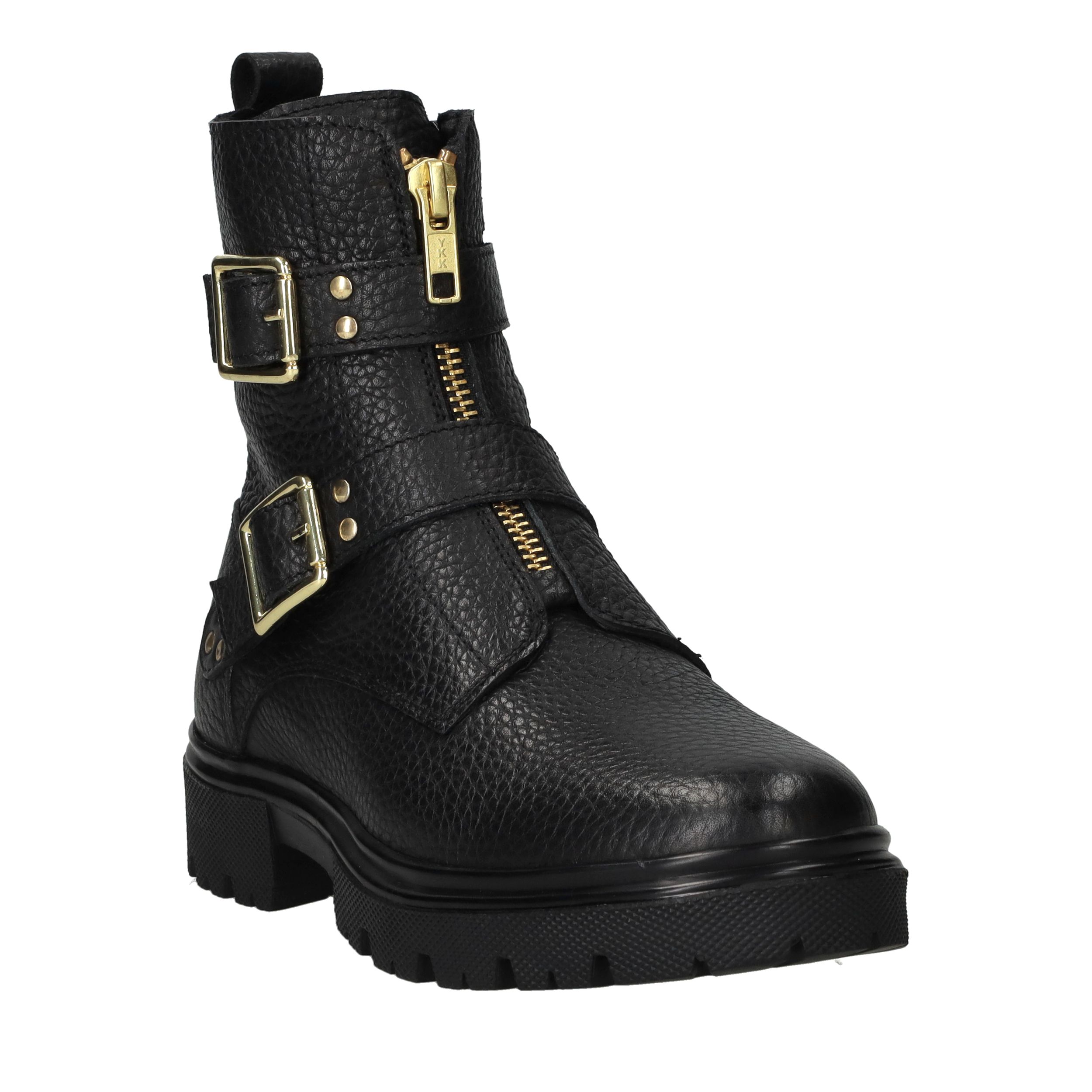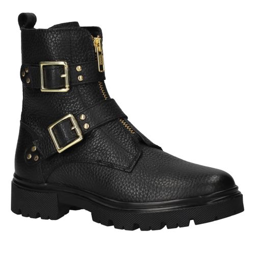Deze LOFF 1881 bikerboot is dé perfecte keuze voor stoere meiden die houden van een trendy uitstraling. Gemaakt van hoogwaardig leer en uitgevoerd in klassiek zwart, is deze boot zowel modieus als duurzaam. De ritssluiting aan de zijkant zorgt ervoor dat je de schoenen gemakkelijk aan- en uittrekt, terwijl de opvallende gespen en studs de boot een robuuste look geven. Het uitneembare voetbed biedt extra comfort en maakt het mogelijk om je eigen zolen te gebruiken. Let op: dit model heeft een small fit.