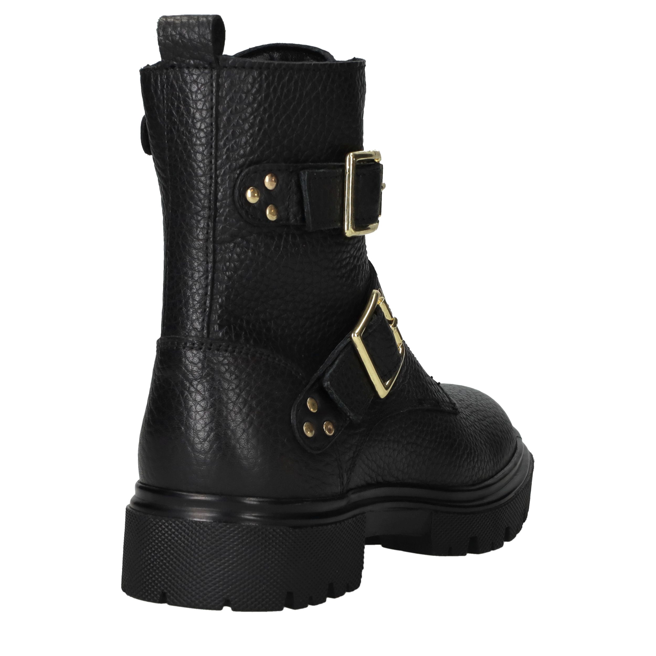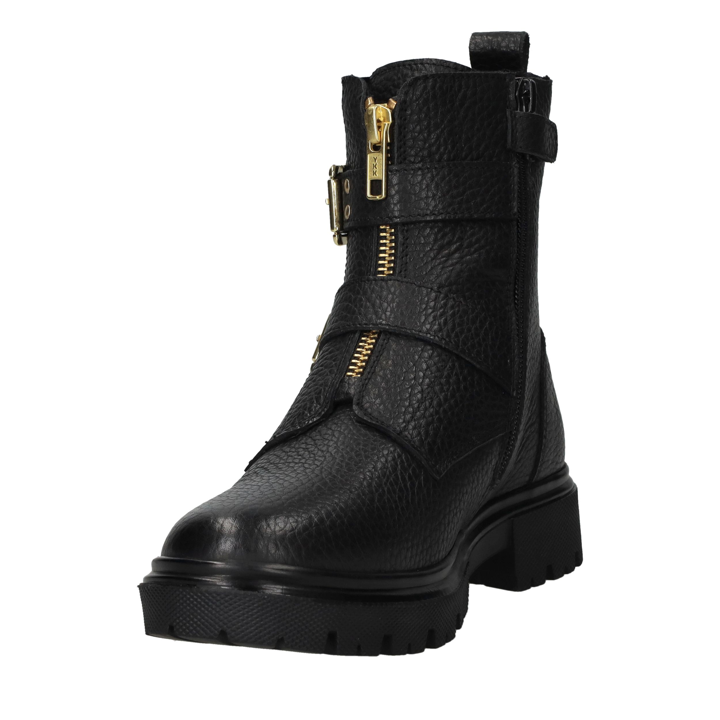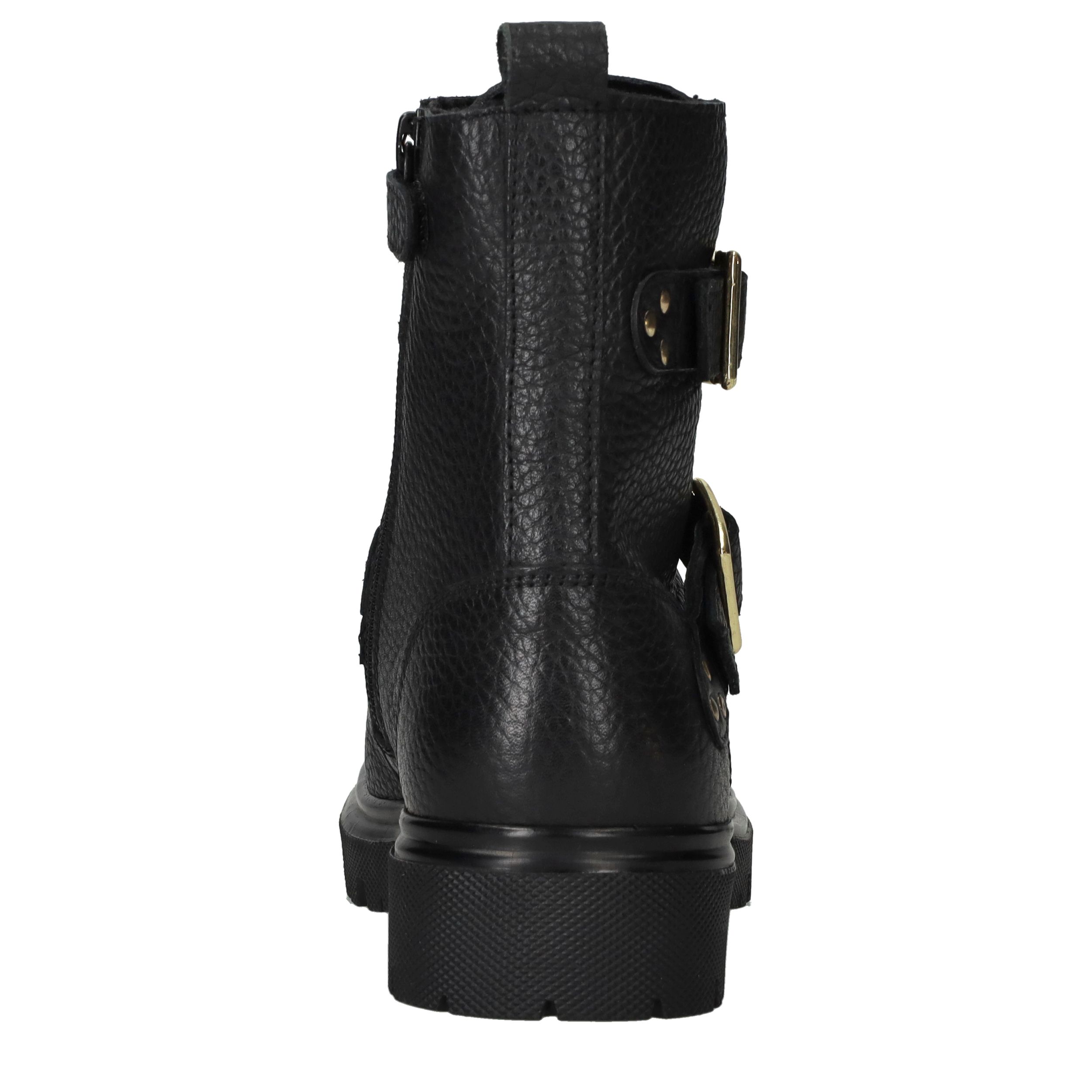Deze LOFF 1881 bikerboot is dé perfecte keuze voor stoere meiden die houden van een trendy uitstraling. Gemaakt van hoogwaardig leer en uitgevoerd in klassiek zwart, is deze boot zowel modieus als duurzaam. De ritssluiting aan de zijkant zorgt ervoor dat je de schoenen gemakkelijk aan- en uittrekt, terwijl de opvallende gespen en studs de boot een robuuste look geven. Het uitneembare voetbed biedt extra comfort en maakt het mogelijk om je eigen zolen te gebruiken. Let op: dit model heeft een small fit.