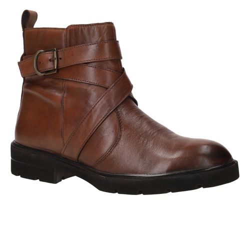 Fijne warm bruine LOFF 1881 damesboot met leuke gekruiste bandjes.